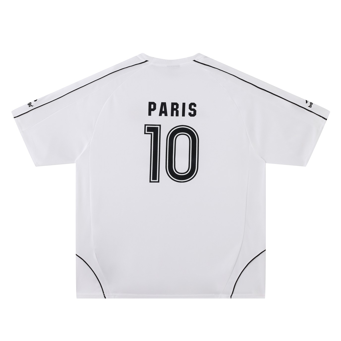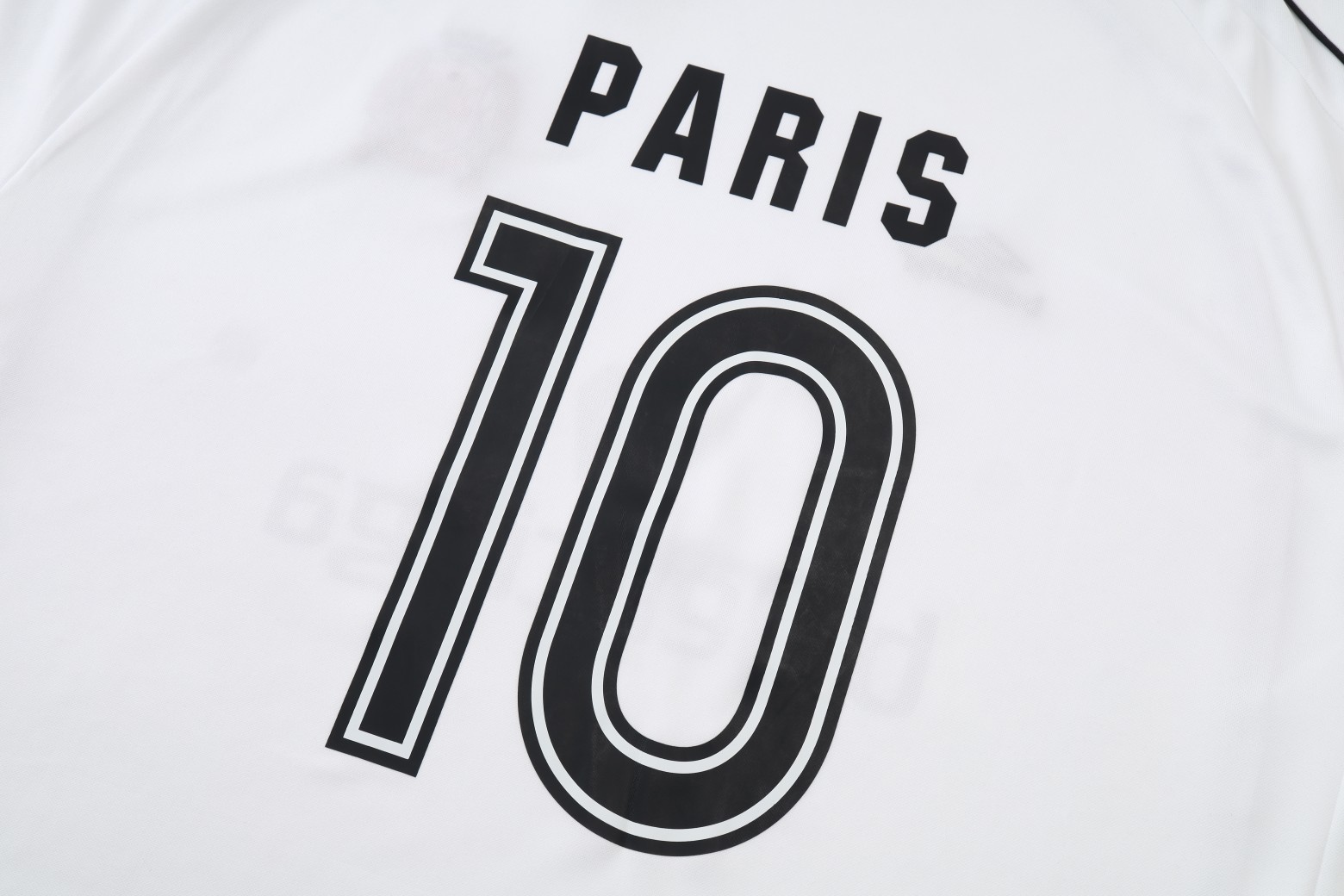 Balenciaga sports collaboration No. 10 Paris Manchester United embroidered short-sleeved jersey, available in white and pink, sizes S, M, and L.