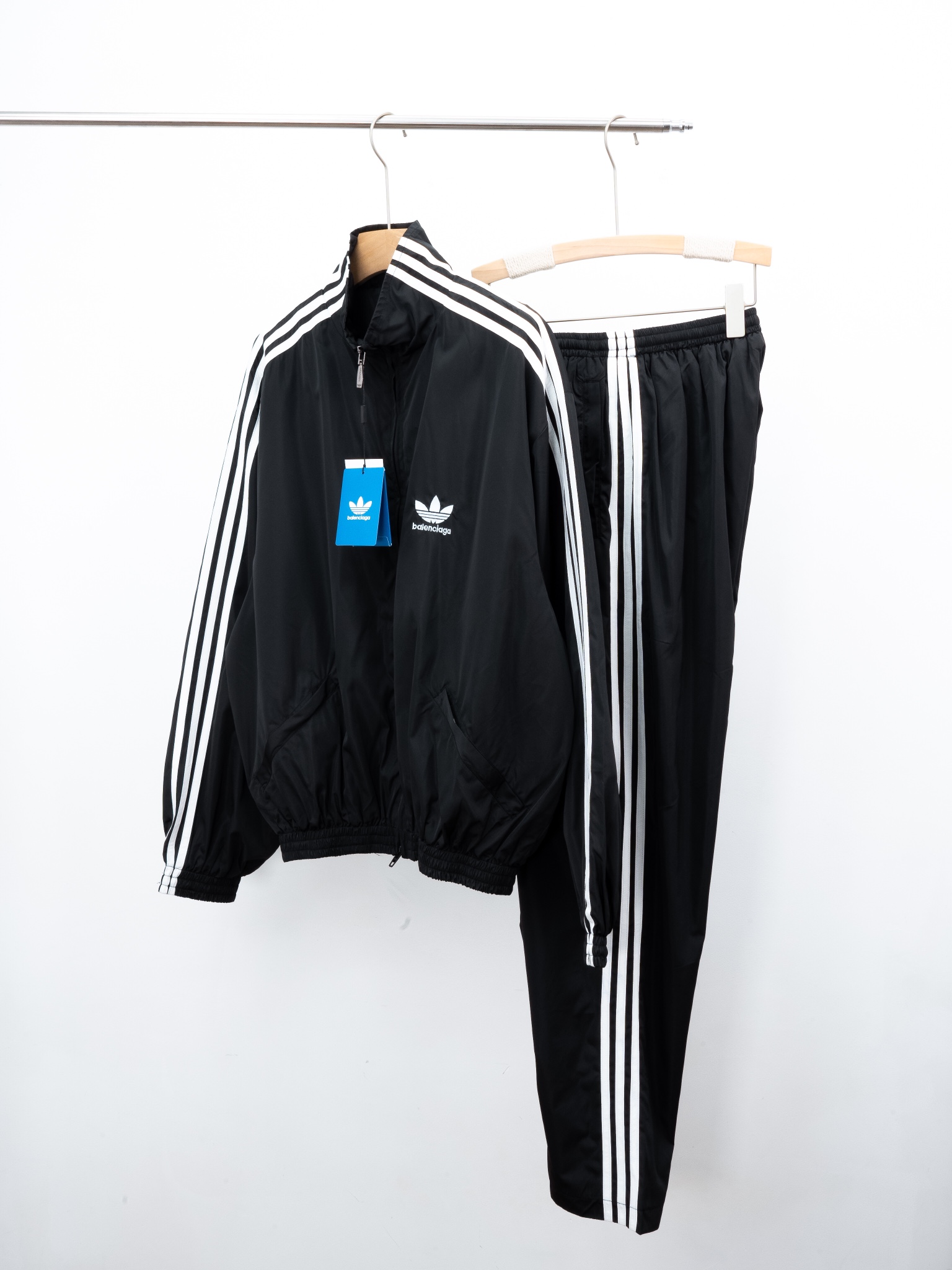 Elevate your athleisure with this Balenciaga x Adidas tracksuit. A top-tier collab combining luxury with sporty design.