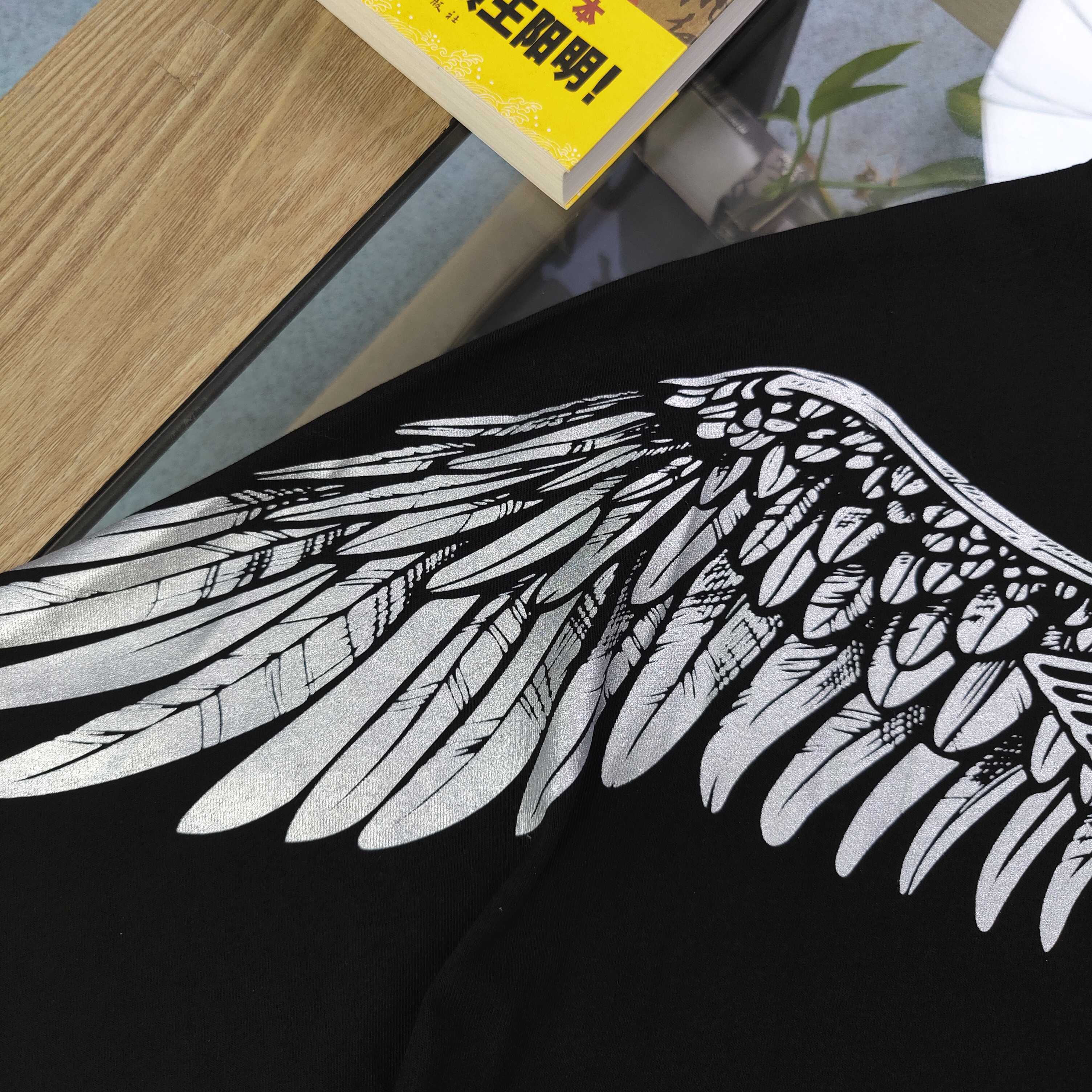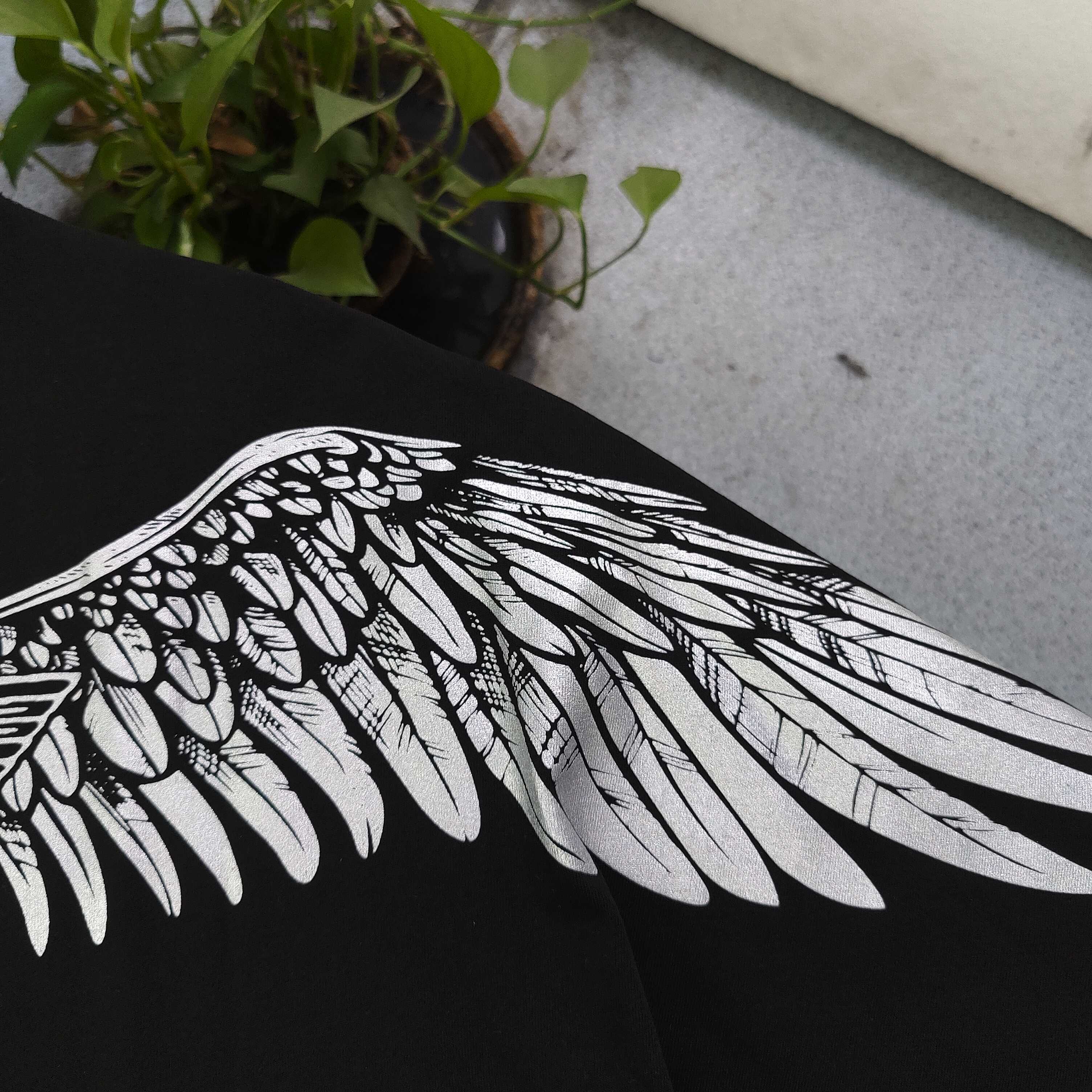 - Features a hot silver symmetrical eagle wings and letter logo print