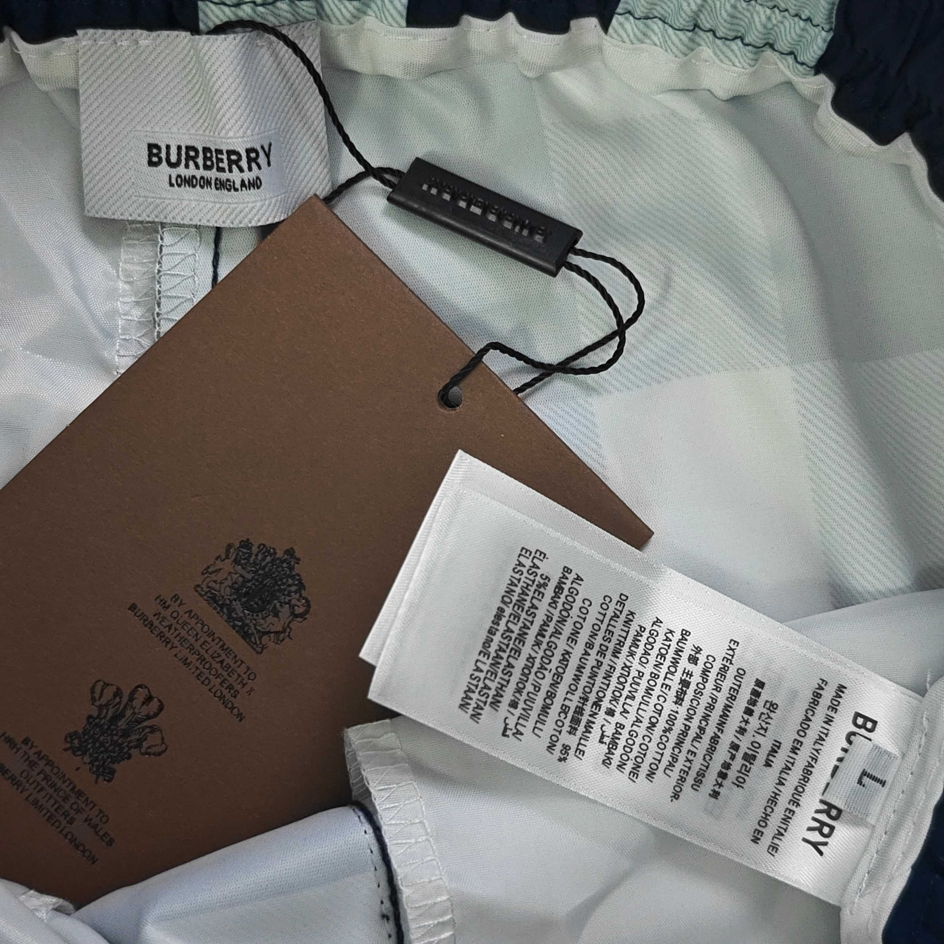 Elevate your style with Burberry check logo print beach shorts. Perfect for casual outings, these shorts blend fashion and comfort effortlessly.