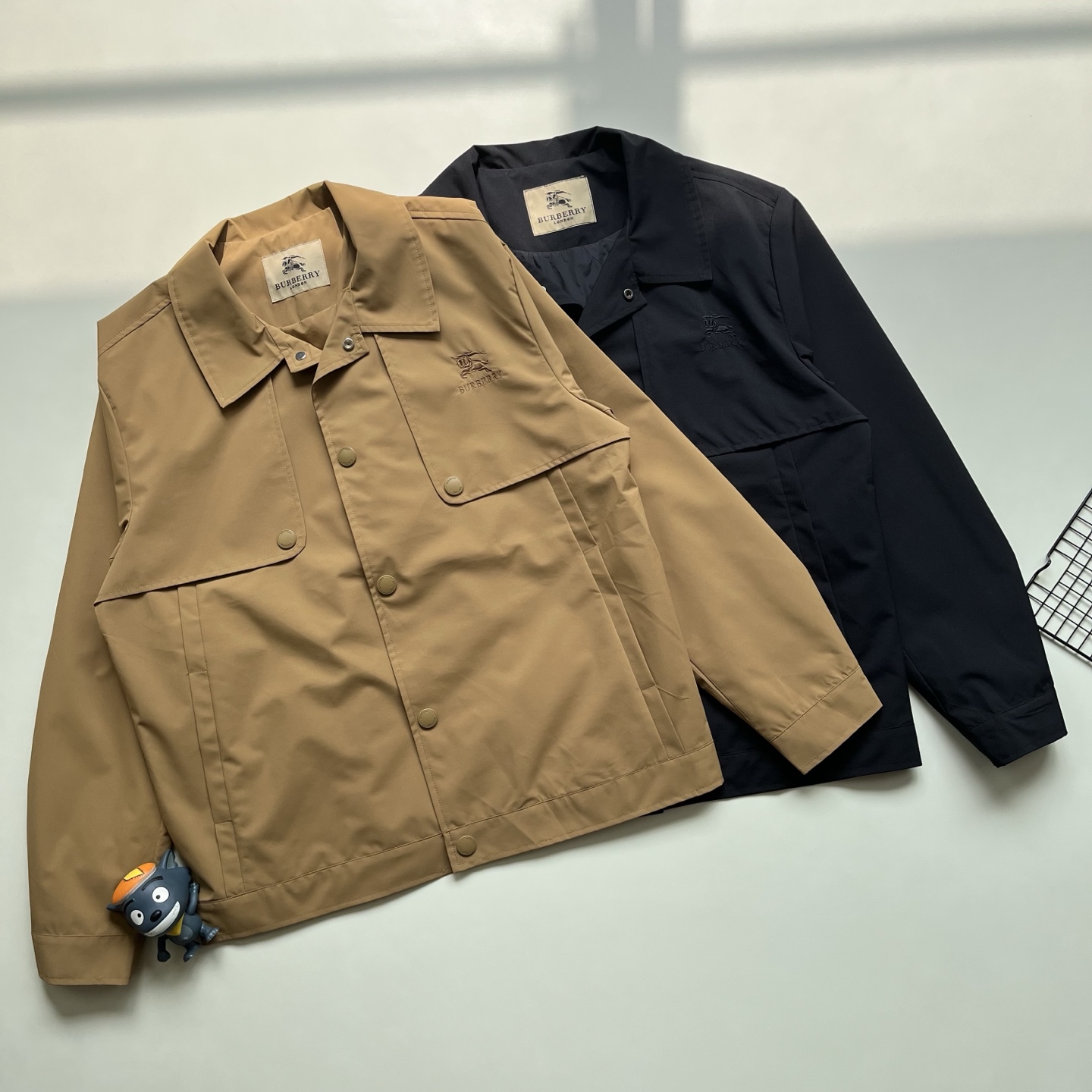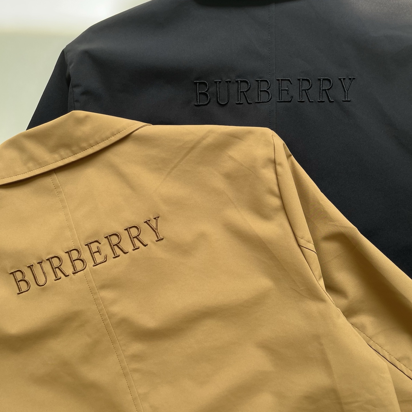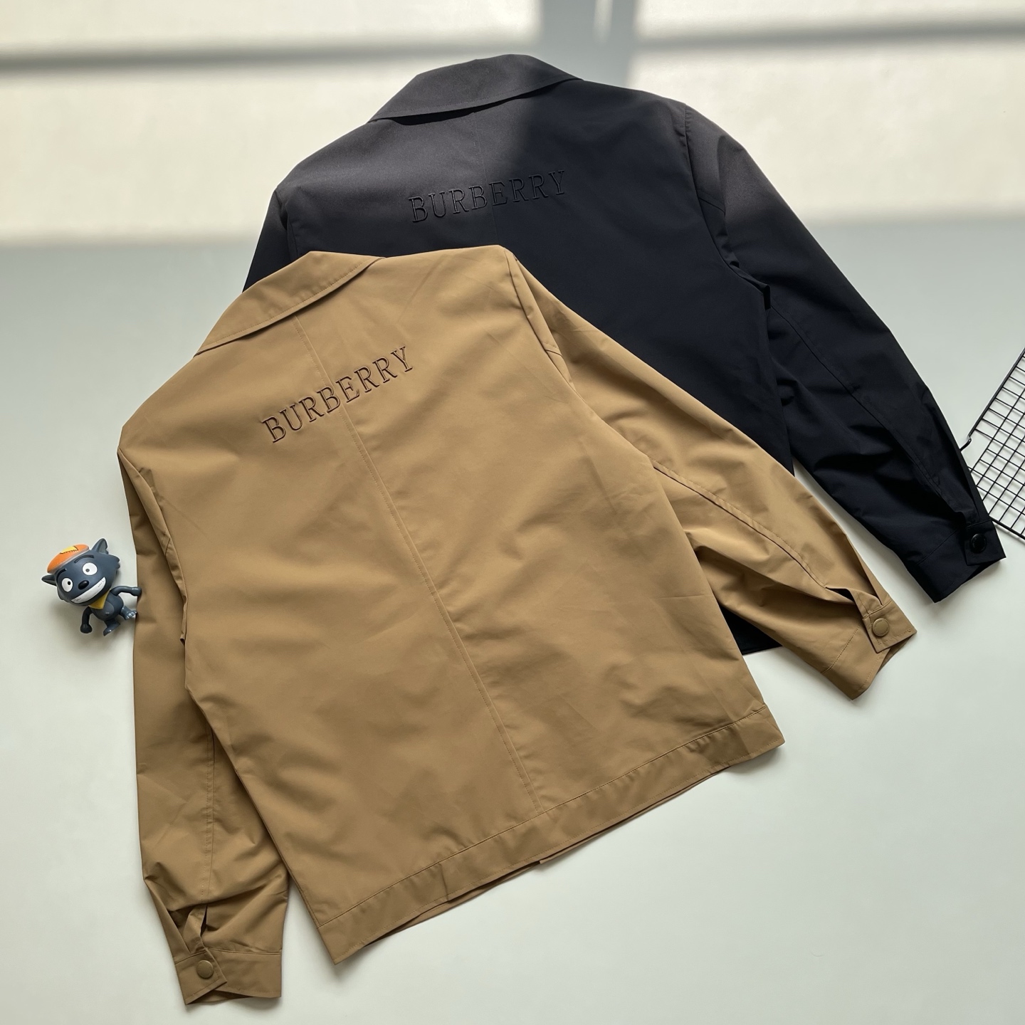 Burberry Men's Casual Jacket, Embroidered Logo, Windproof, Black and Khaki