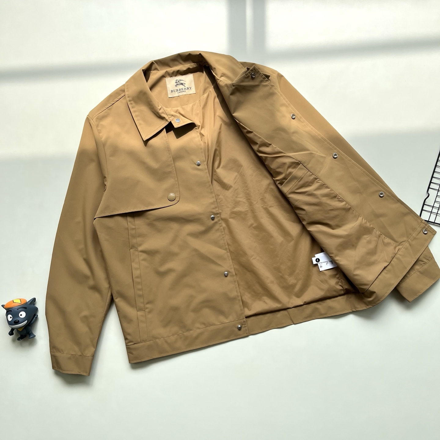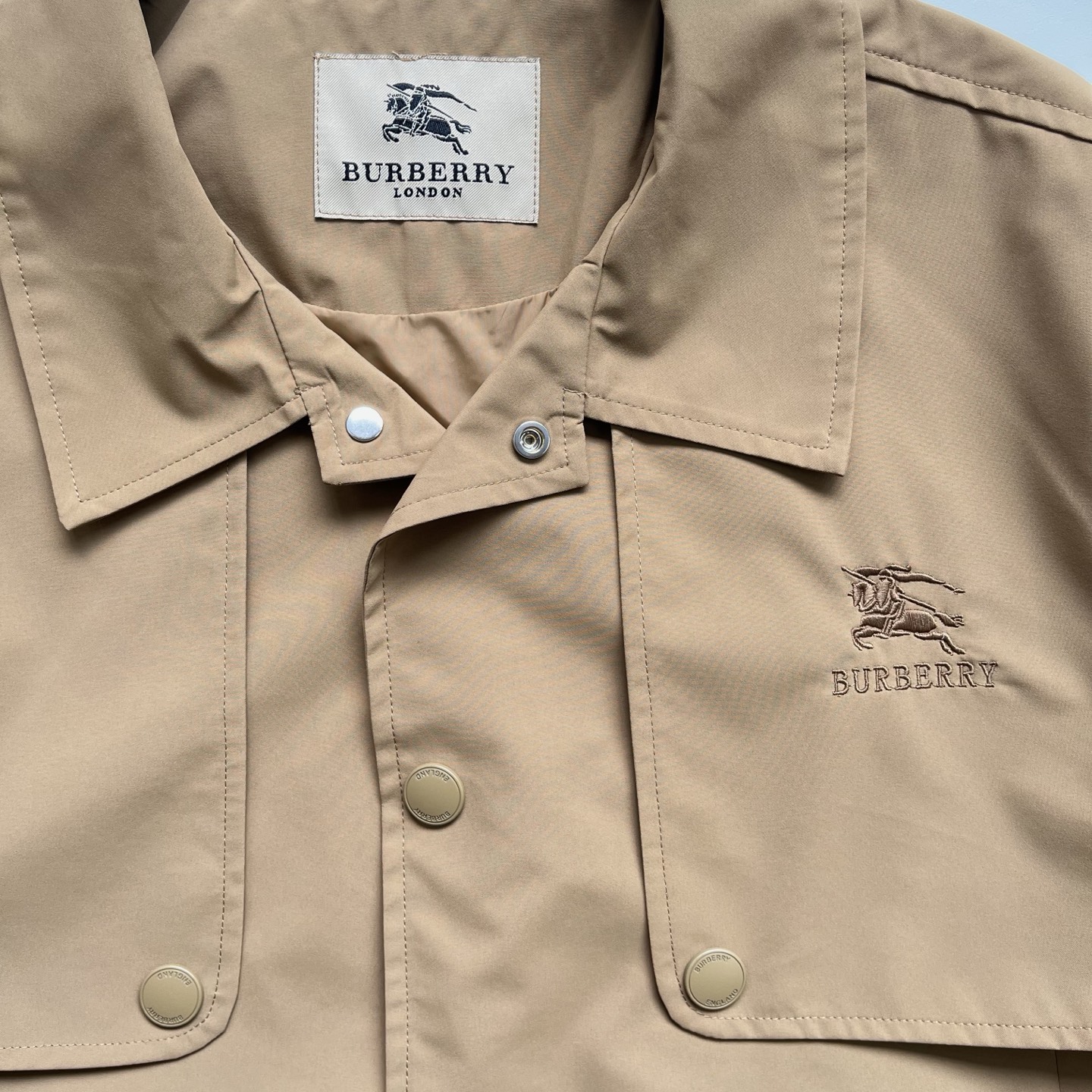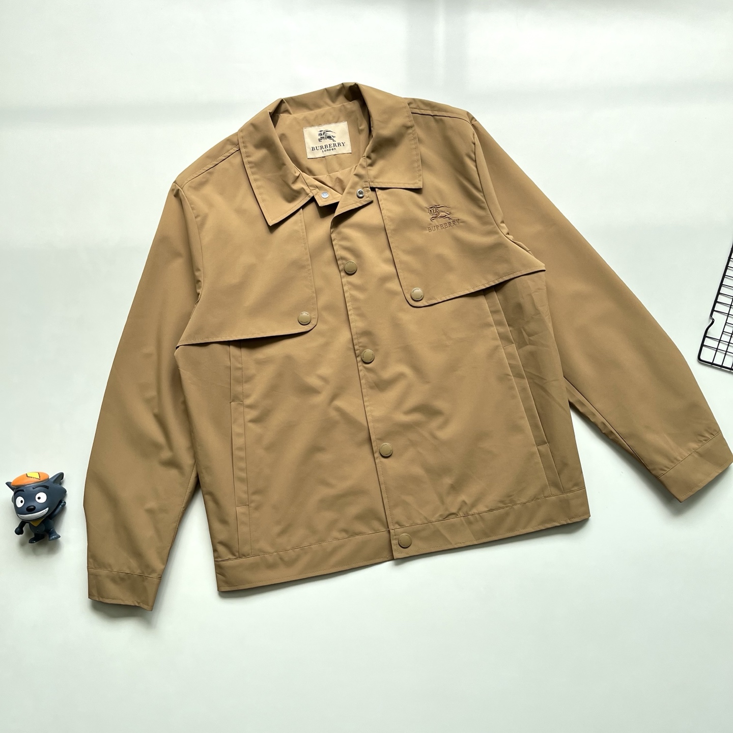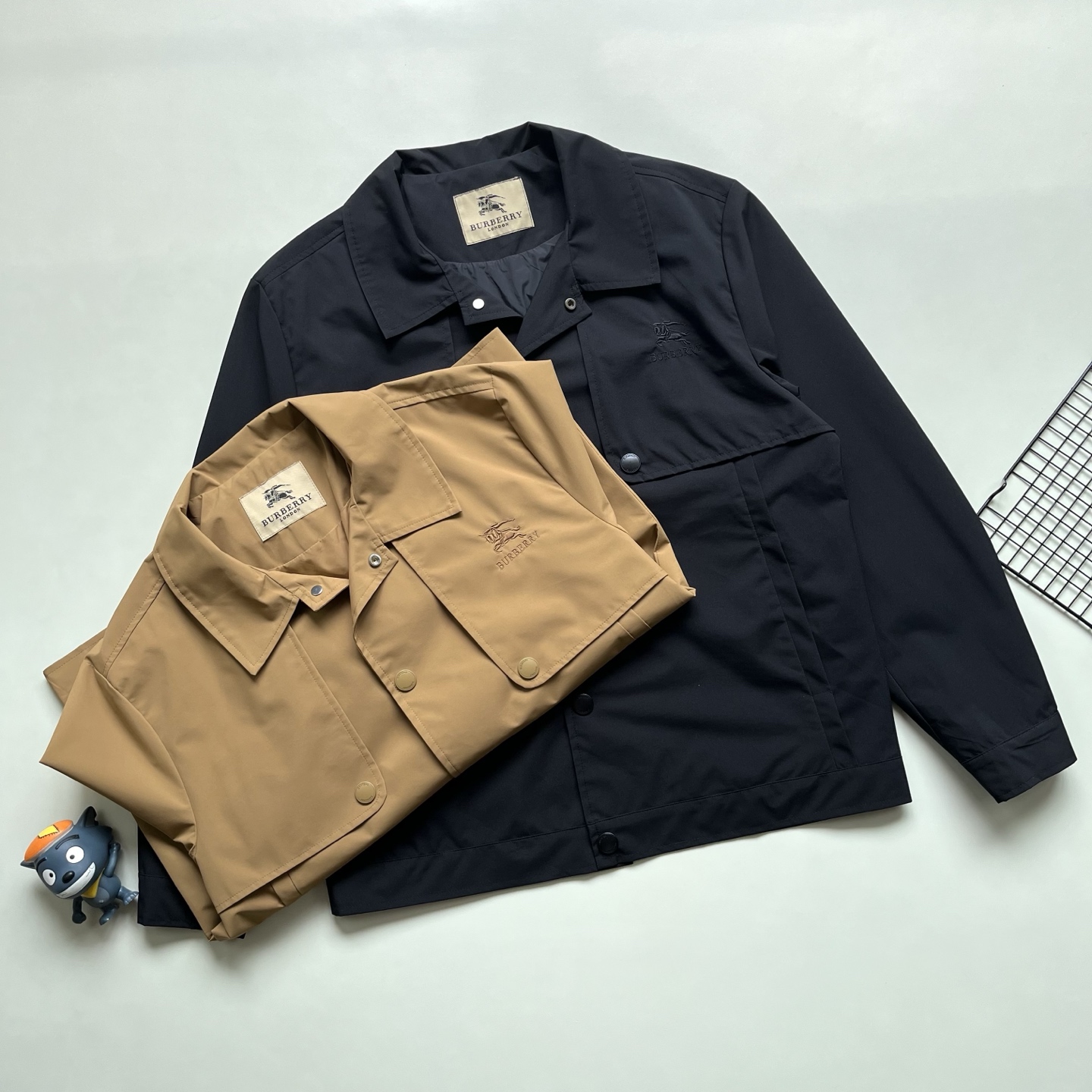 Burberry Men's Casual Jacket, Embroidered Logo, Windproof, Black and Khaki