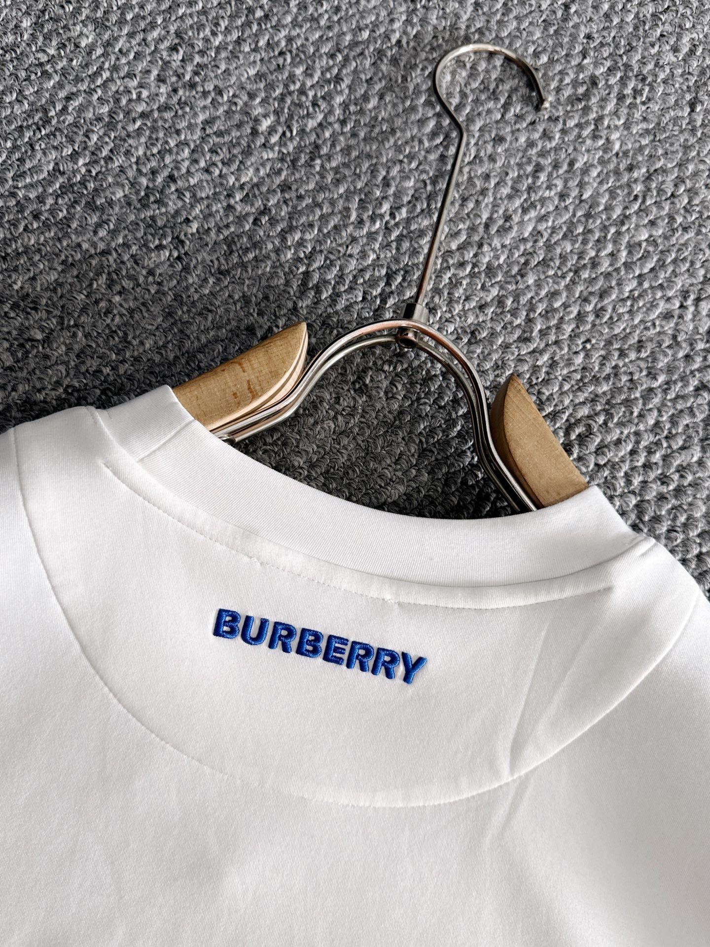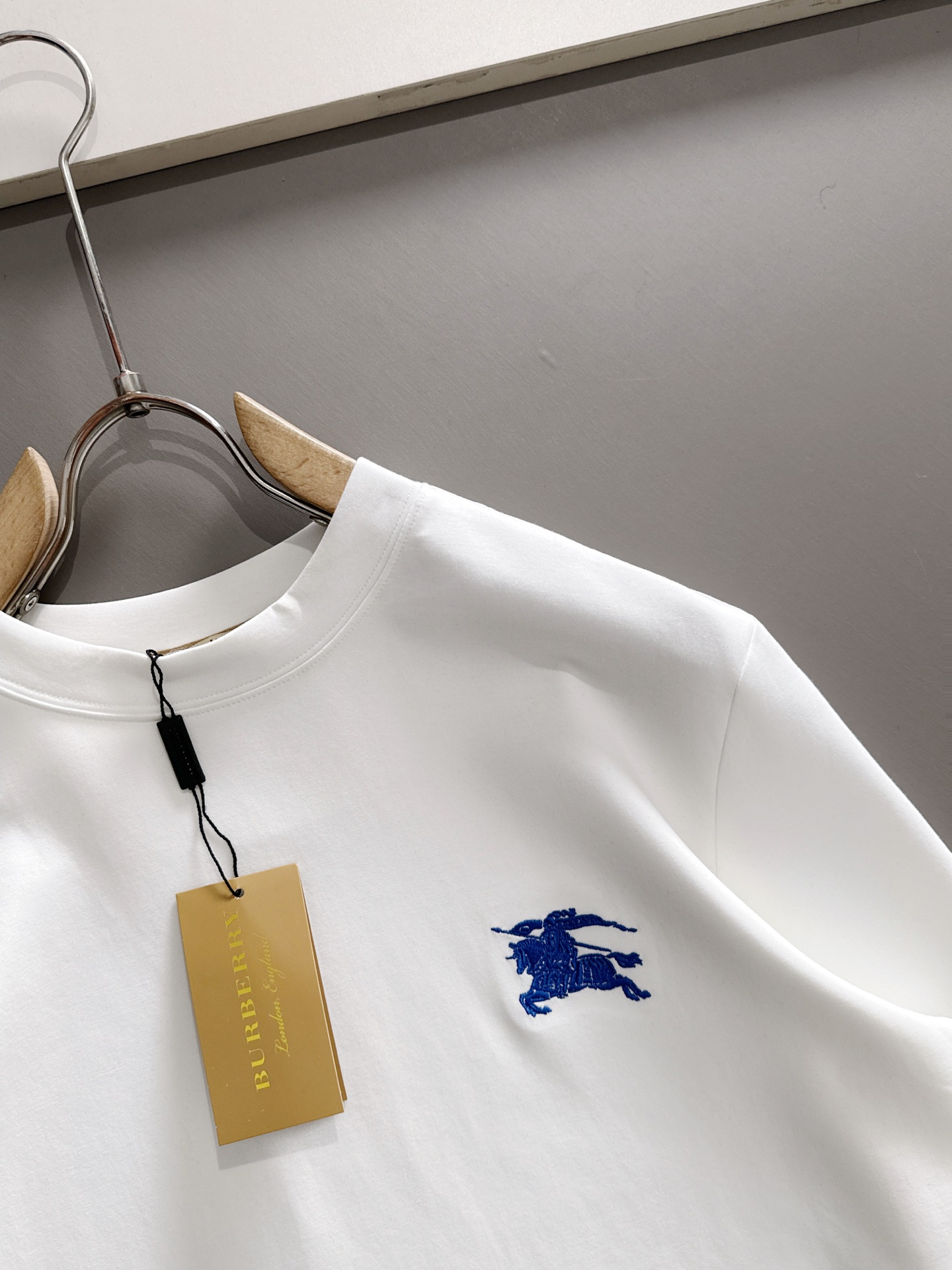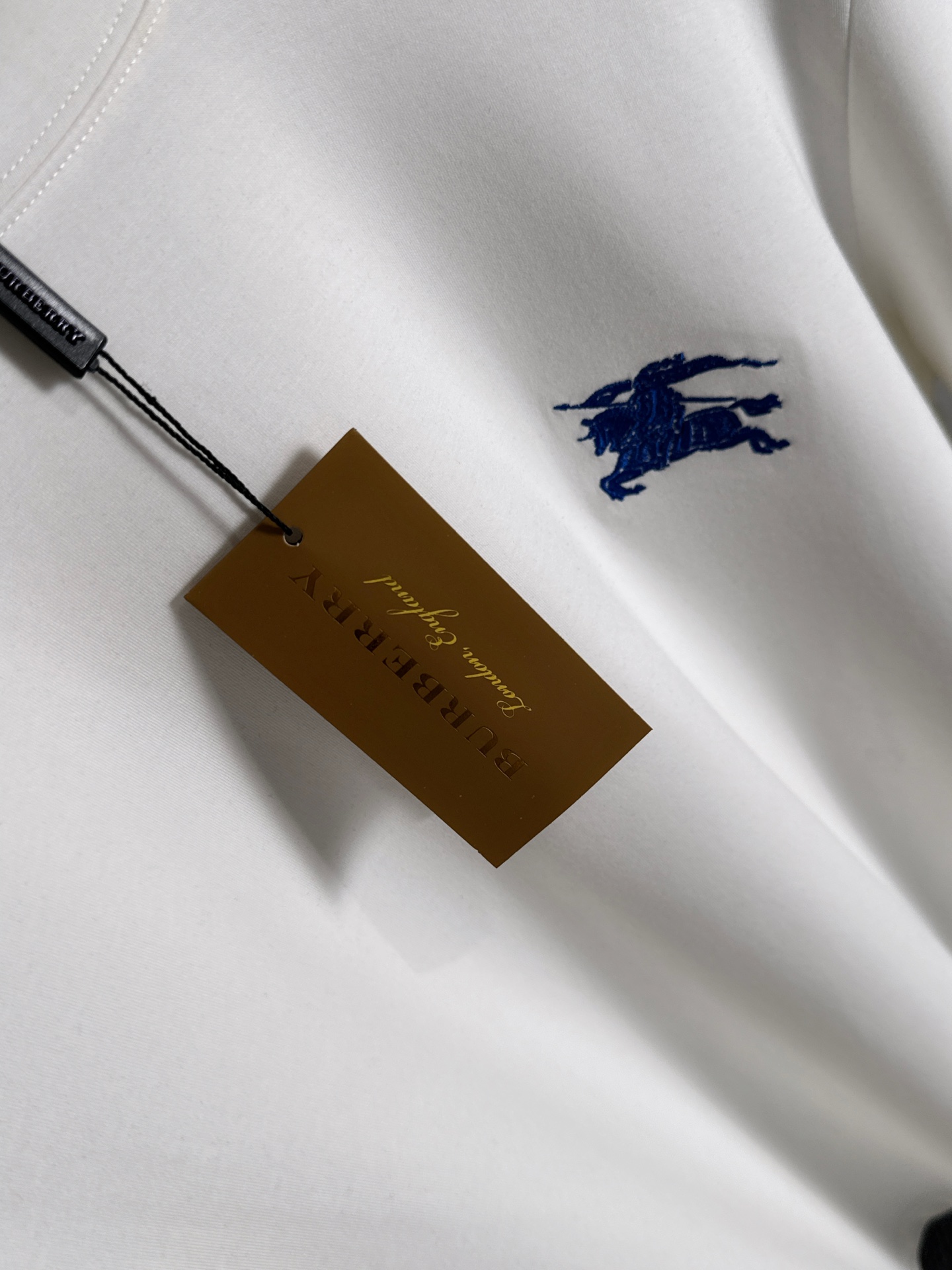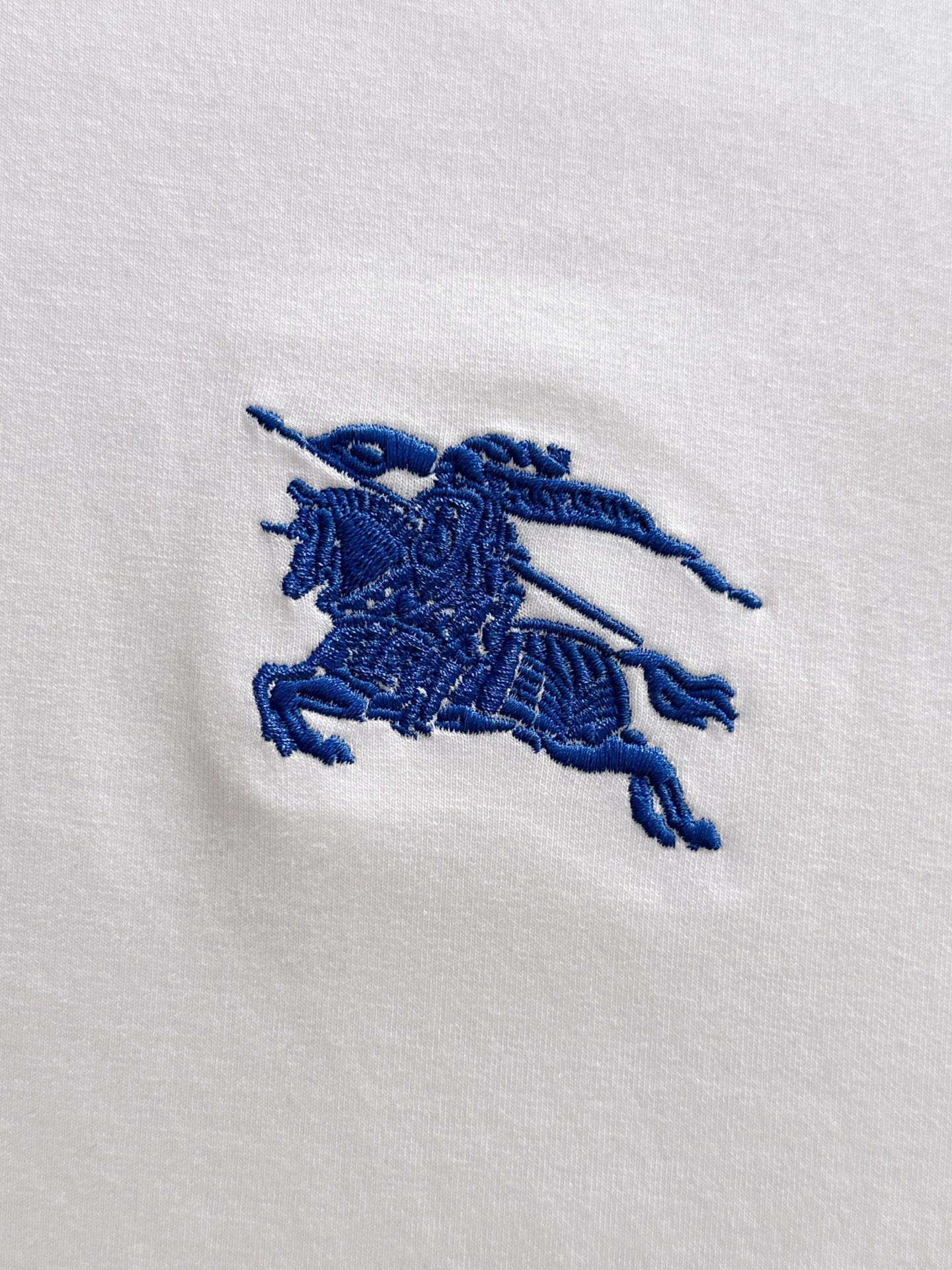 Burberry Men's White Long Sleeve T-Shirt with Blue Logo