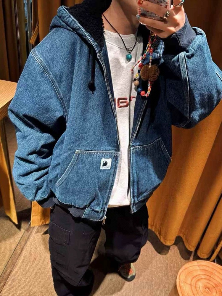 Carhartt WIP J140 Active Washed Denim Hooded Jacket - Unisex Winter Wear
