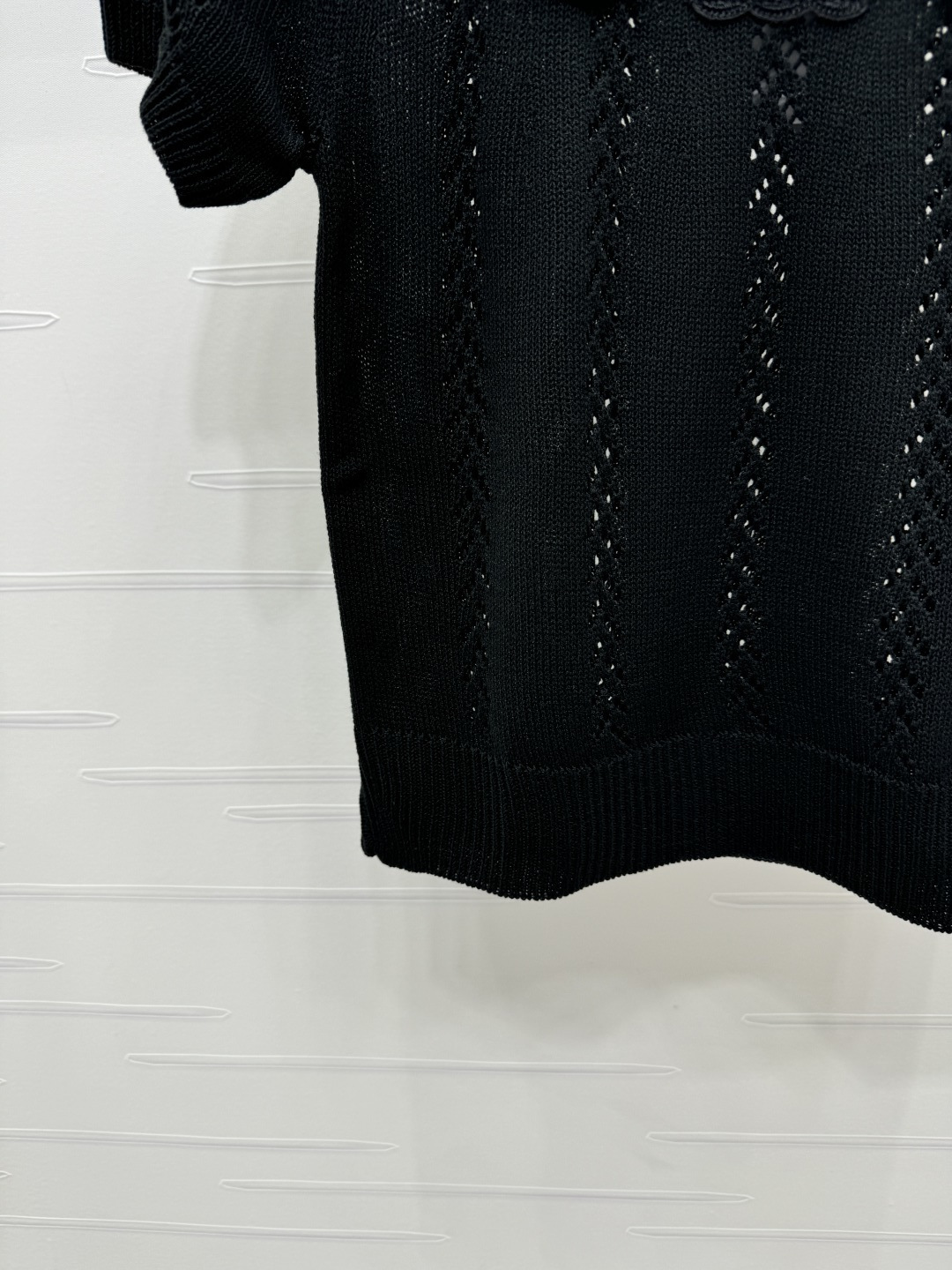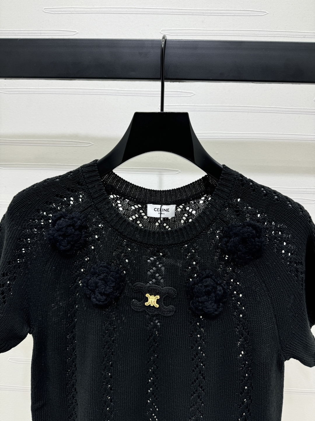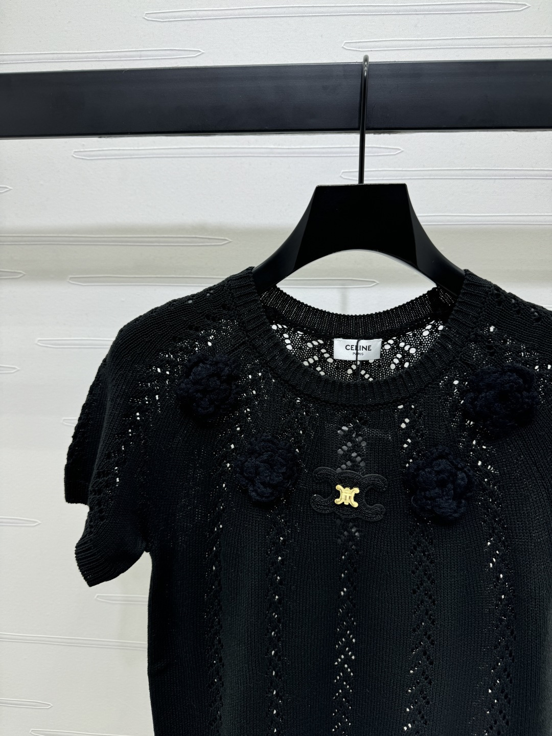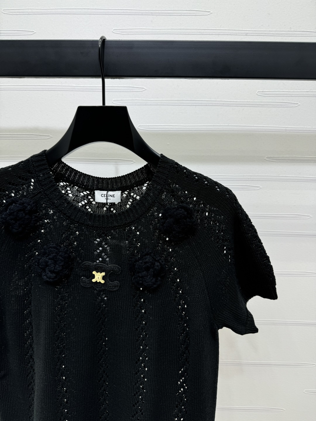 Elevate your wardrobe with this exquisite CELINE knitted top, a perfect blend of luxury and comfort. Crafted with meticulous attention to detail, this piece features intricate floral crochet and a flattering cropped silhouette.