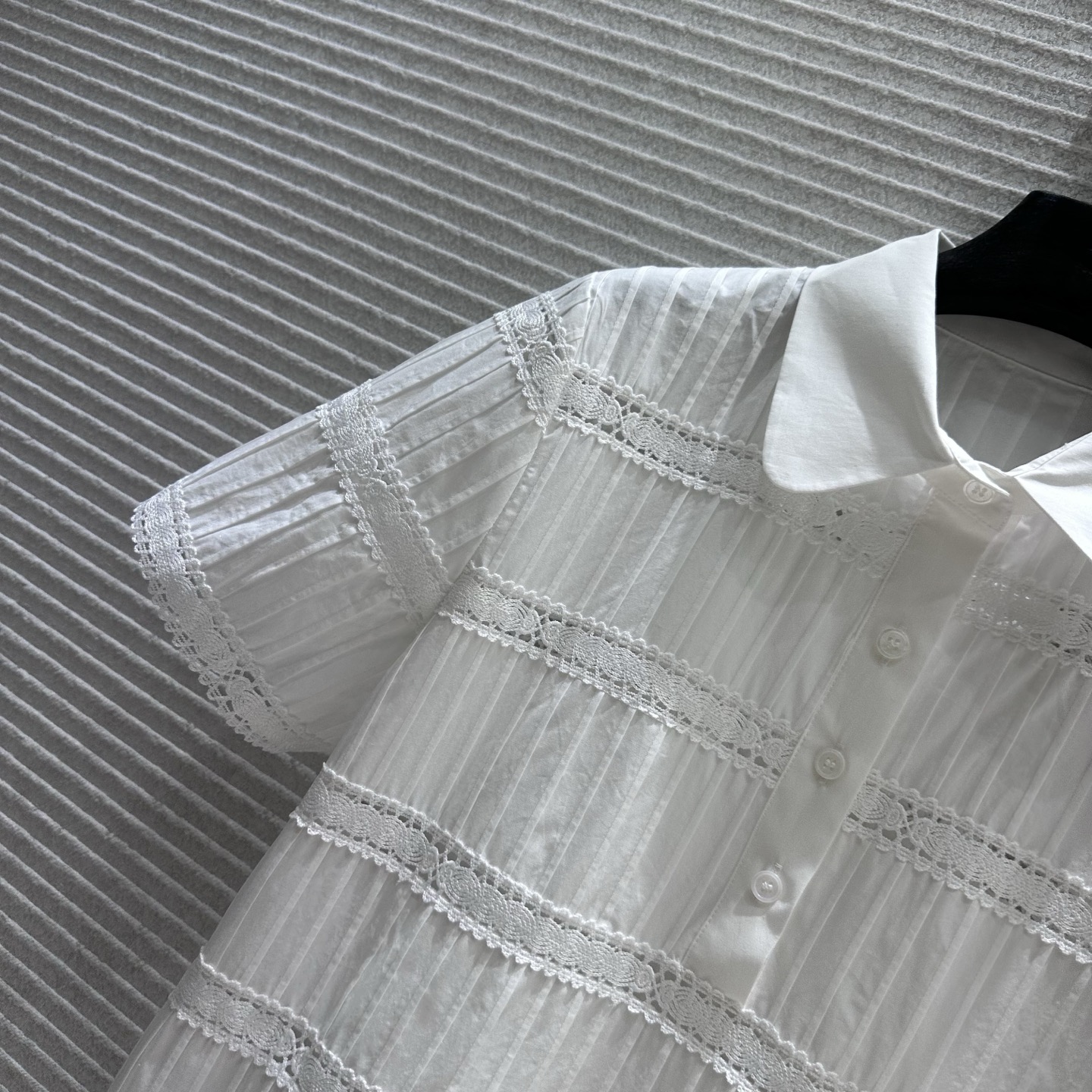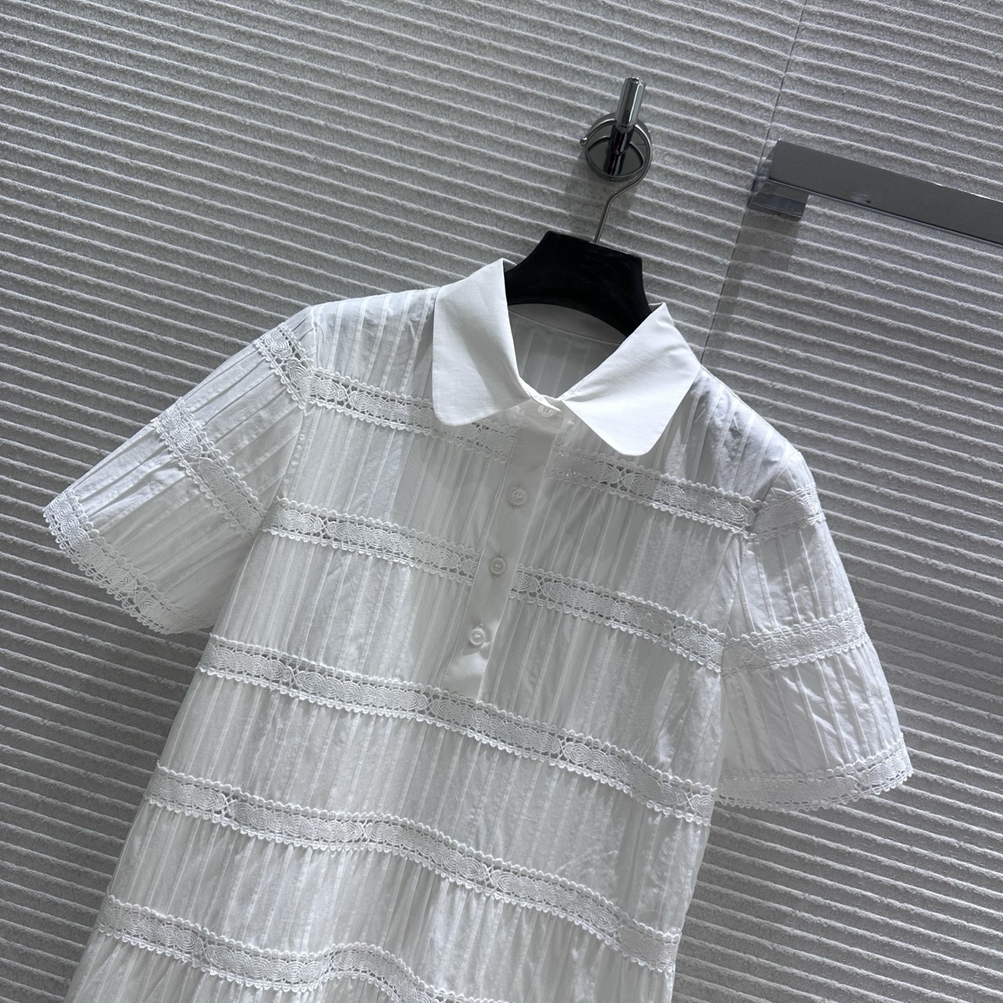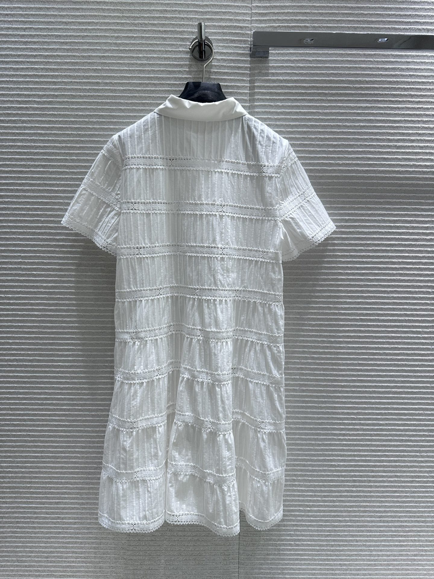 Celine Resort White Lace Hollow Out Short Sleeve Mini Dress