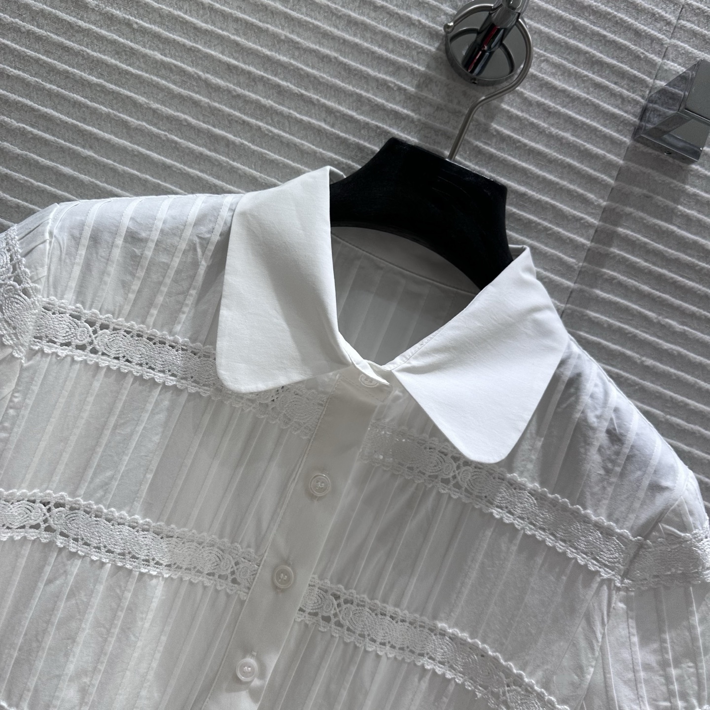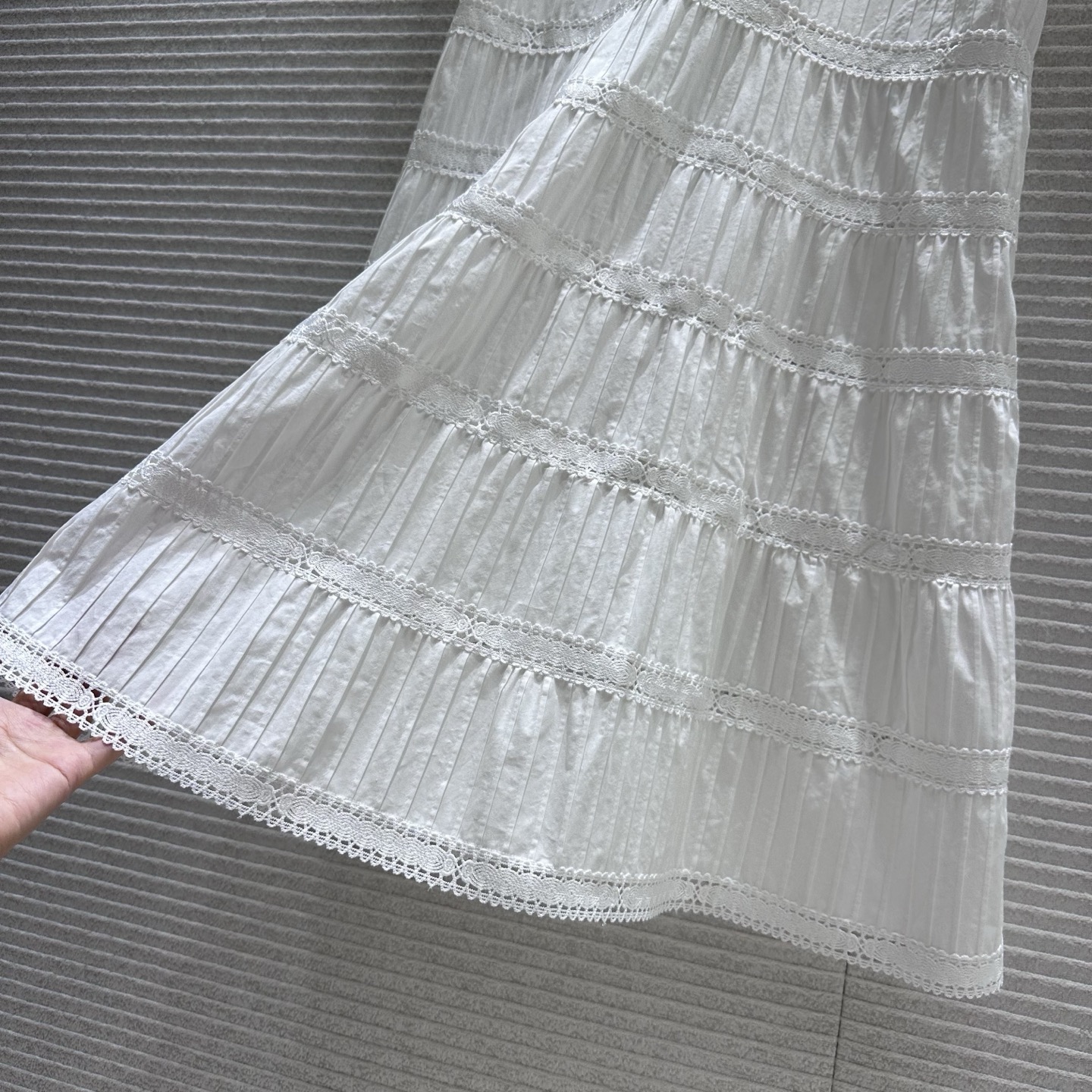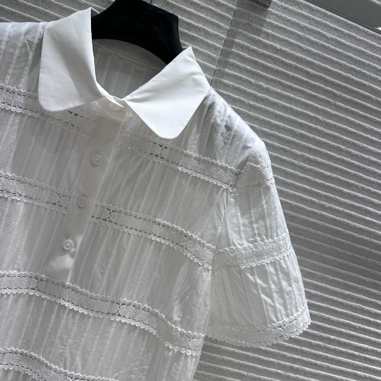 Celine Resort White Lace Hollow Out Short Sleeve Mini Dress