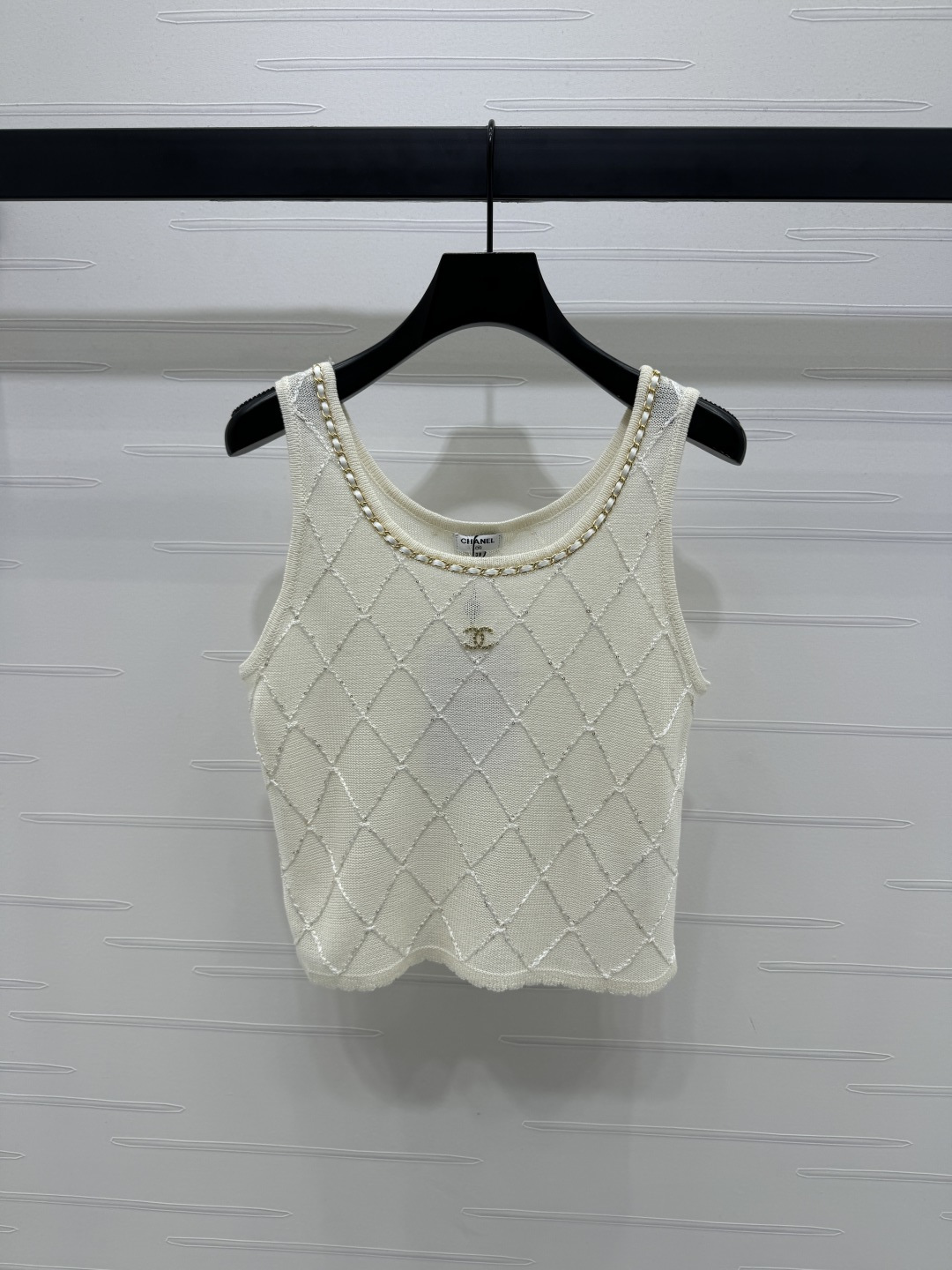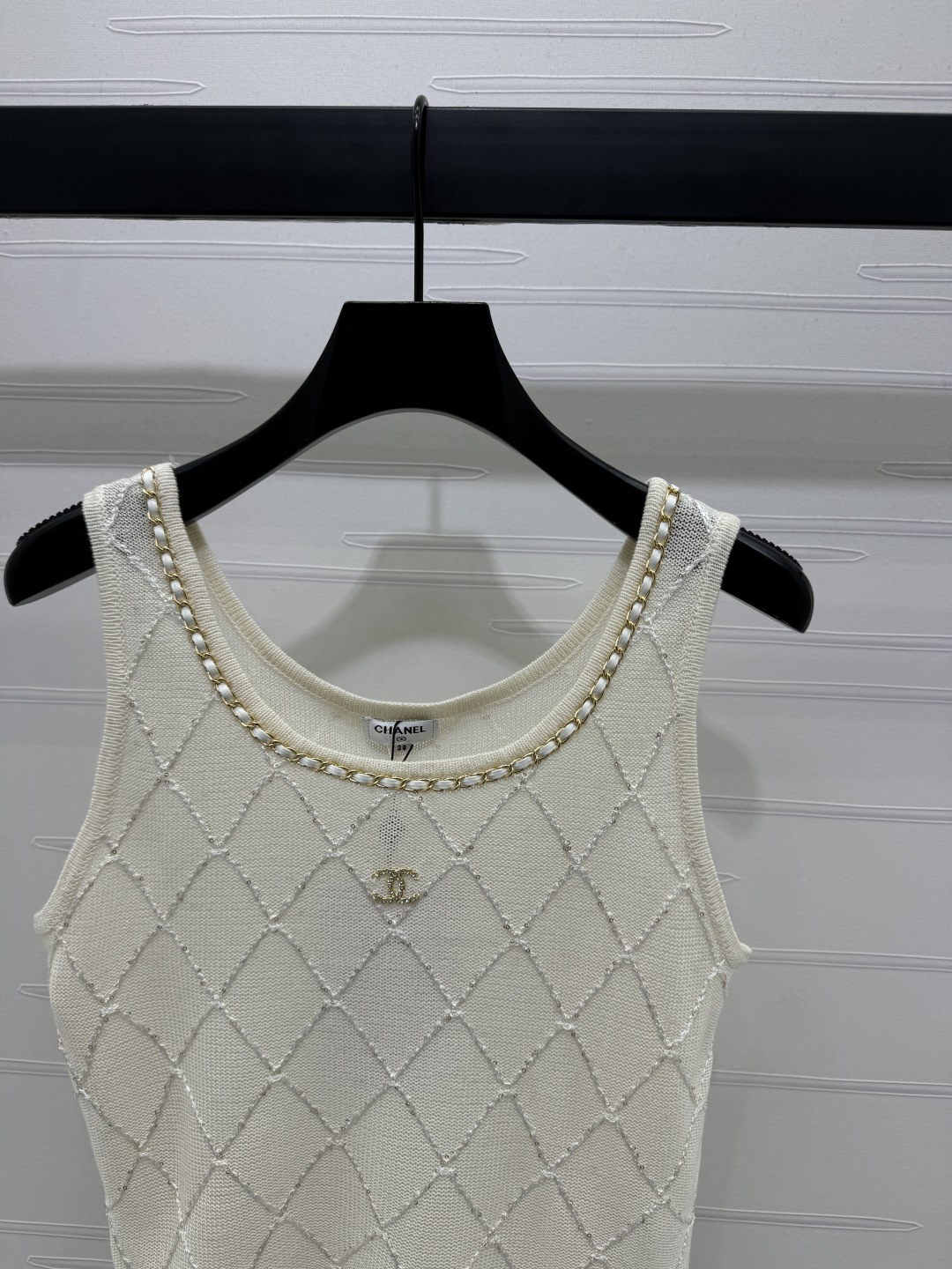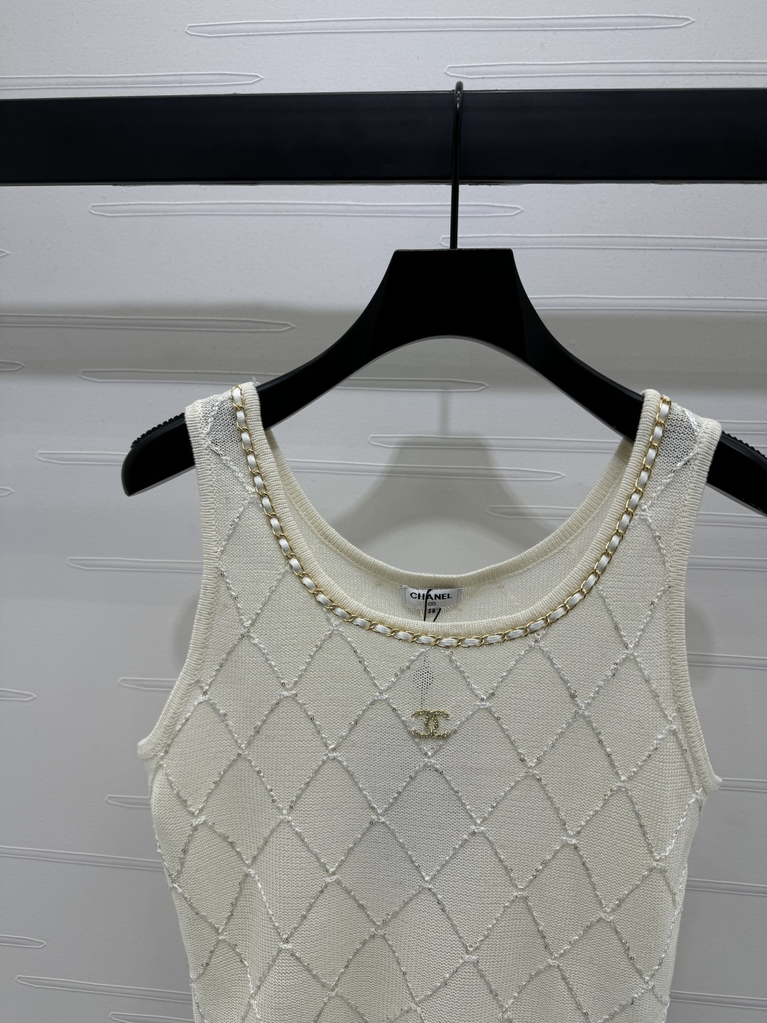 Chanel 2025 Pre-Fall Sleeveless Knit Top with Diamond Pattern and Chain Detail