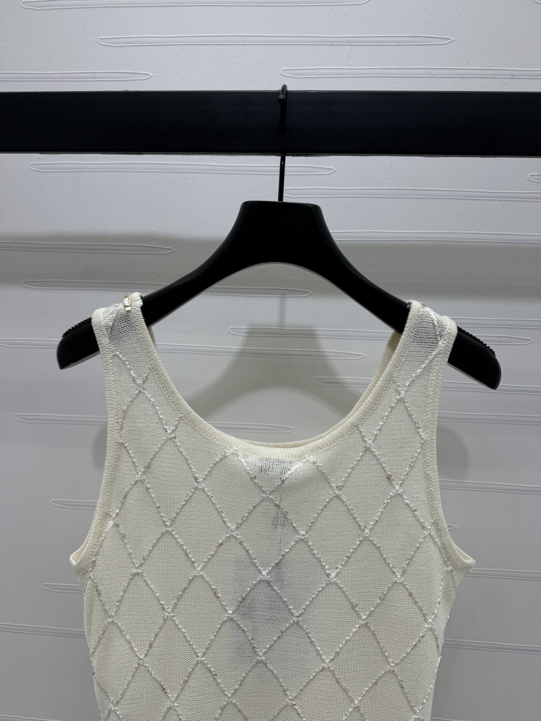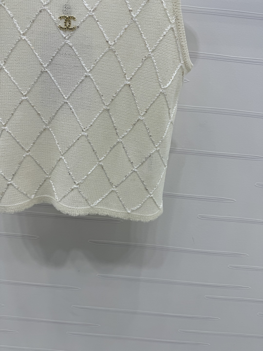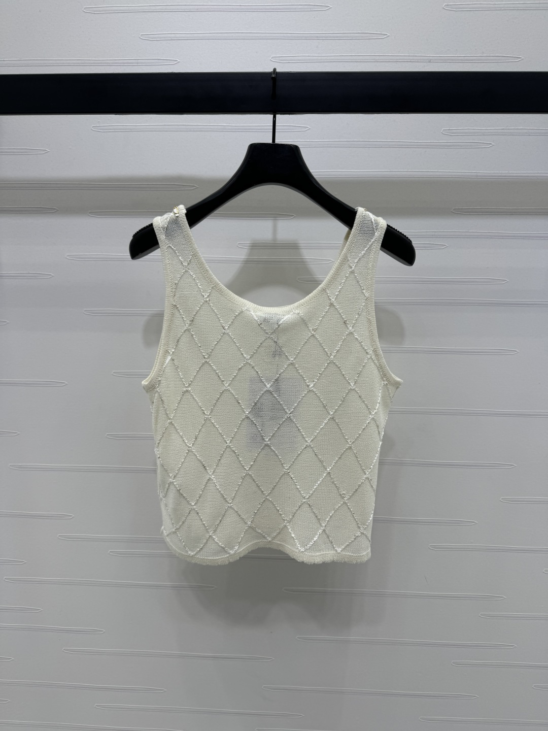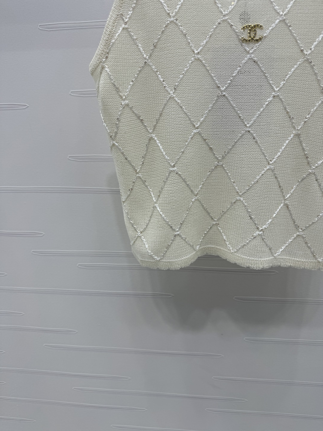 Chanel 2025 Pre-Fall Sleeveless Knit Top with Diamond Pattern and Chain Detail