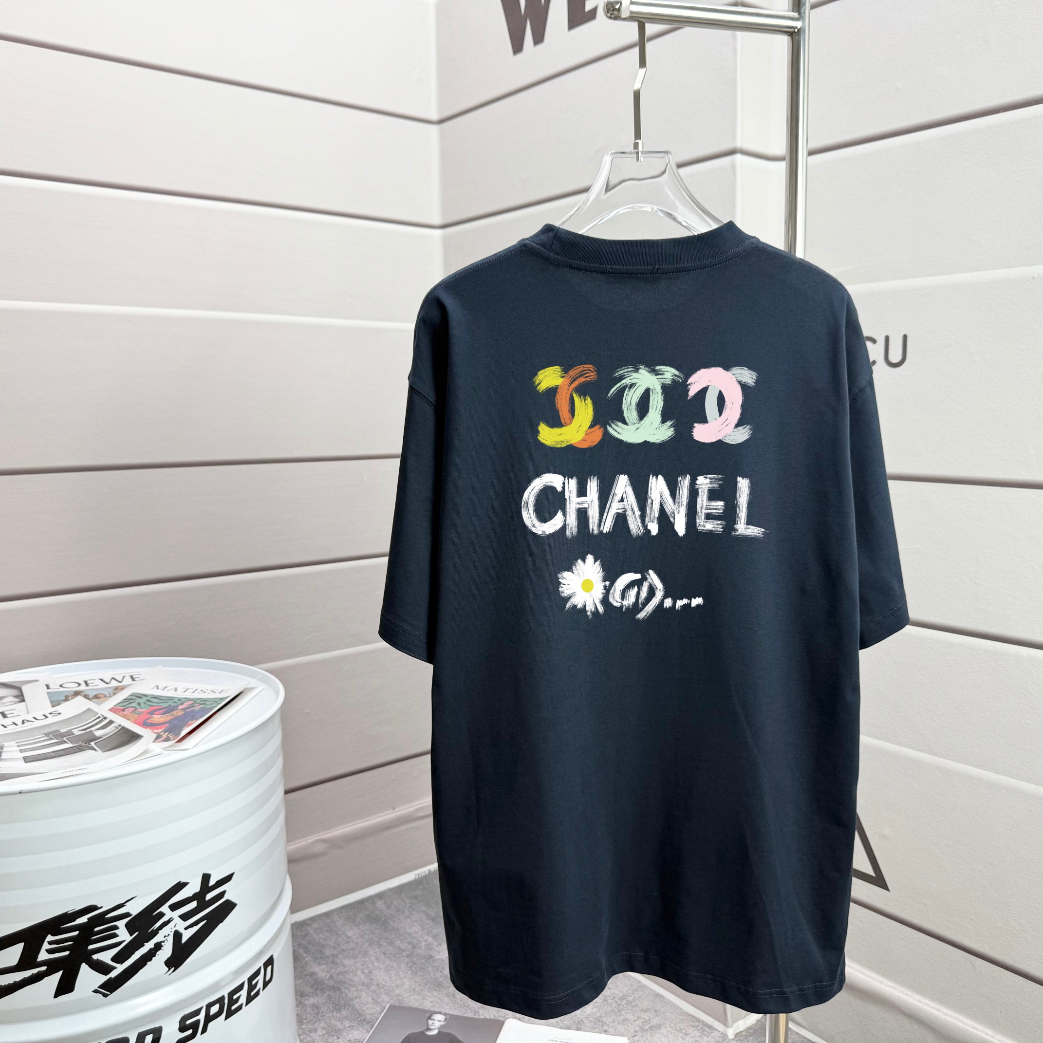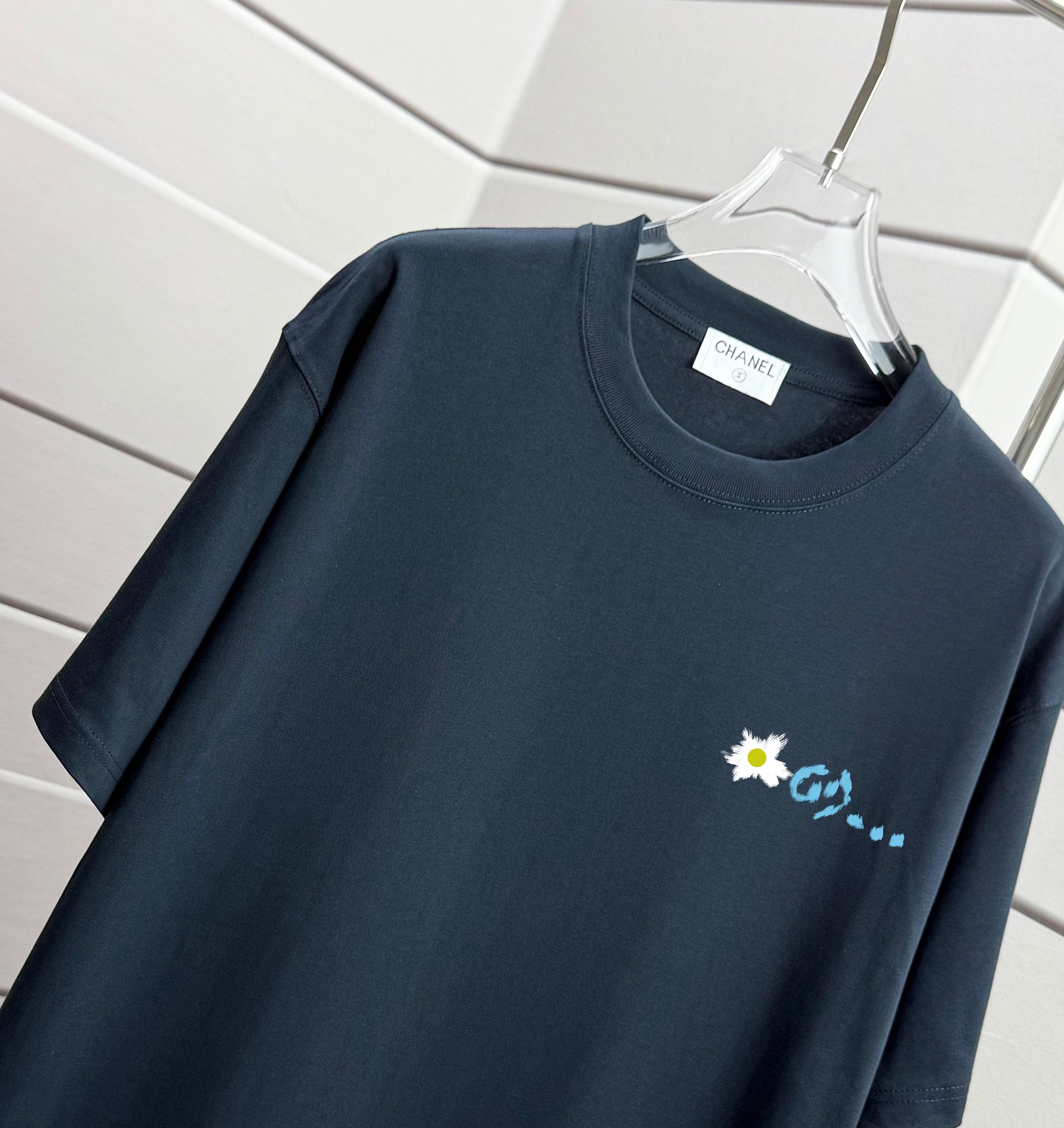 Elegant Chanel 2025SS T-shirt in premium cotton, featuring the iconic Double C logo. Comfortable, relaxed fit for everyday style.