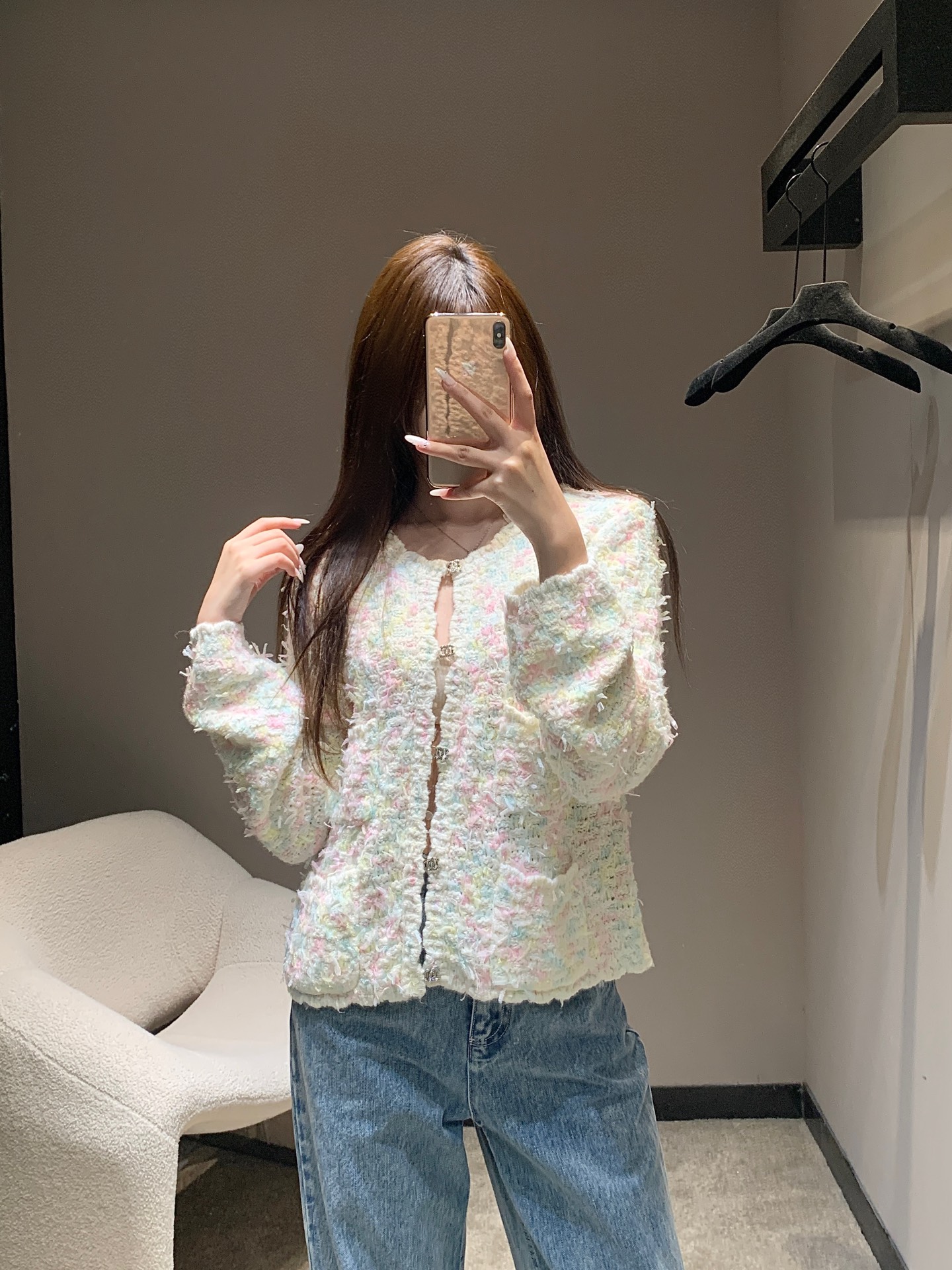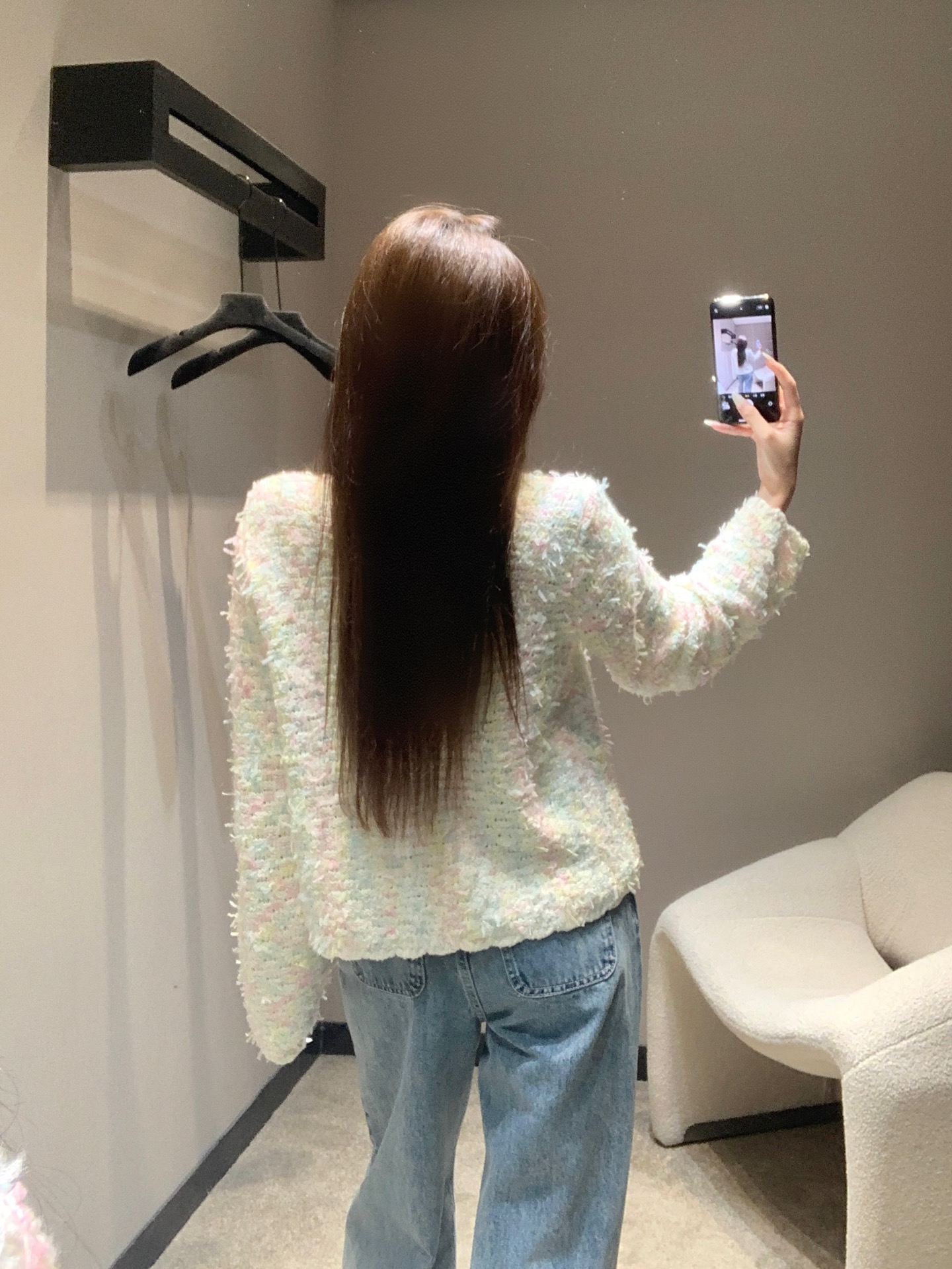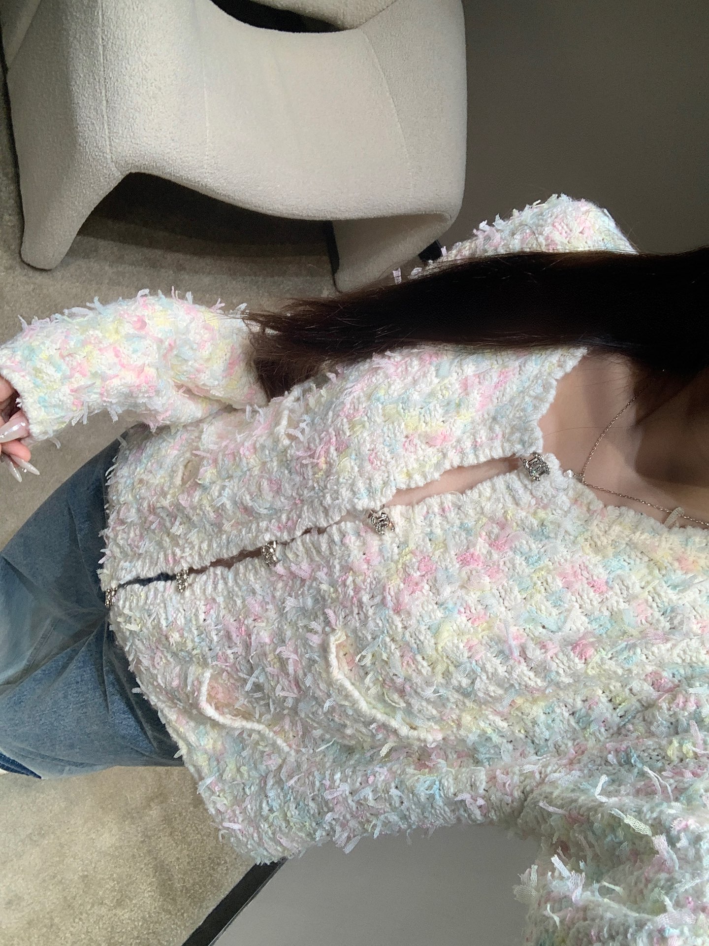 This exquisite knit cardigan offers a blend of classic design and modern style.