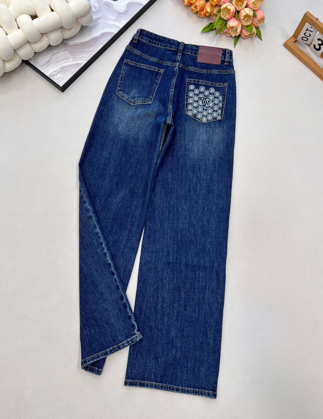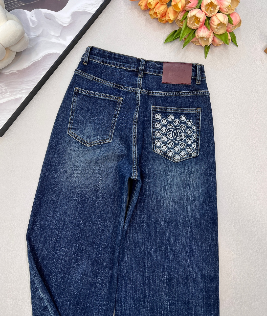Elevate your style with these Chanel straight-leg jeans. Featuring a vintage-inspired wash, double C embroidery, and a flattering high-waisted fit.