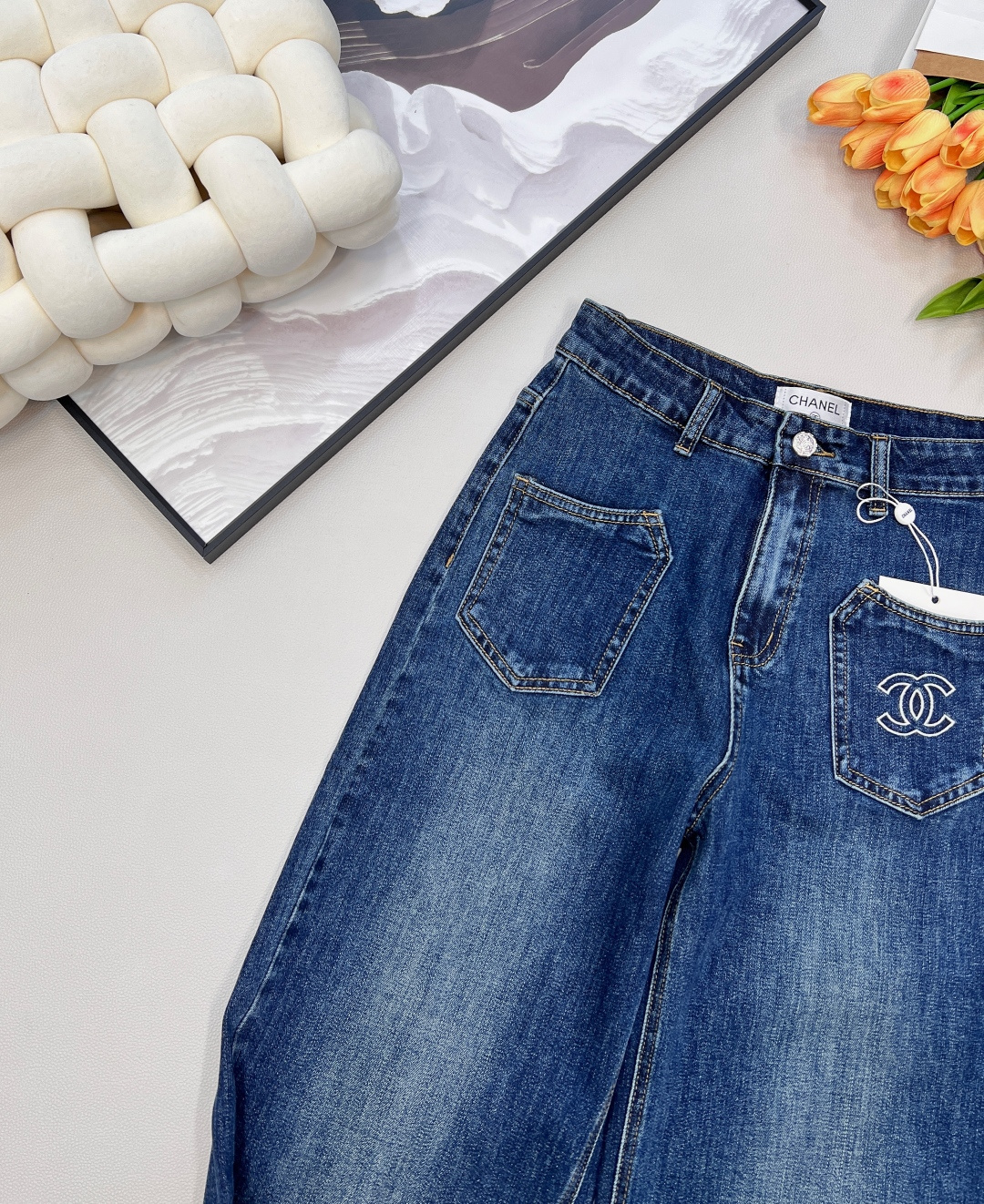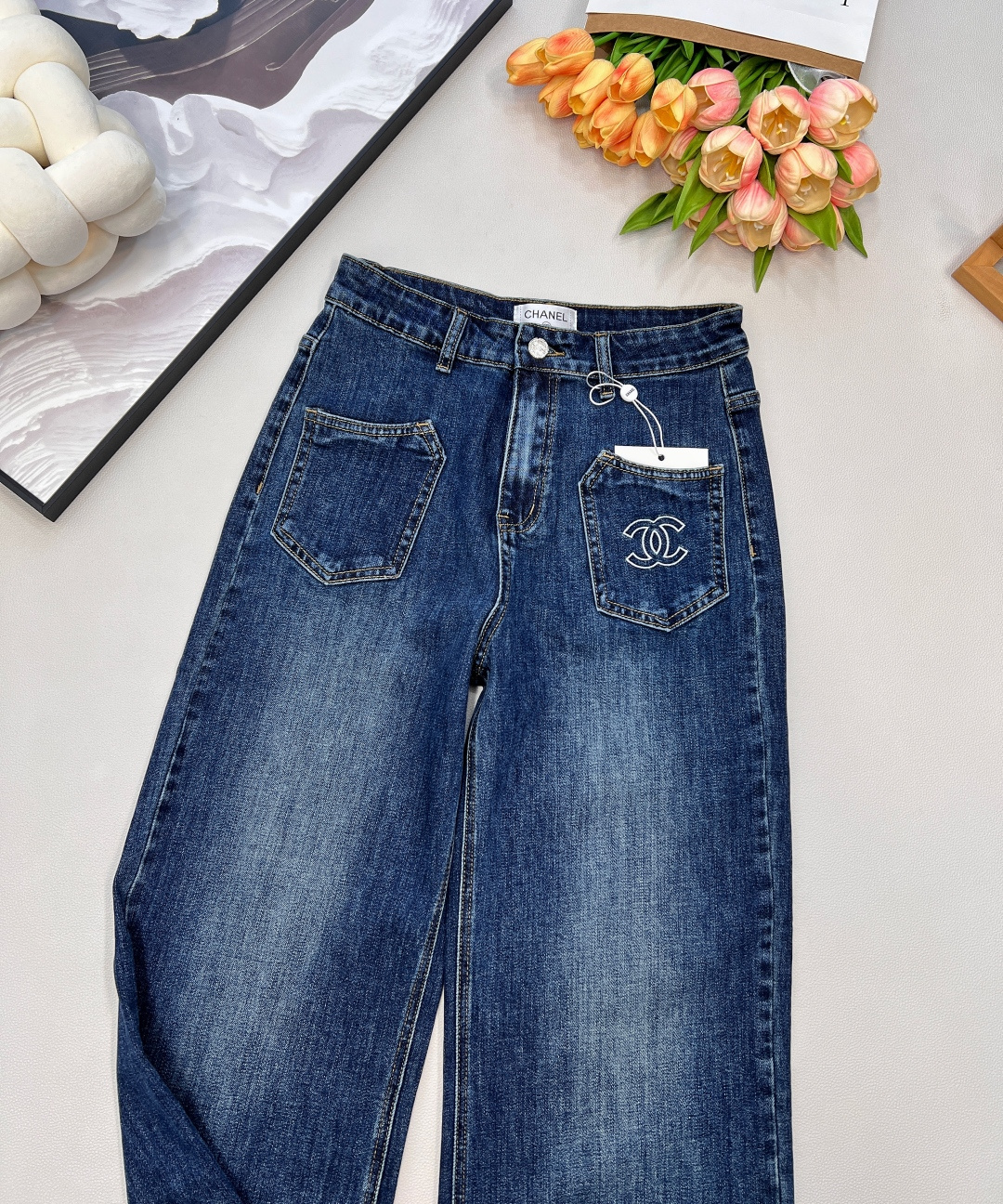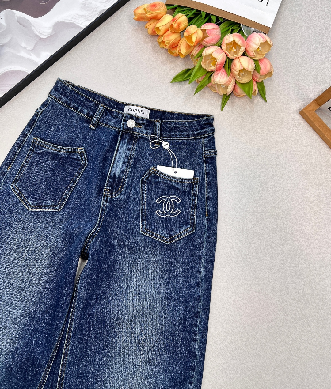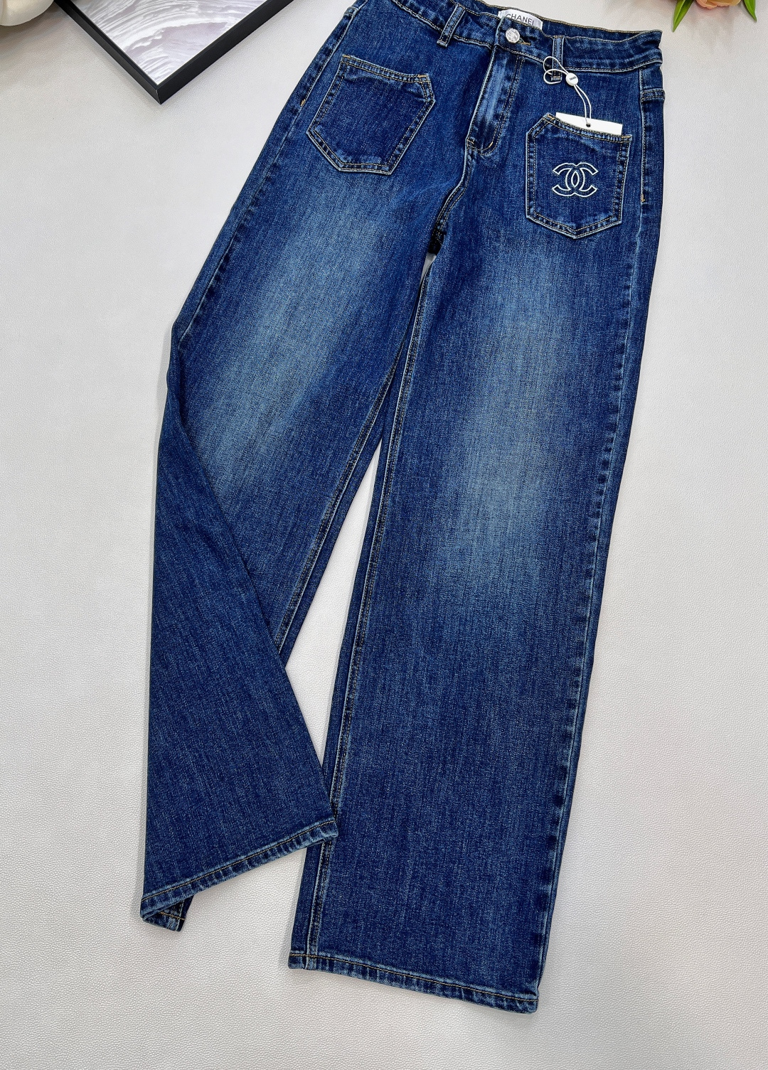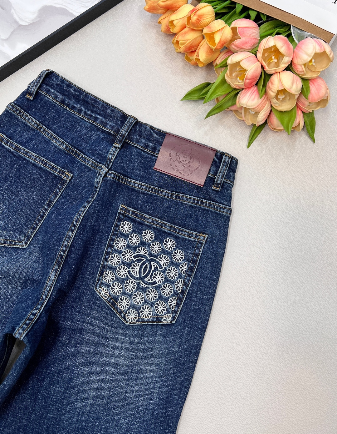 Elevate your wardrobe with these stylish Chanel 25SS straight-leg jeans. Crafted from premium denim, these jeans offer a unique blend of classic design and modern flair.