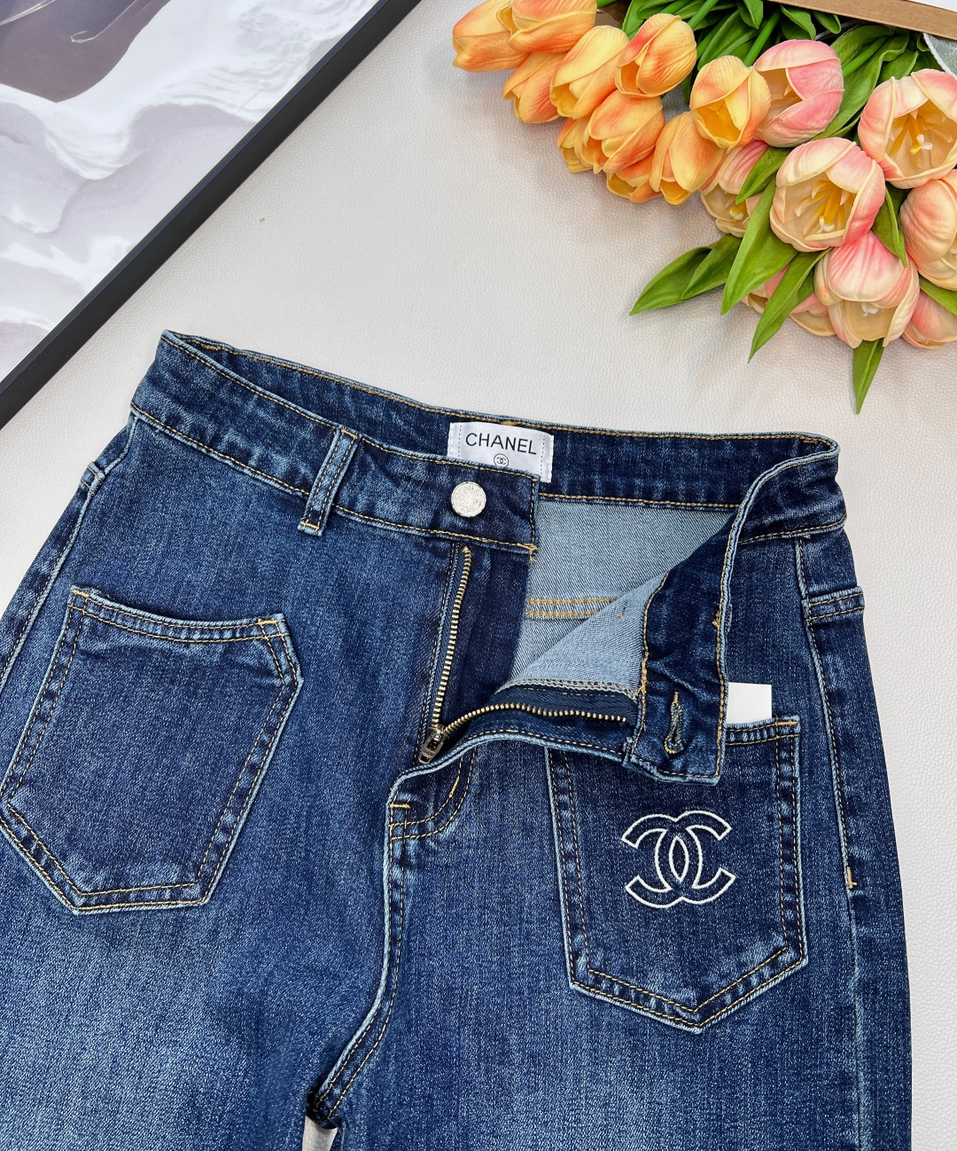 These Chanel jeans are a must-have for any fashion-forward individual. With their unique design and comfortable fit, they are sure to become a staple in your wardrobe.