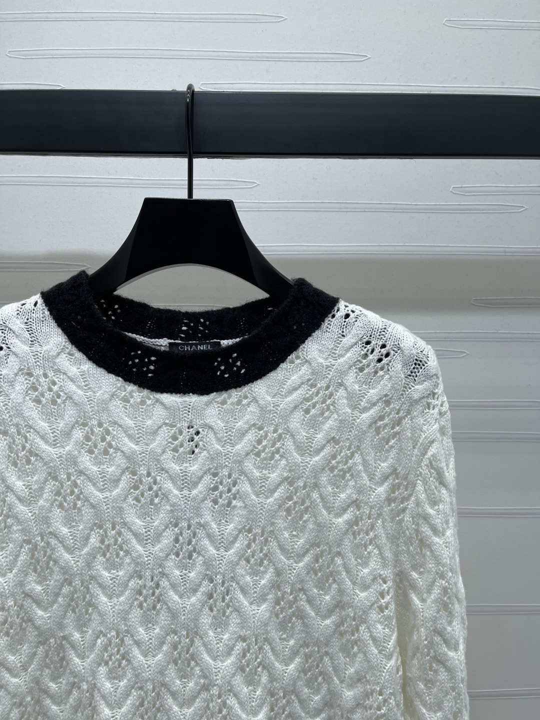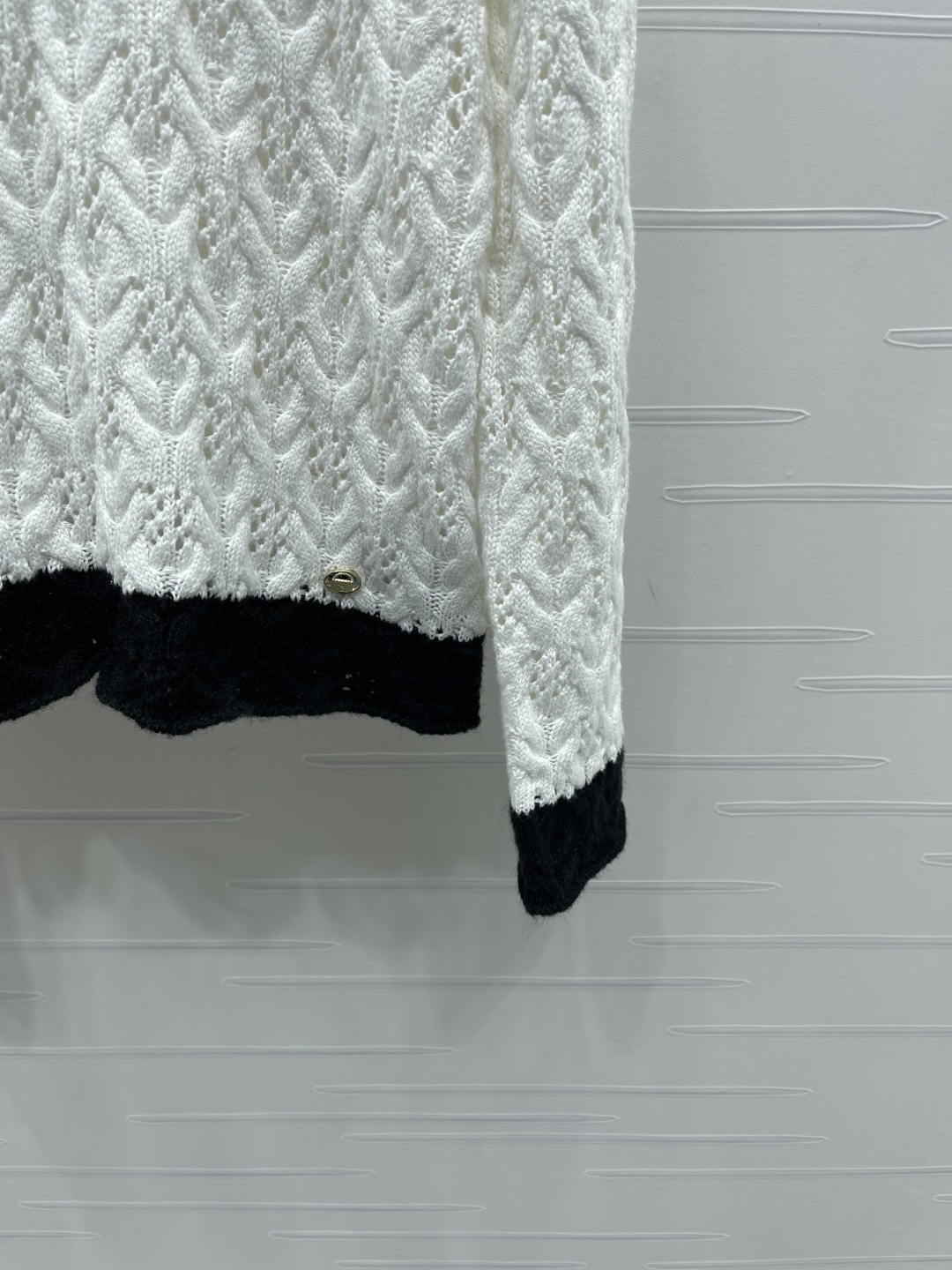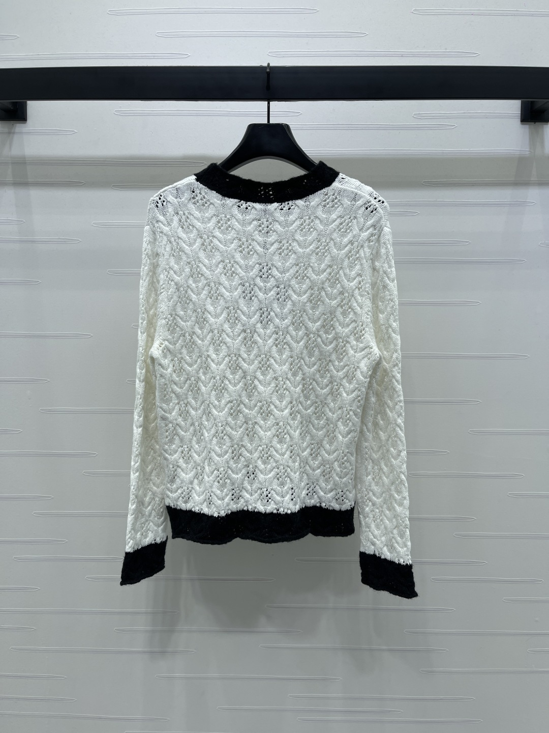 This Chanel knitted sweater is crafted from high-quality wool yarn, offering a luxurious and comfortable feel. The unique knit texture and classic color combination make it a versatile addition to any wardrobe.