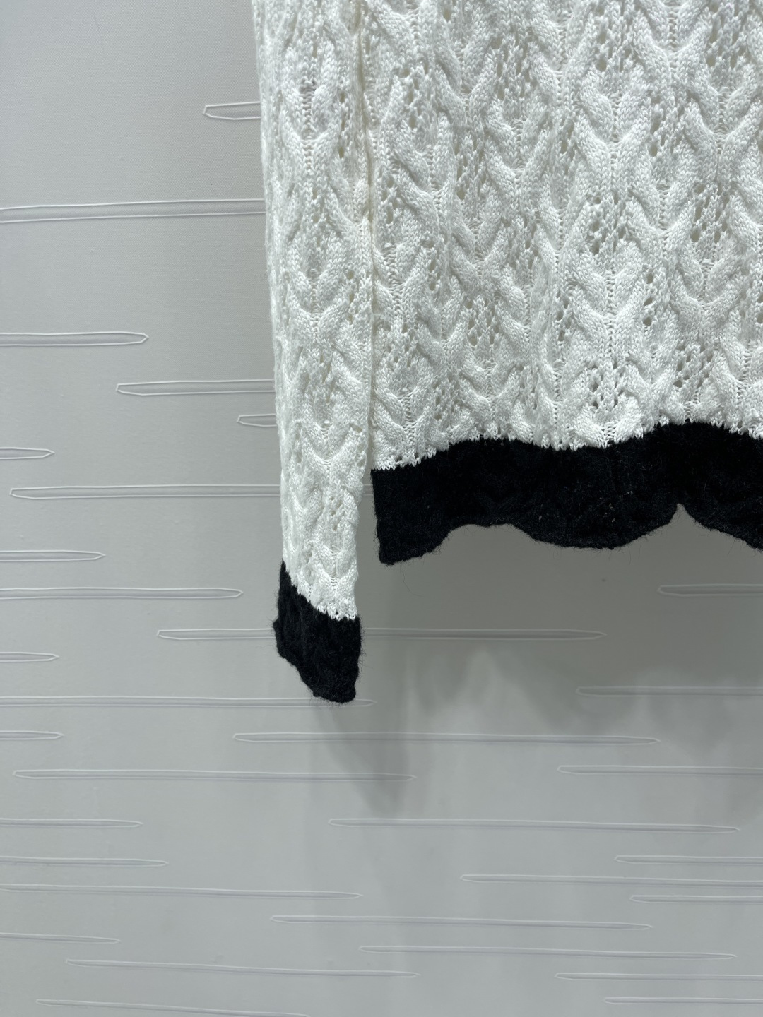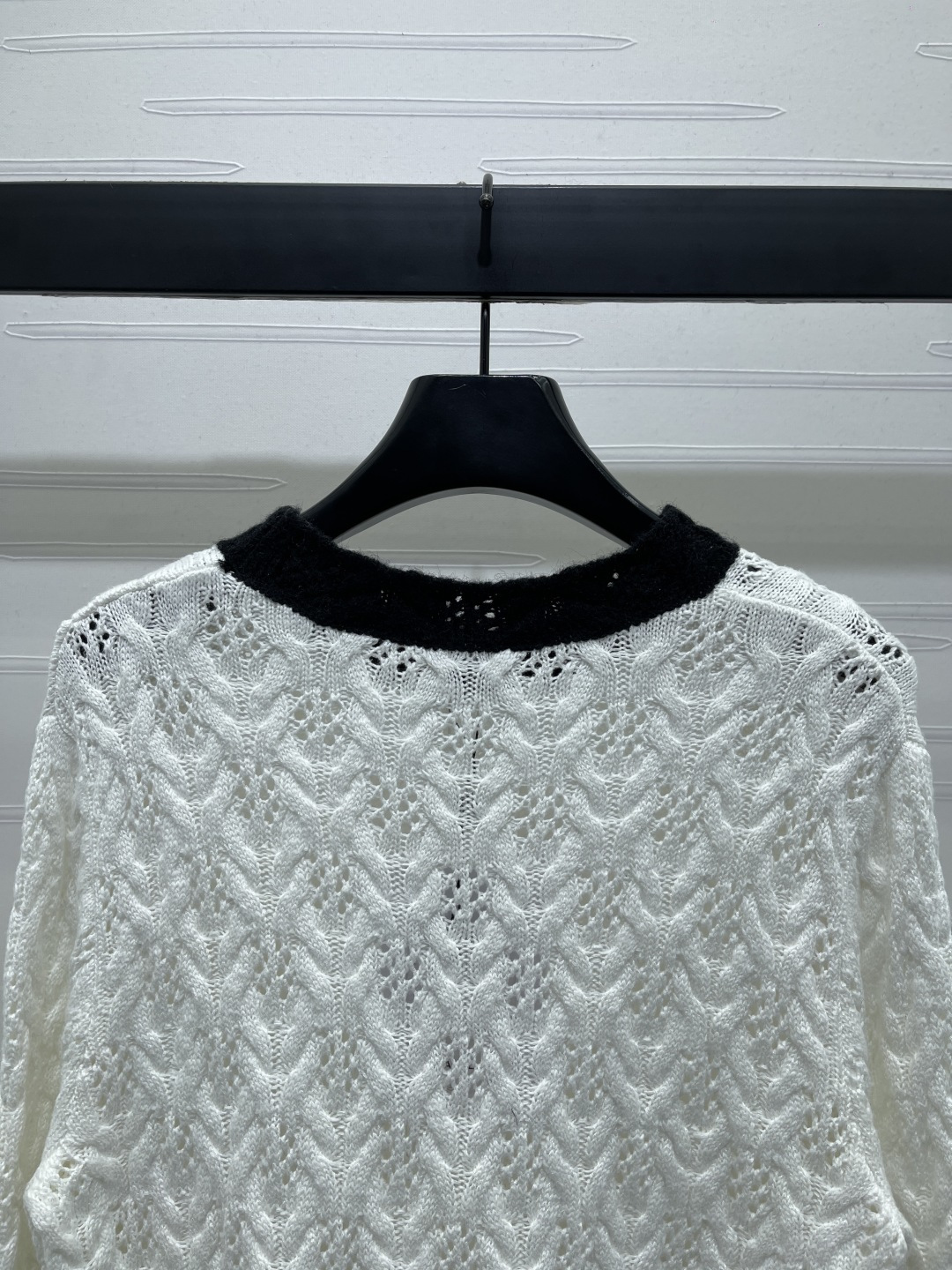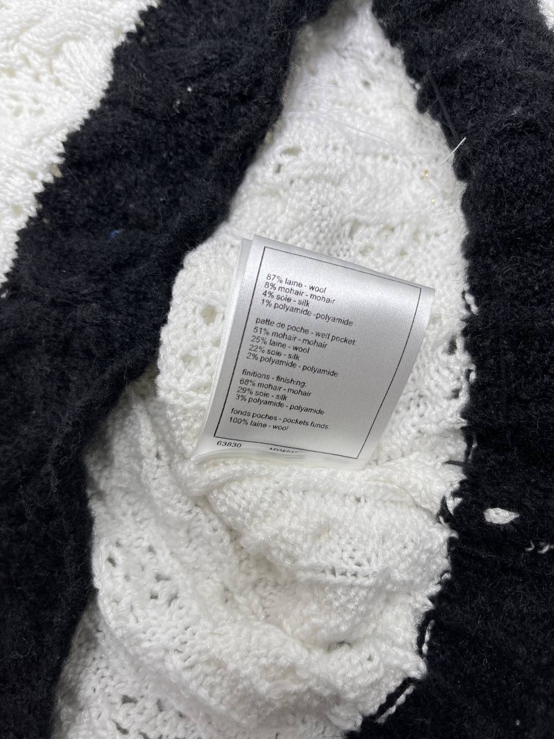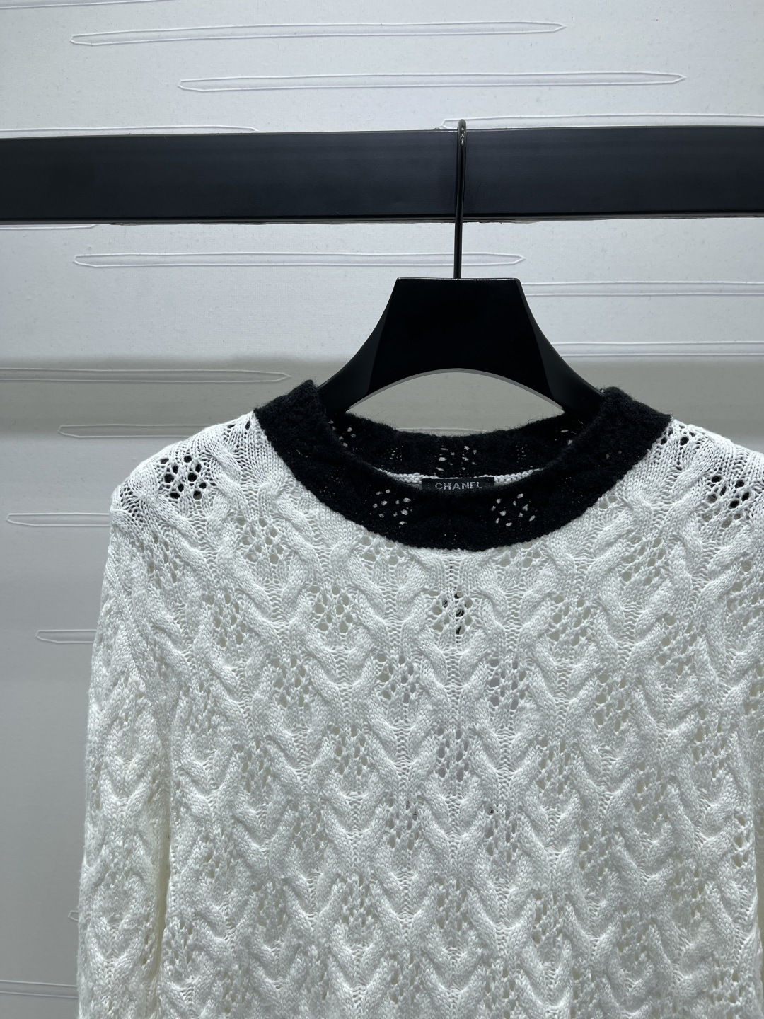 This Chanel knitted sweater is crafted from high-quality wool yarn, offering a luxurious and comfortable feel. The unique knit texture and classic color combination make it a versatile addition to any wardrobe.