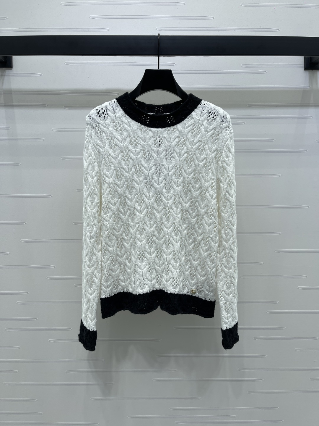 Chanel Black and White Knitted Sweater, Round Neck, Long Sleeves, Relaxed Fit