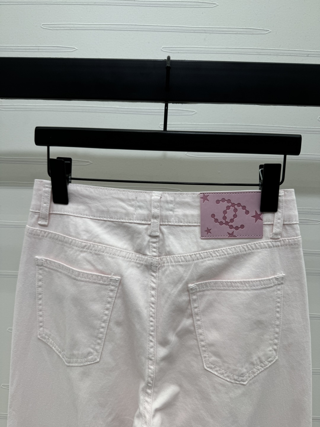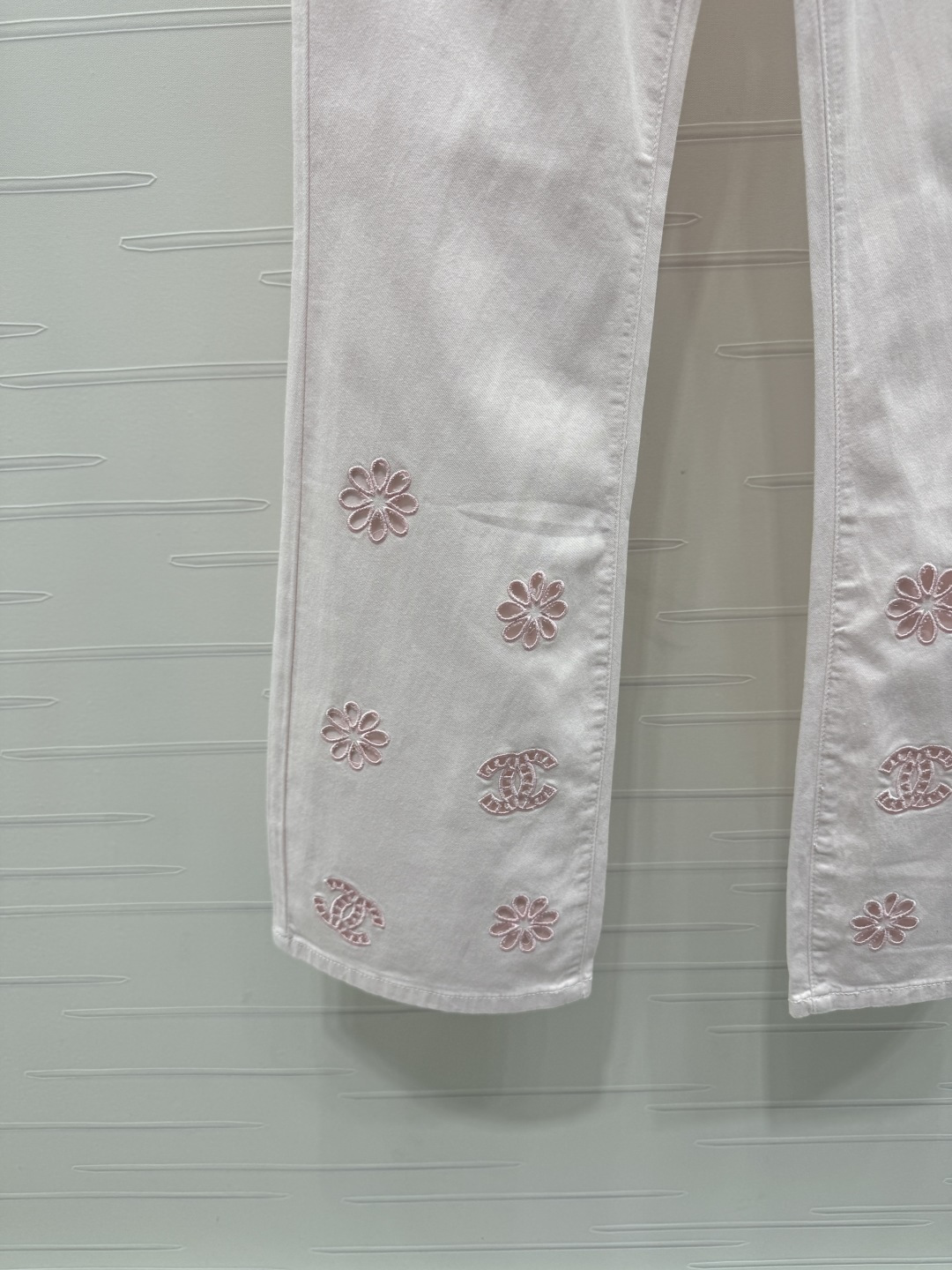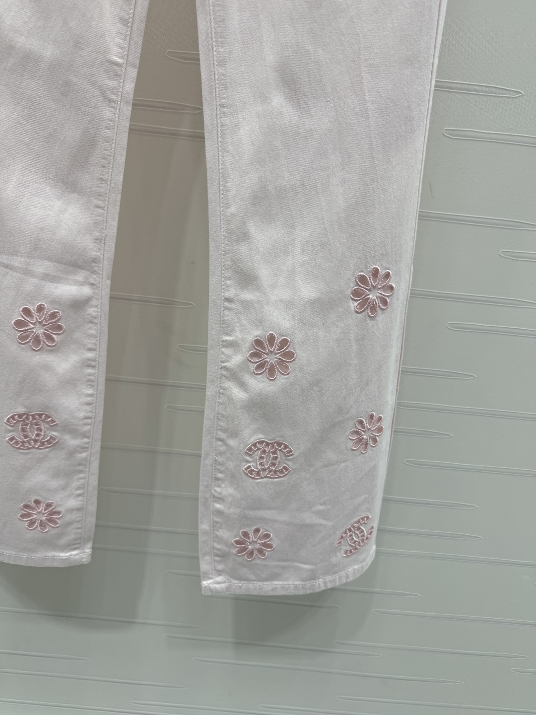 Elevate your style with these Chanel denim jeans from the 2025 S/S collection, featuring chic embroidered logo details. Comfortable, stylish and high-street ready.