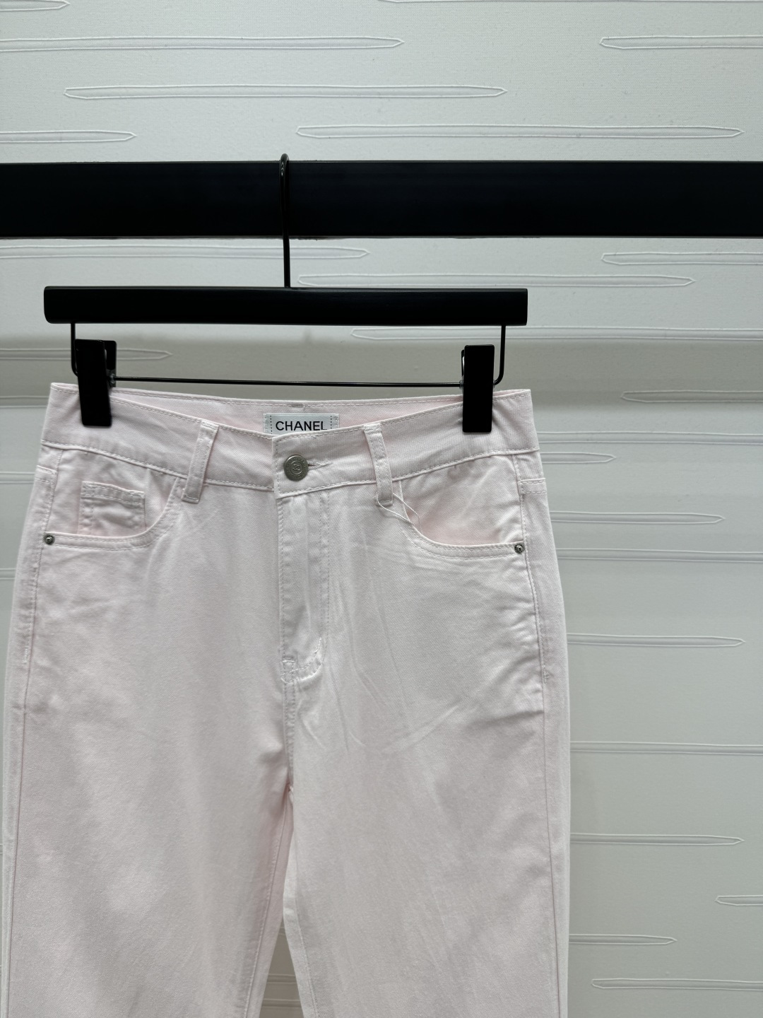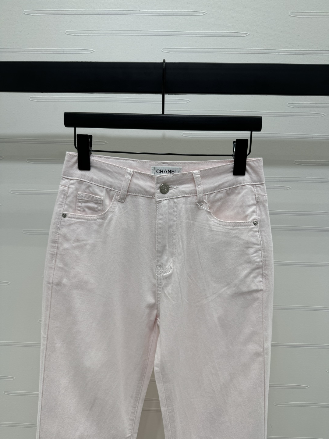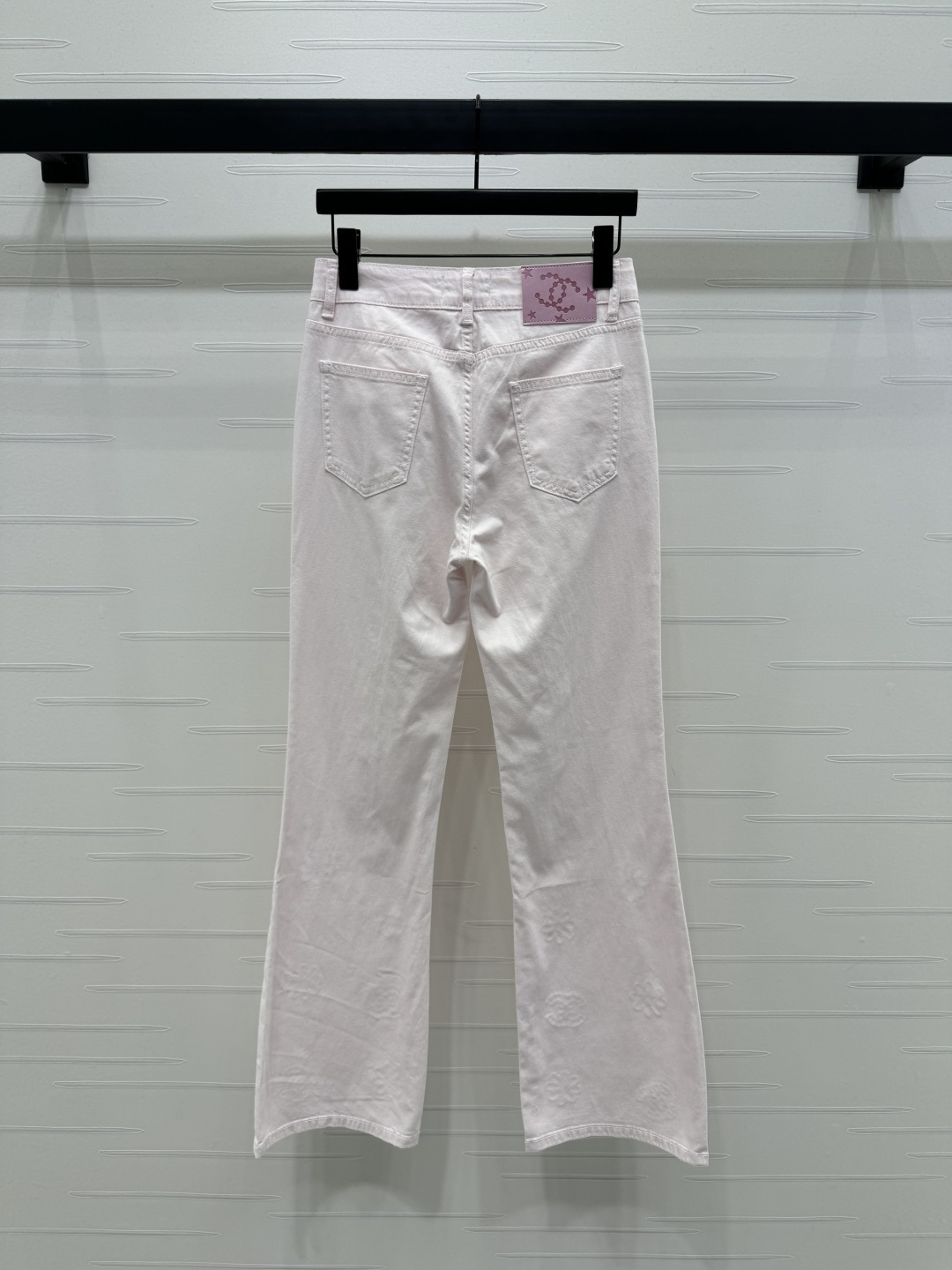 Elevate your style with these Chanel denim jeans from the 2025 S/S collection, featuring chic embroidered logo details. Comfortable, stylish and high-street ready.