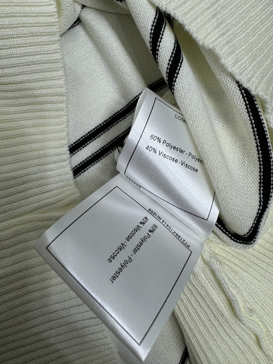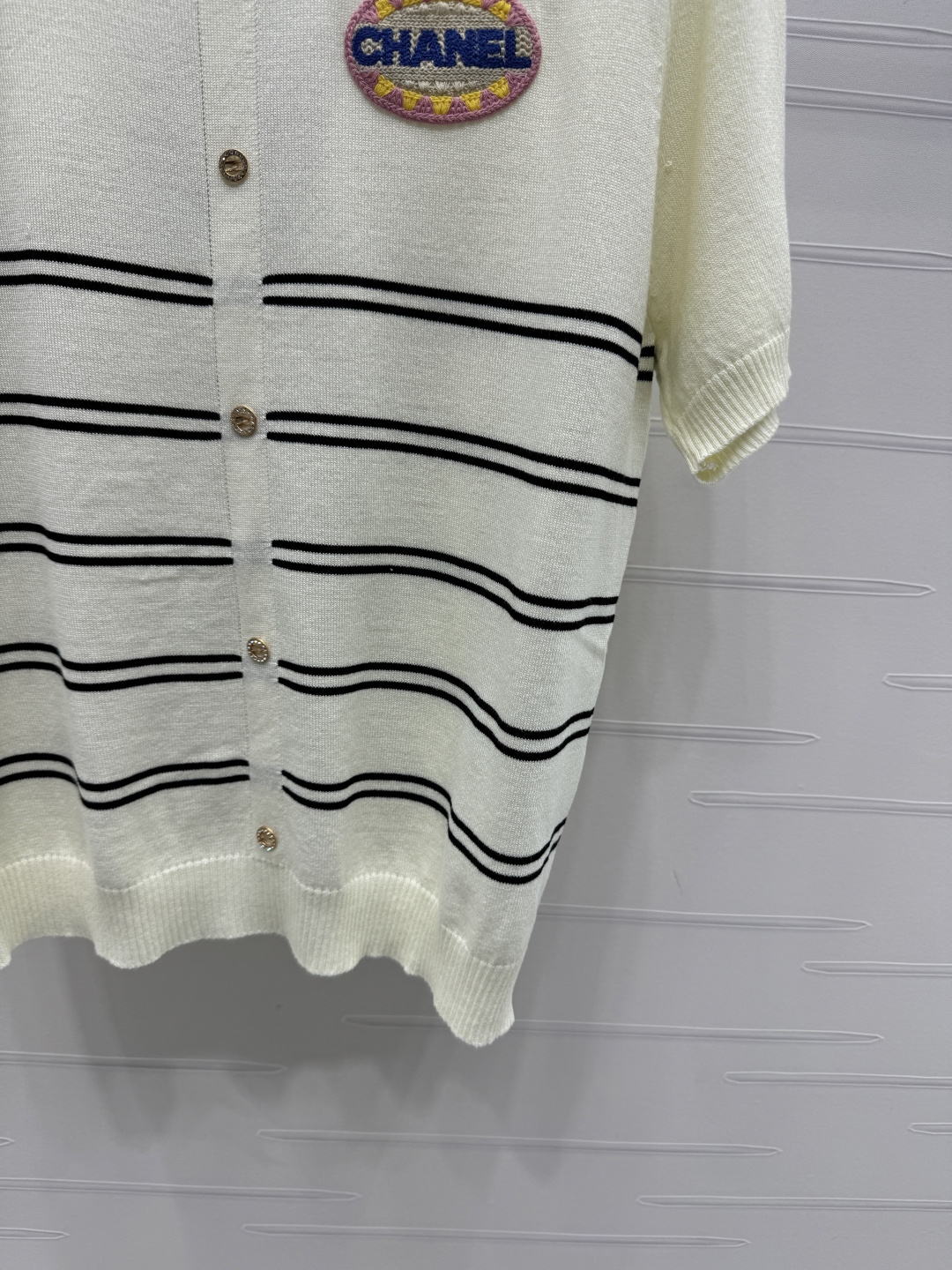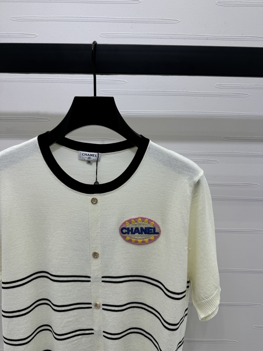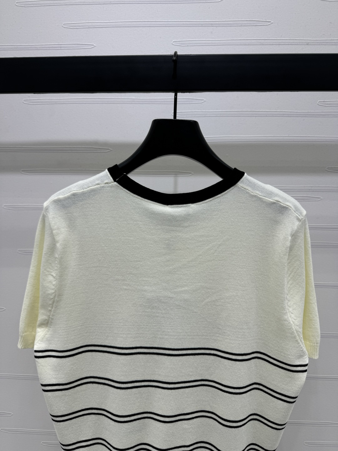 Chanel Striped Knit Short Sleeve Top with Button Detail