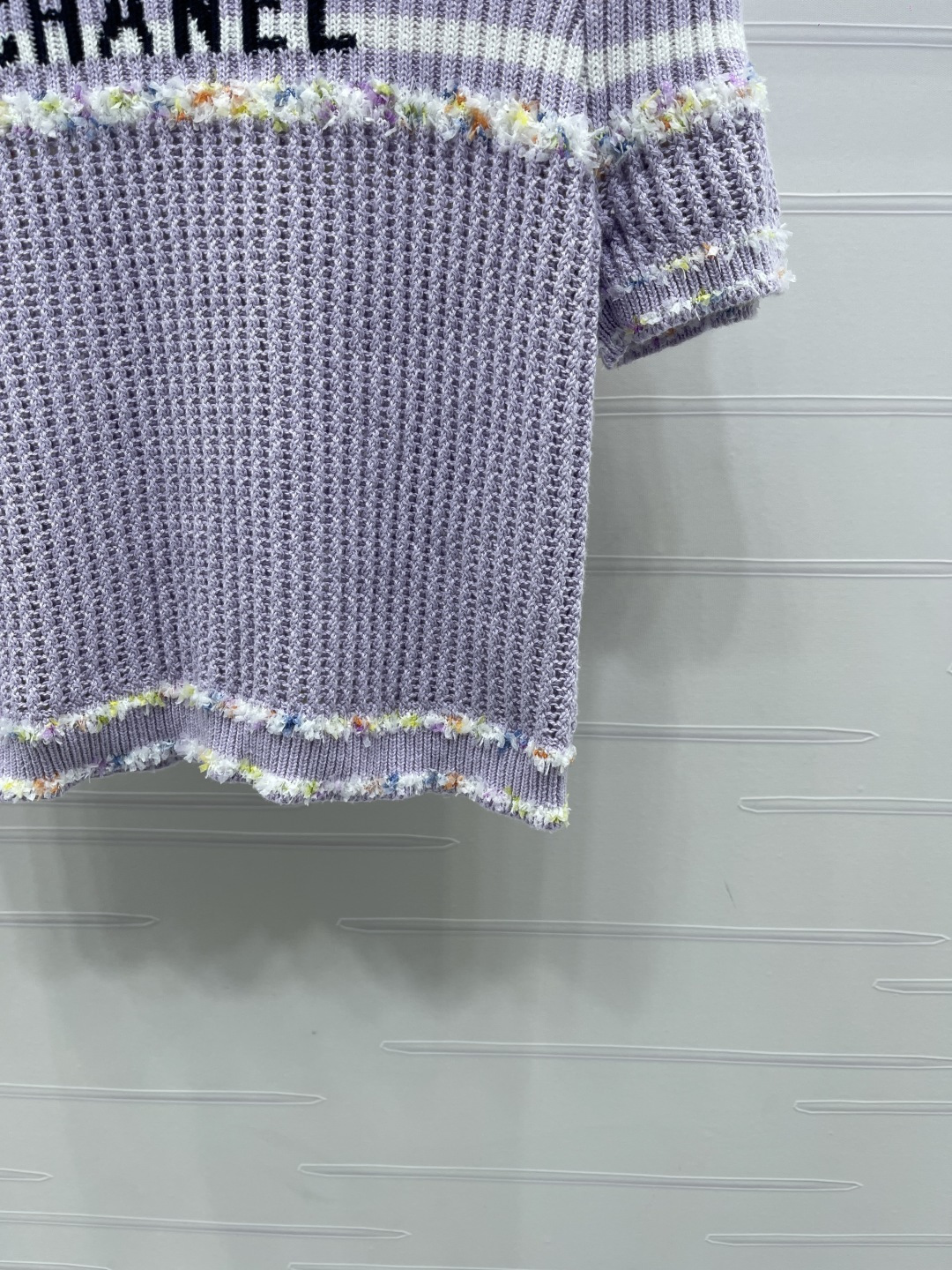 Chanel Women's Crewneck Short Sleeve Knitted Top With Logo - Elegant Style
