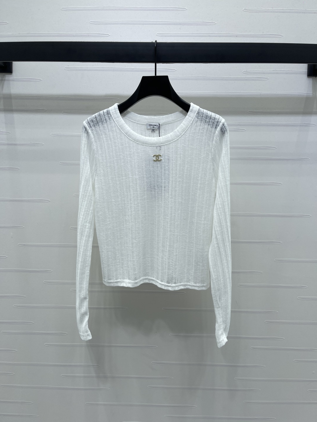 Chanel Women's Long Sleeve Knitted Top with CC Logo - Fashionable and Chic