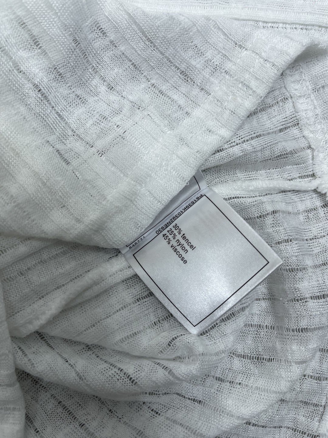 This knitted Chanel top combines comfort and style effortlessly. Perfect for layering or wearing on its own, it's a timeless piece that will elevate any outfit.