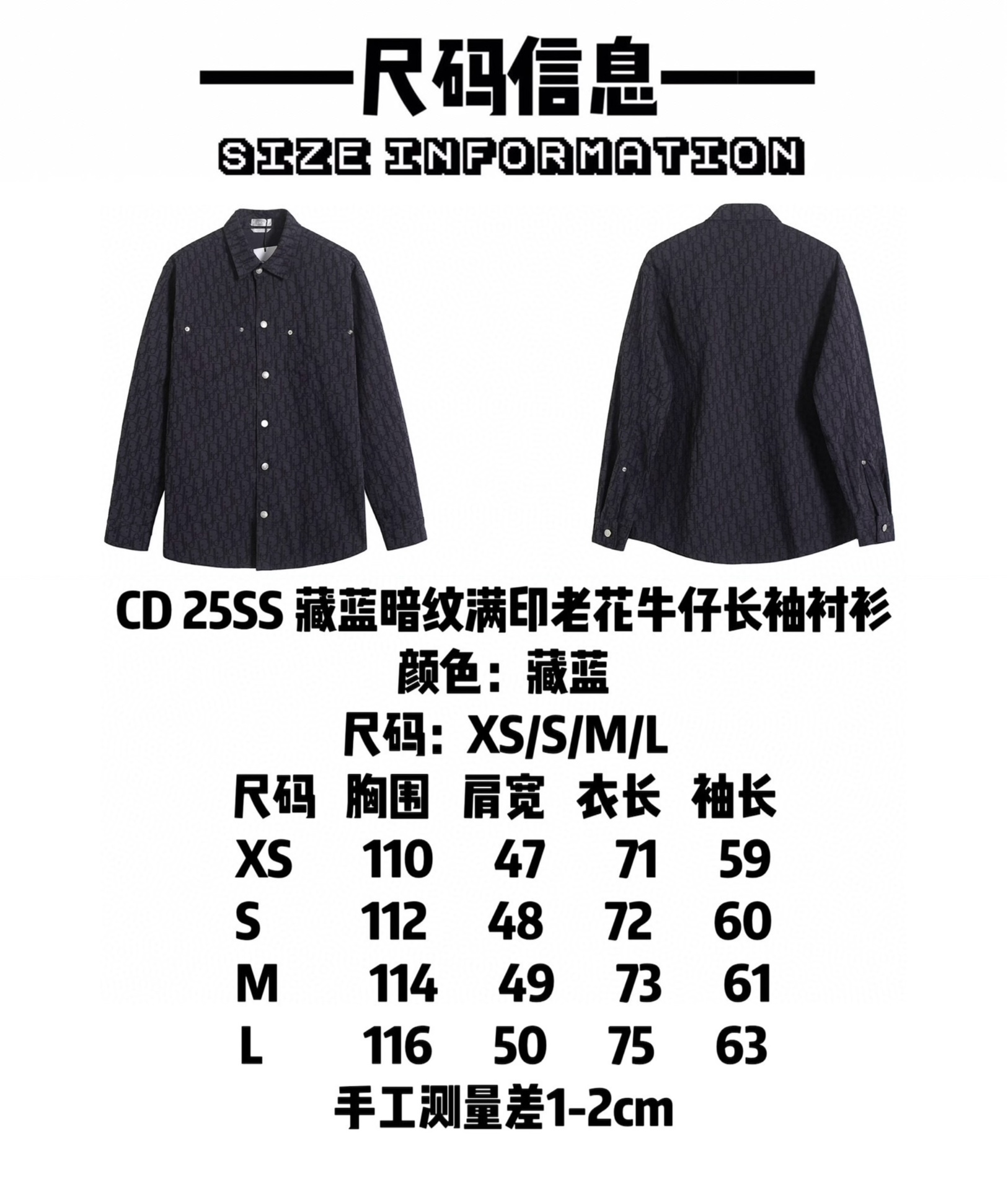 Christian Dior CD Dark Blue Oblique Denim Long Sleeve Shirt Unisex