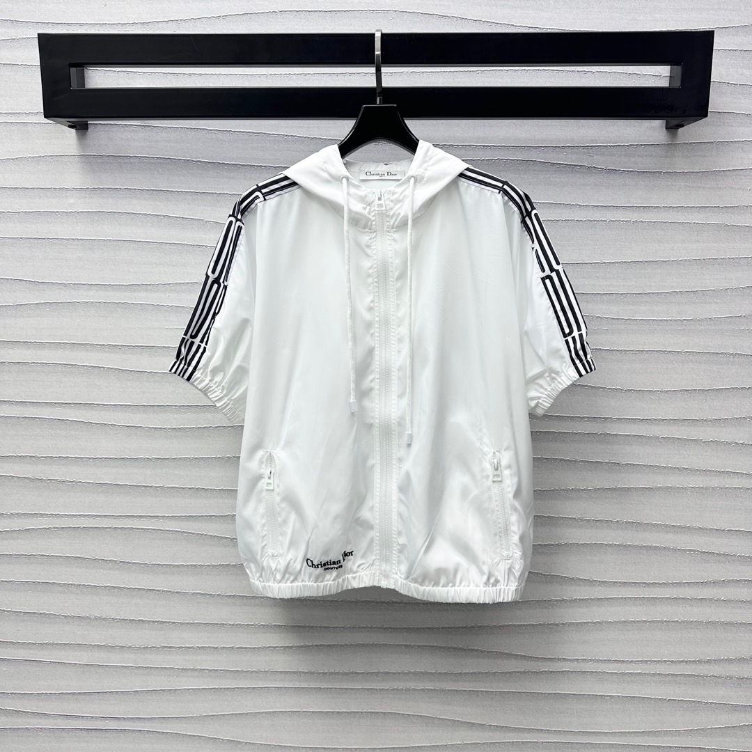 This Christian Dior set includes a hooded jacket and matching shorts, crafted from high-quality nylon for a comfortable and stylish fit.