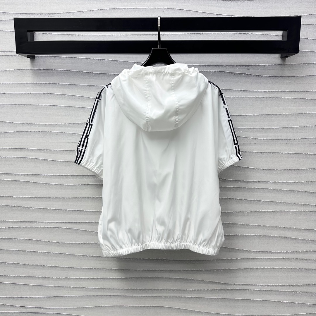 Christian Dior White Nylon Hooded Jacket and Shorts Set With Logo Stripe