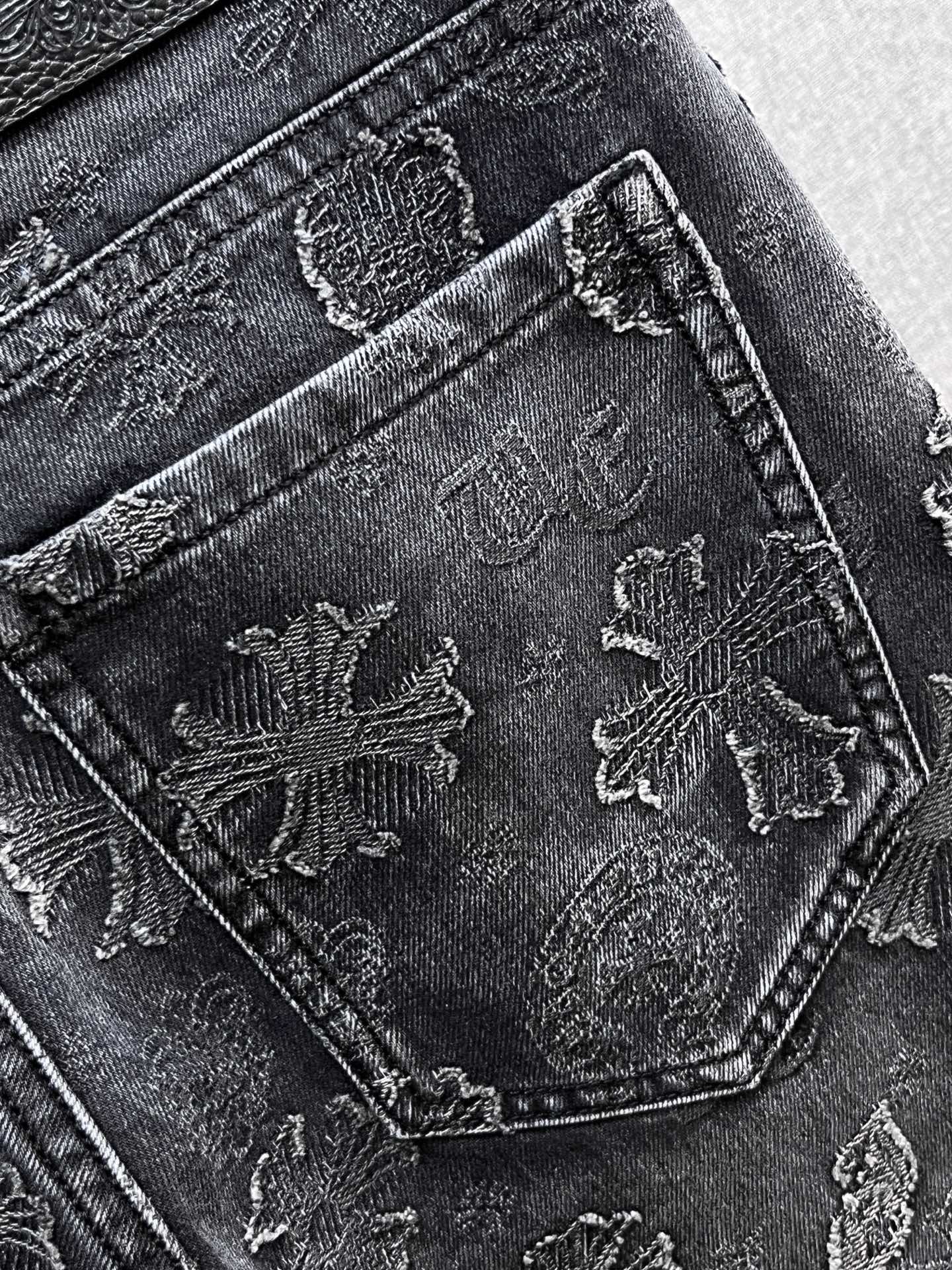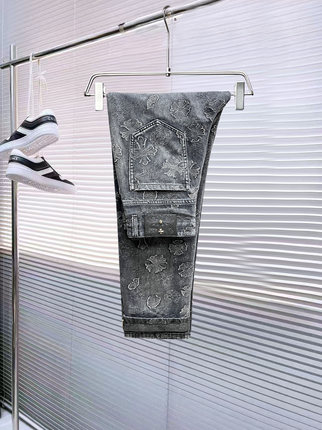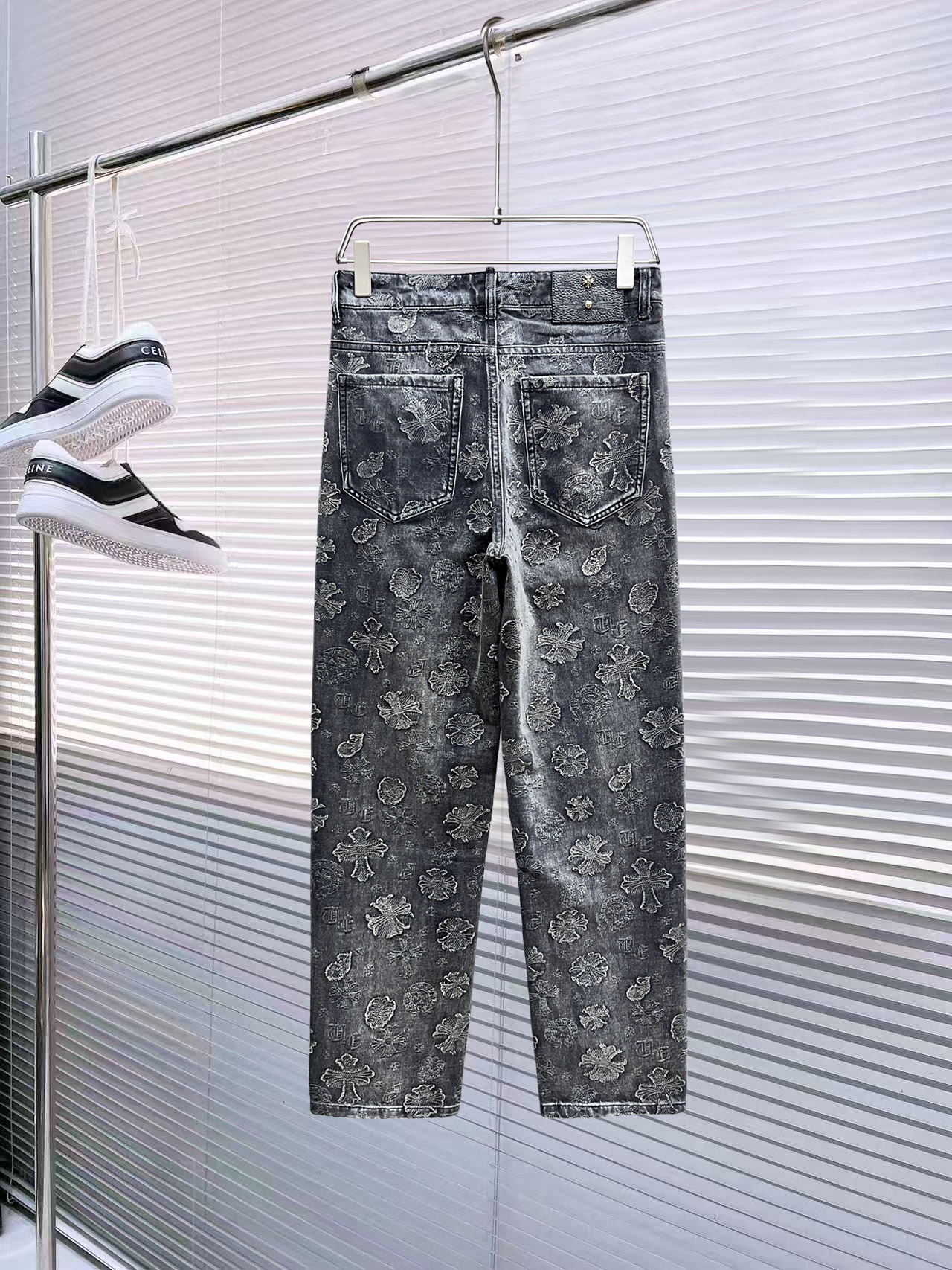 Elevate your style with these Chrome Hearts denim jeans! Crafted from premium cotton, features a slim fit and unique cross design.