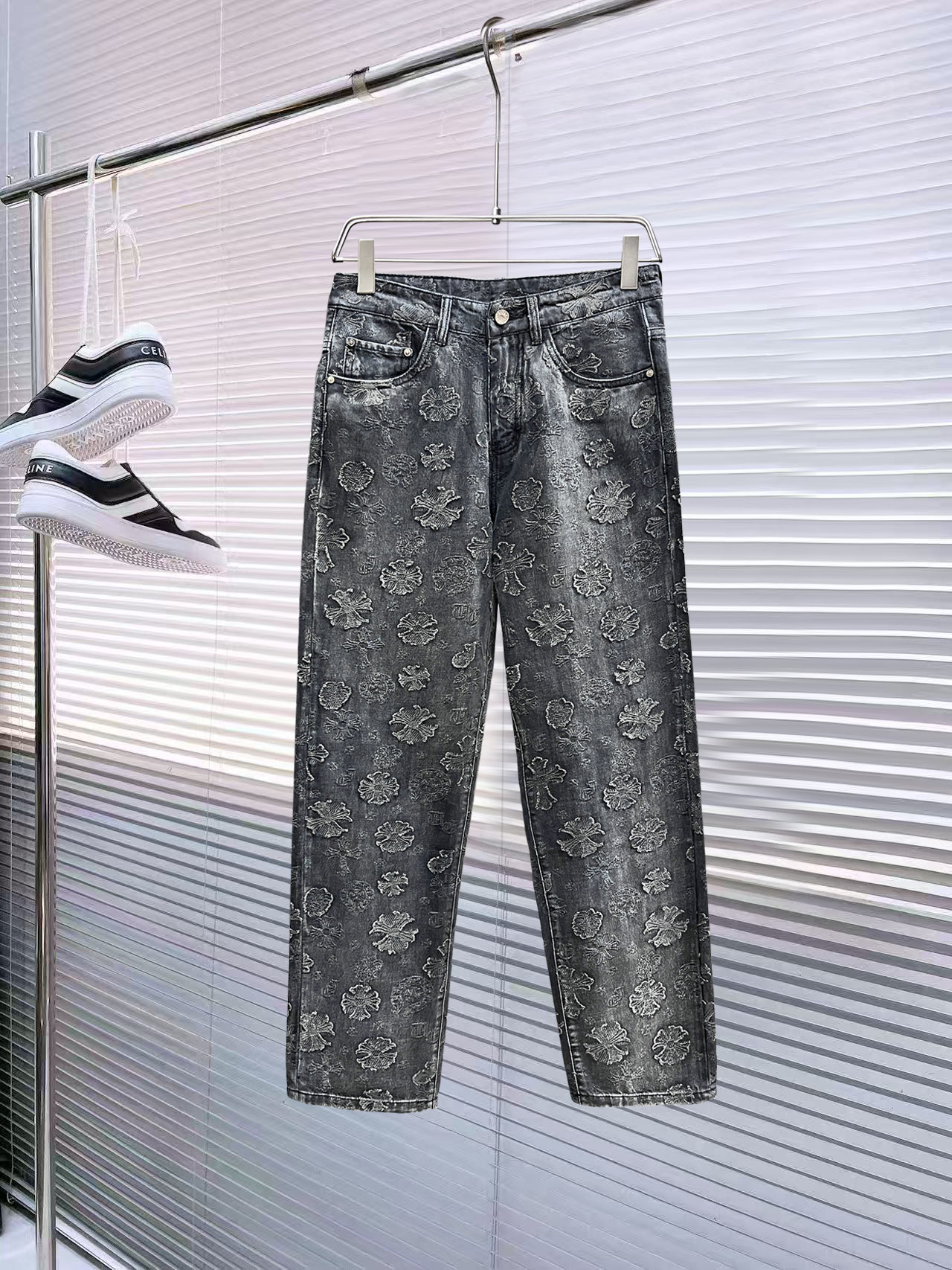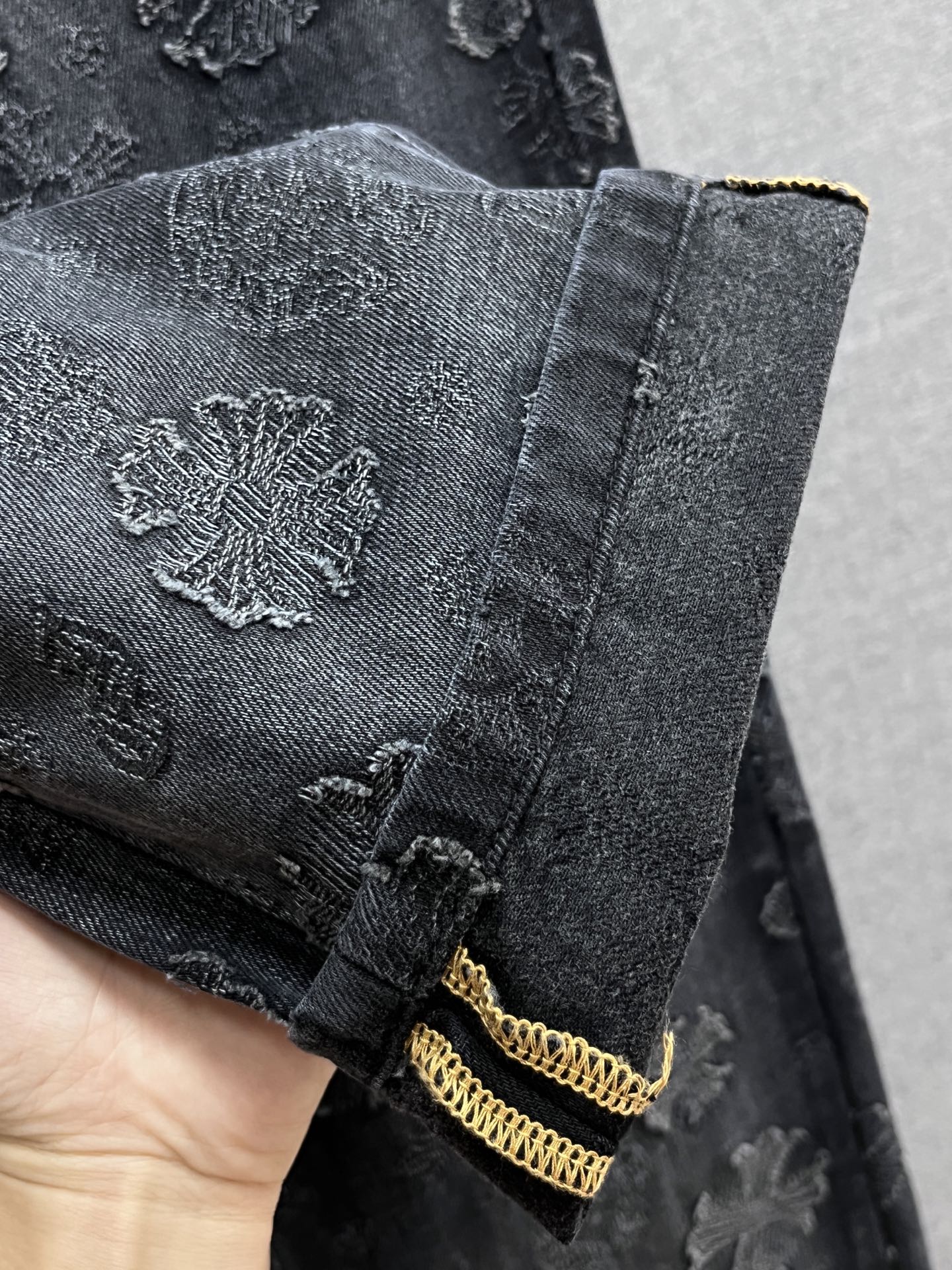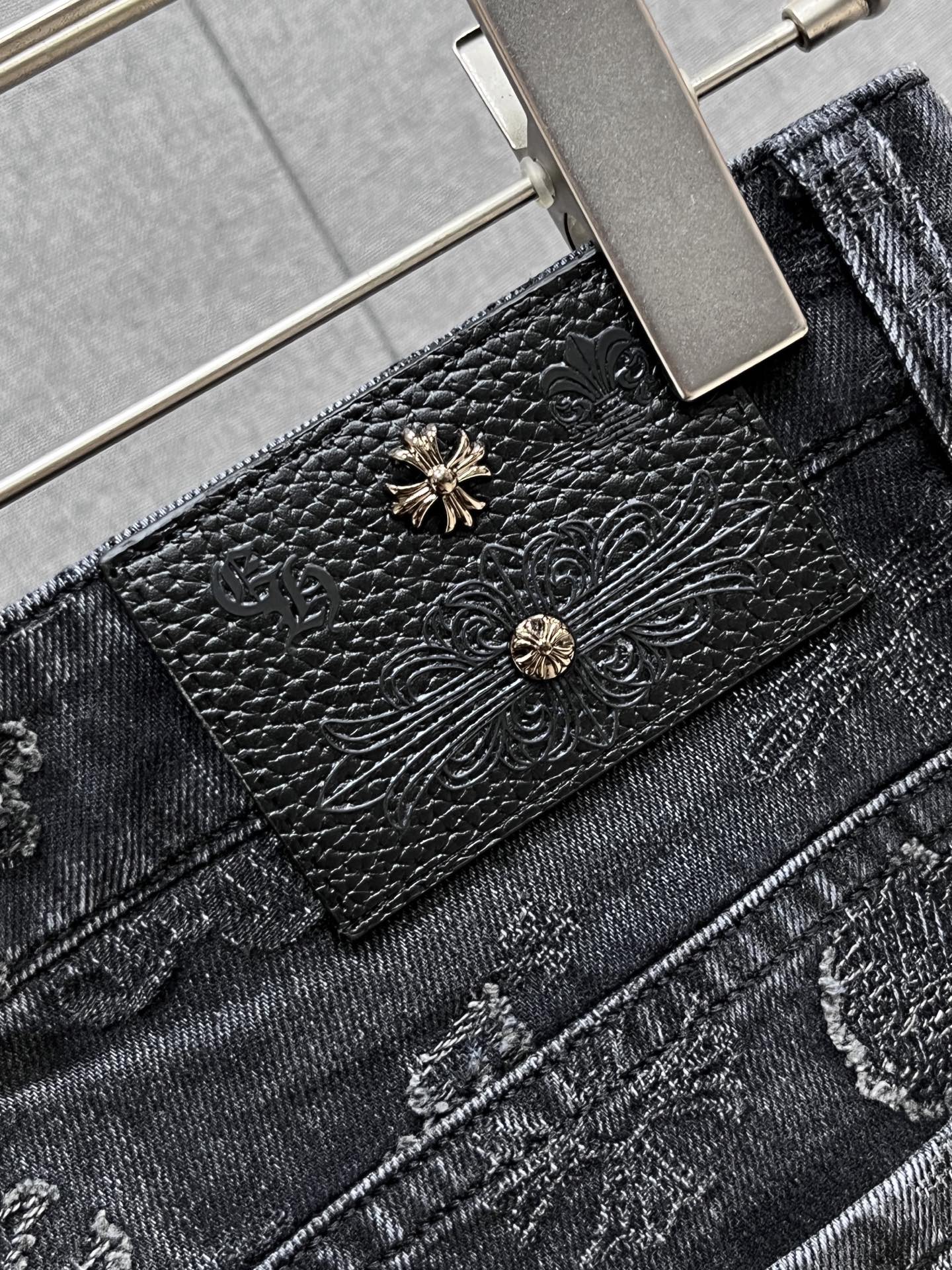 Elevate your style with these Chrome Hearts denim jeans! Crafted from premium cotton, features a slim fit and unique cross design.
