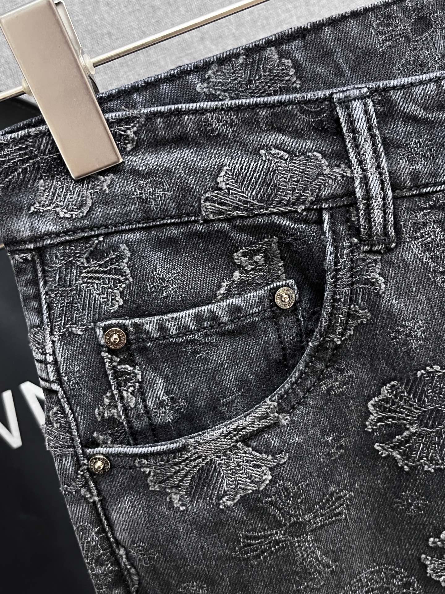 Chrome Hearts Men's Distressed Cross Denim Jeans Slim Fit Fashion Pants