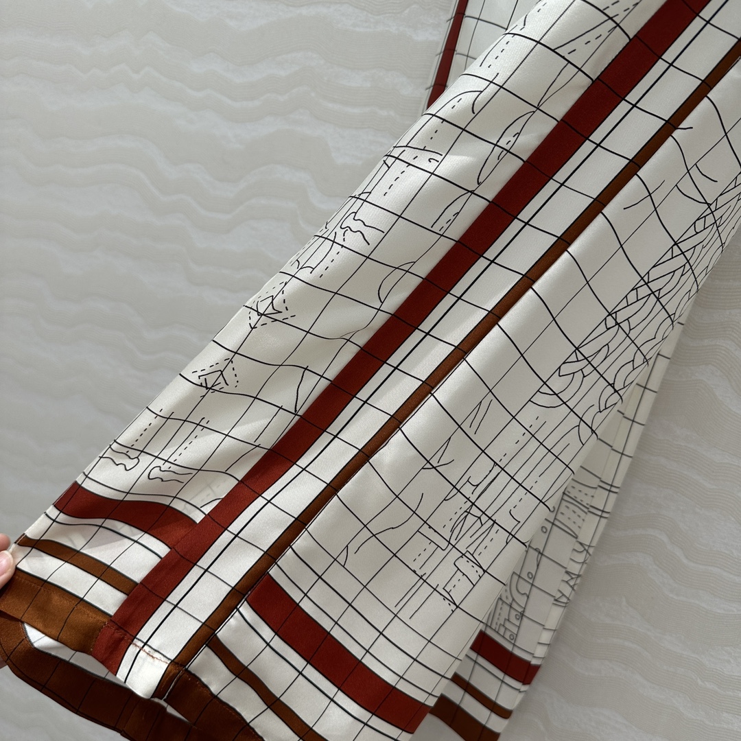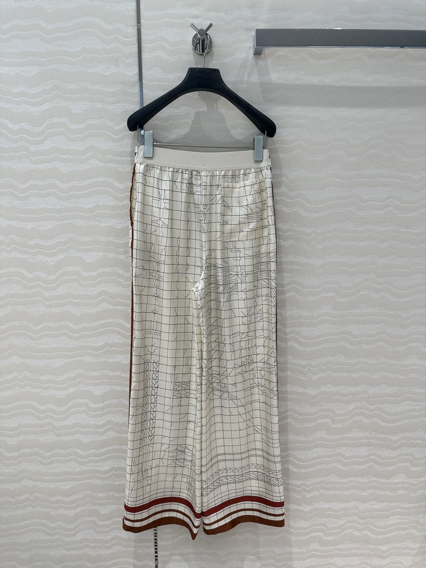 Coach Deja Vu Print Silk Pants Women's Wide Leg Trousers Spring New Arrival