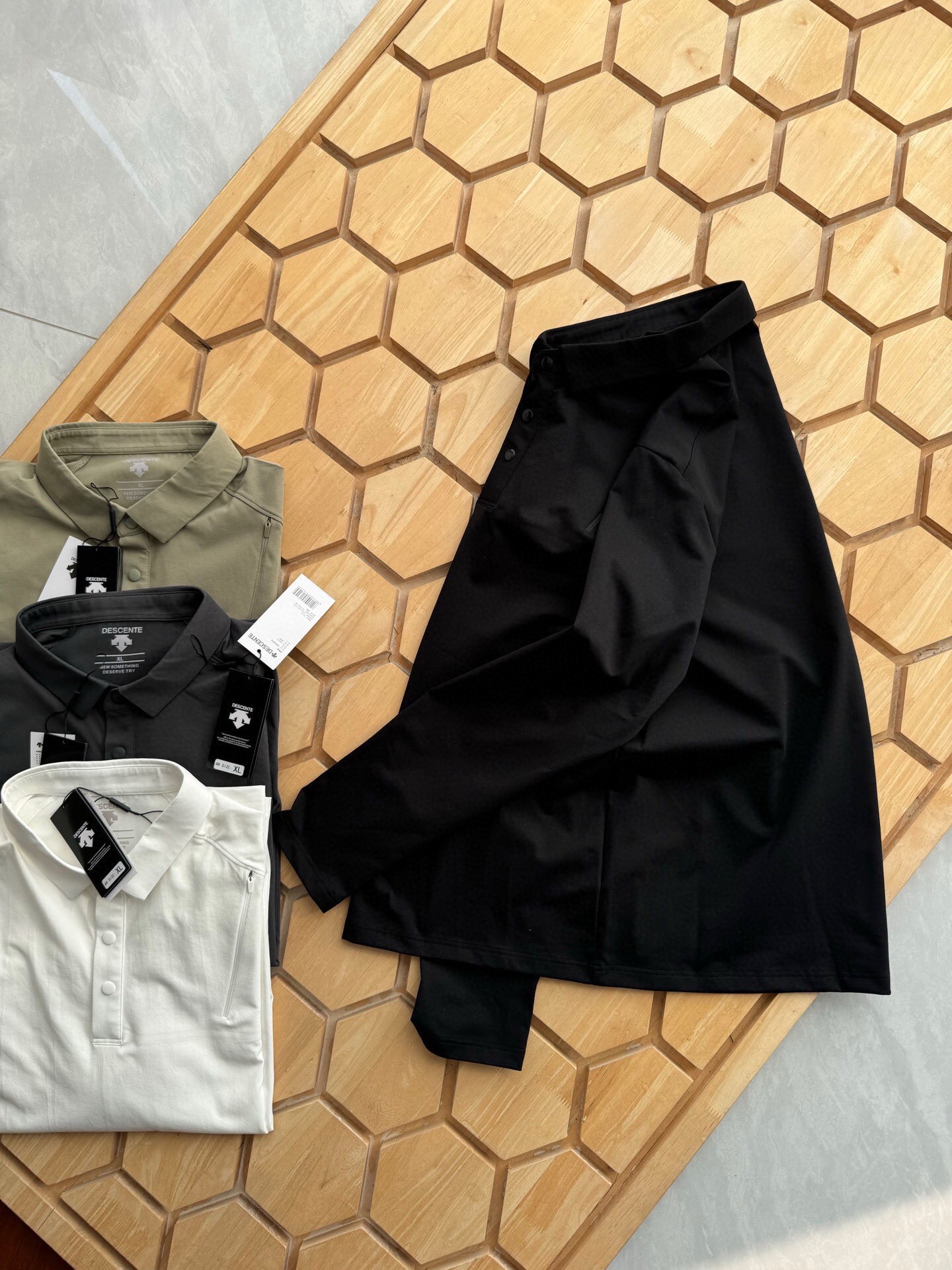 - Design: Solid color with buttoned polo collar