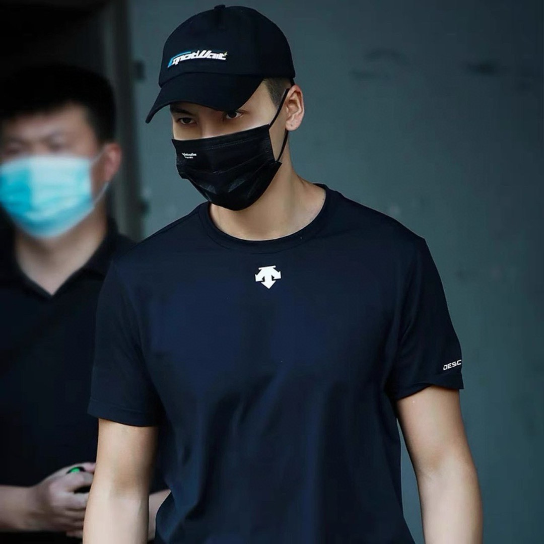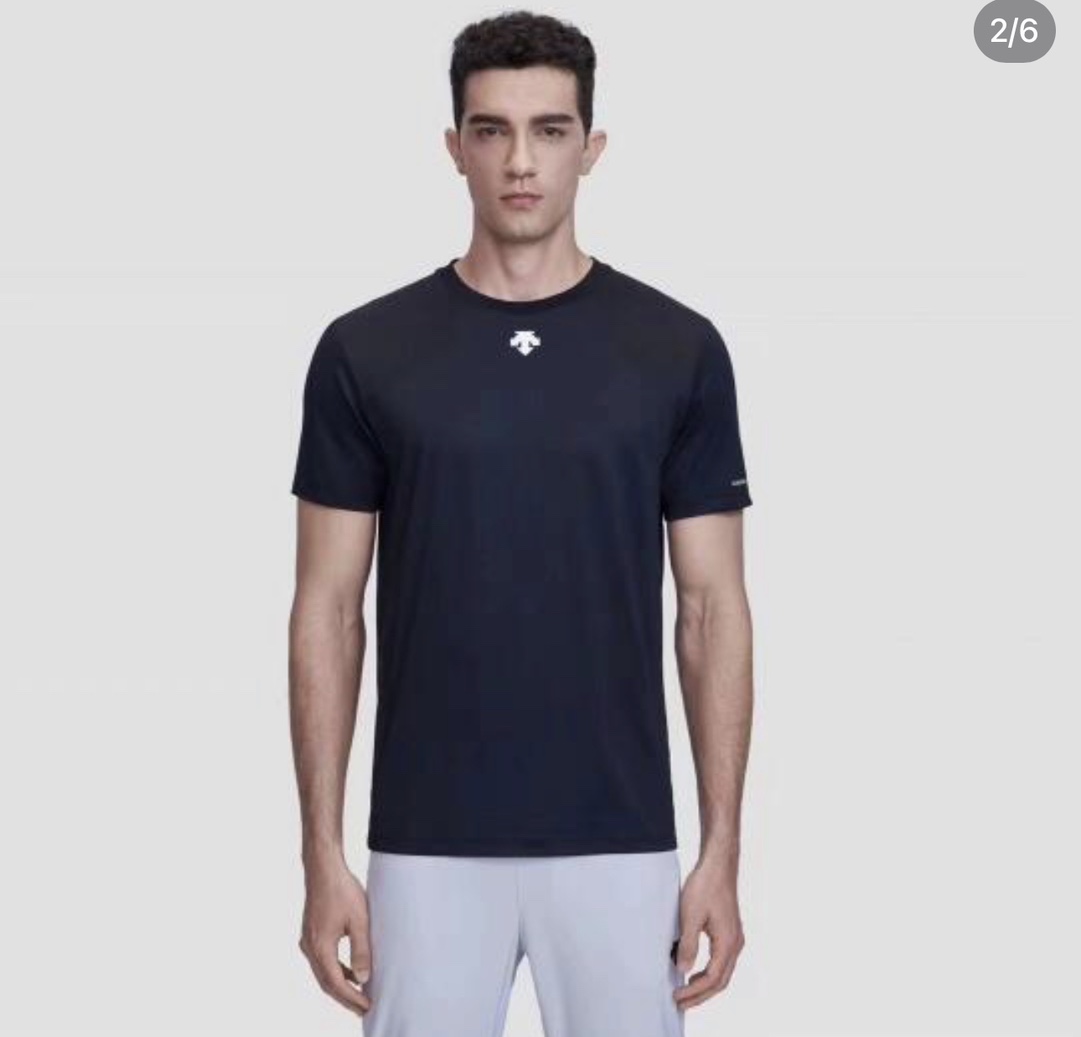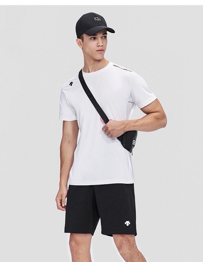 Descente Men's Training T-Shirt, Quick-Dry, Anti-Odor, Round Neck, Black & White, 2-Pack