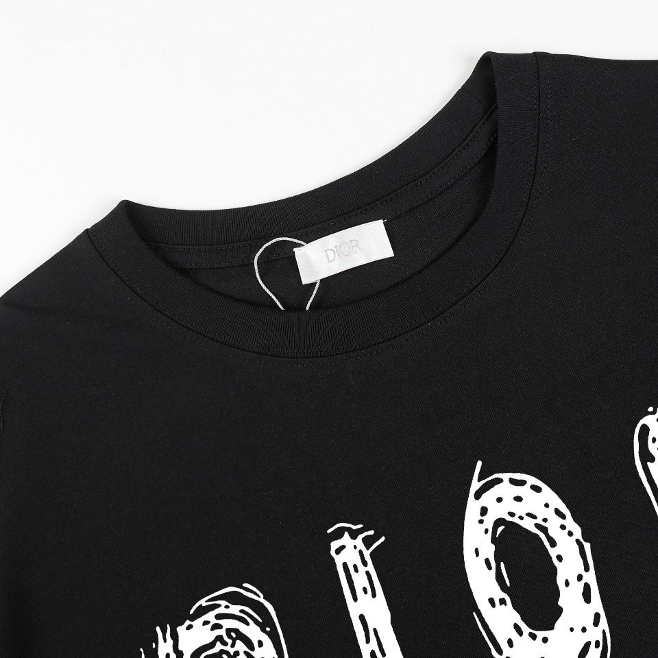 Dior 2025SS Printed Logo Cotton T-Shirt, Unisex Oversized Fit, Black and White