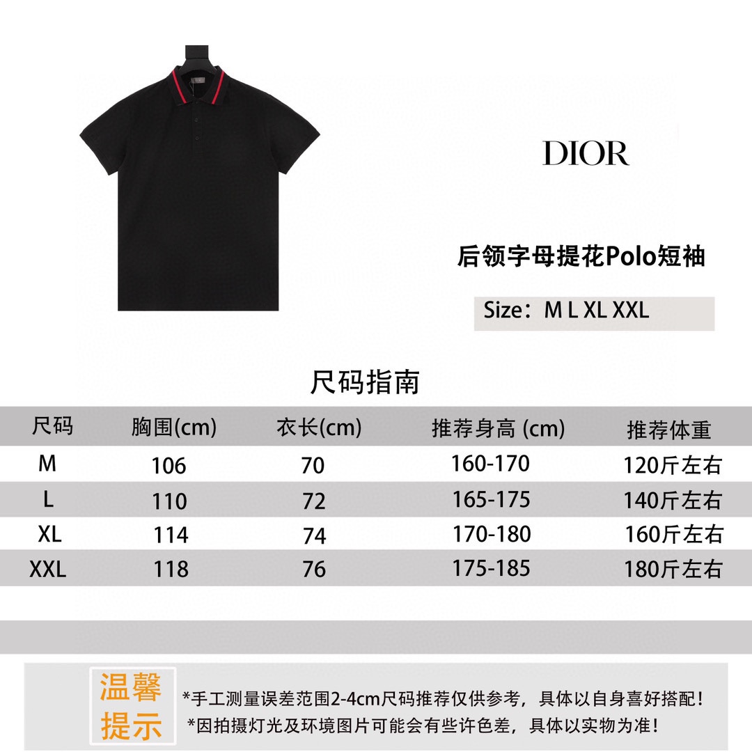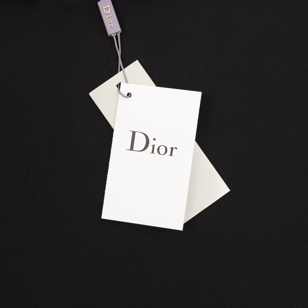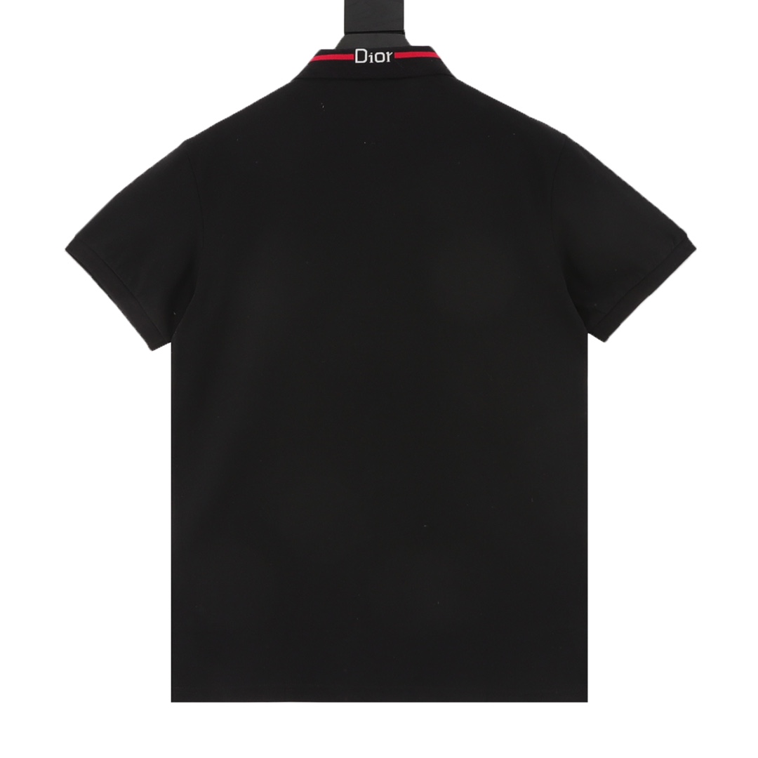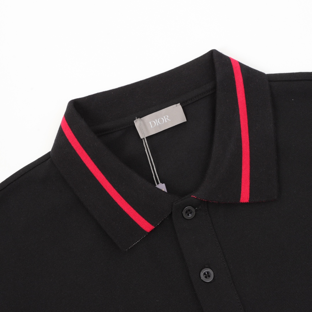 Dior 25SS Black Cotton Pique Polo Shirt with Jacquard Collar Detail