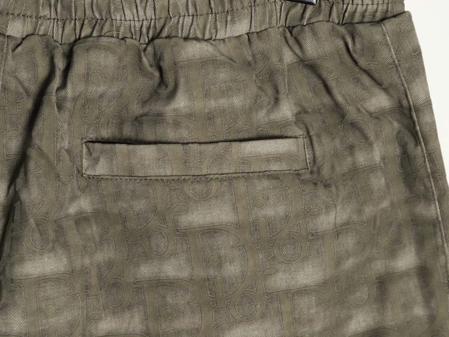 These Dior all-over print shorts are crafted from a custom-made fabric, ensuring a silky smooth and ultra-soft touch. The fabric's texture features clear and distinct thread lines, providing excellent drape and a high-quality feel. The meticulous craftsmanship meets export standards, with 4.5 stitches per centimeter and precise topstitching on every seam, creating a standard, ruler-straight appearance. The woven cotton tape is tightly knit and feels soft to the touch. The embroidery is executed using advanced embroidery machines for richer, more vibrant colors and a three-dimensional effect. The fit is flattering for both men and women, making these shorts a versatile and stylish addition to any wardrobe, on par with high-end retail quality.