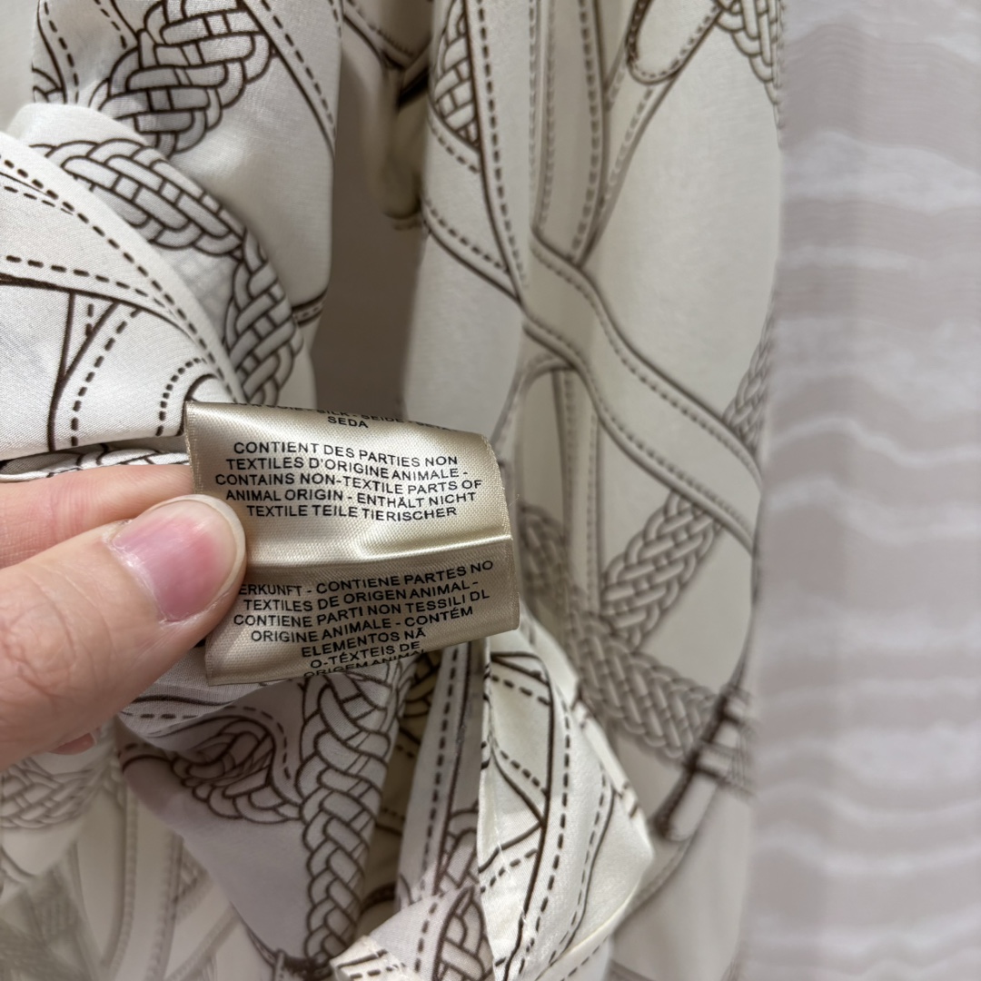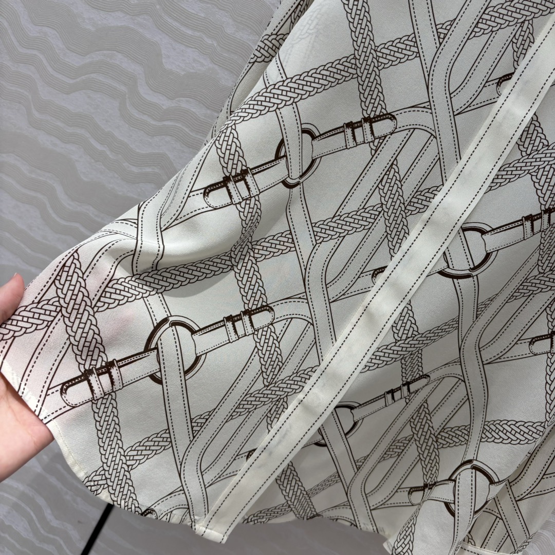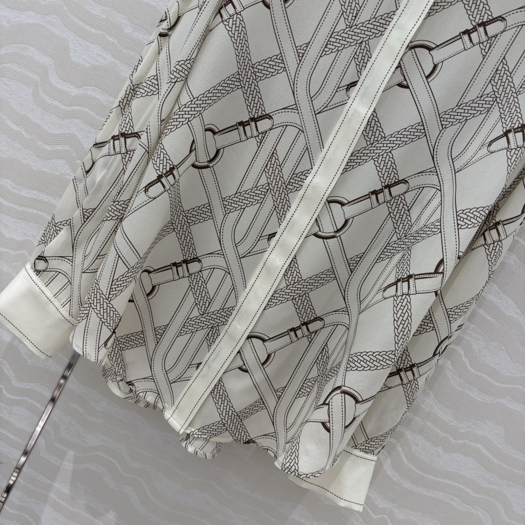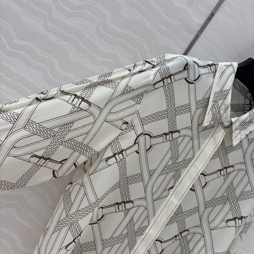 Elevate your style with this luxurious 100% silk blouse featuring a chic chain and buckle print. Perfect for a sophisticated, effortless look.