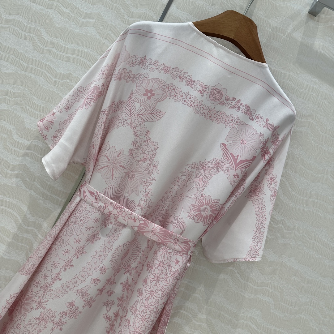 This exquisite silk kaftan dress is a must-have addition to your wardrobe. Crafted from 100% silk twill, this dress features a stunning floral print and a flattering V-neck design. The relaxed fit and included waist tie create a comfortable and elegant silhouette, perfect for any occasion.