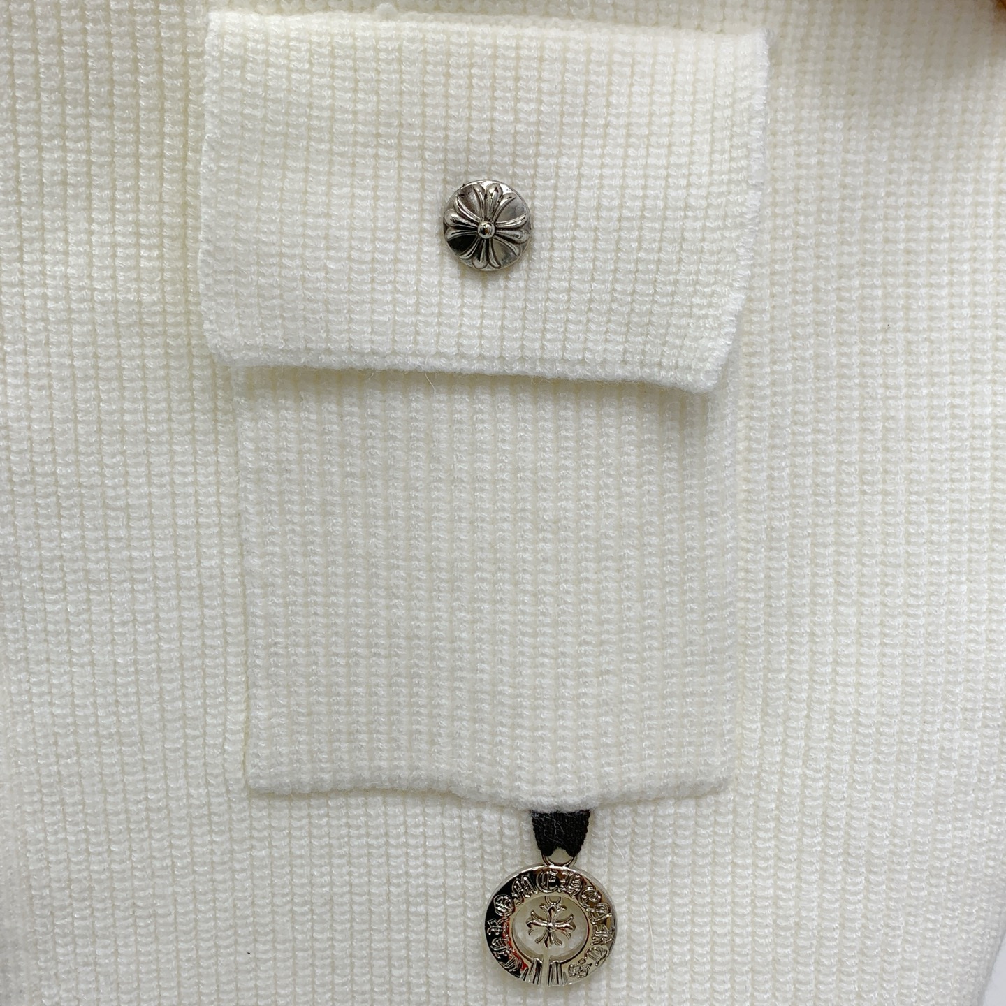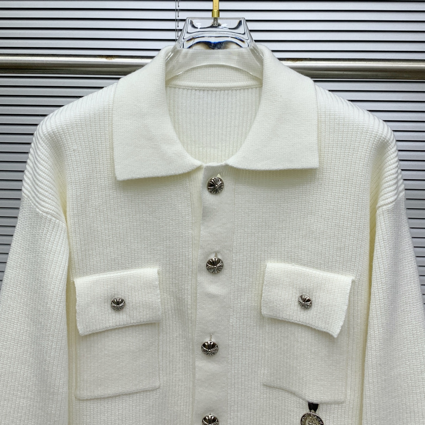 Elevate your style with this premium wool knit cardigan. Features designer buttons, patch pockets, and exquisite craftsmanship. Perfect for a chic, sophisticated look.
