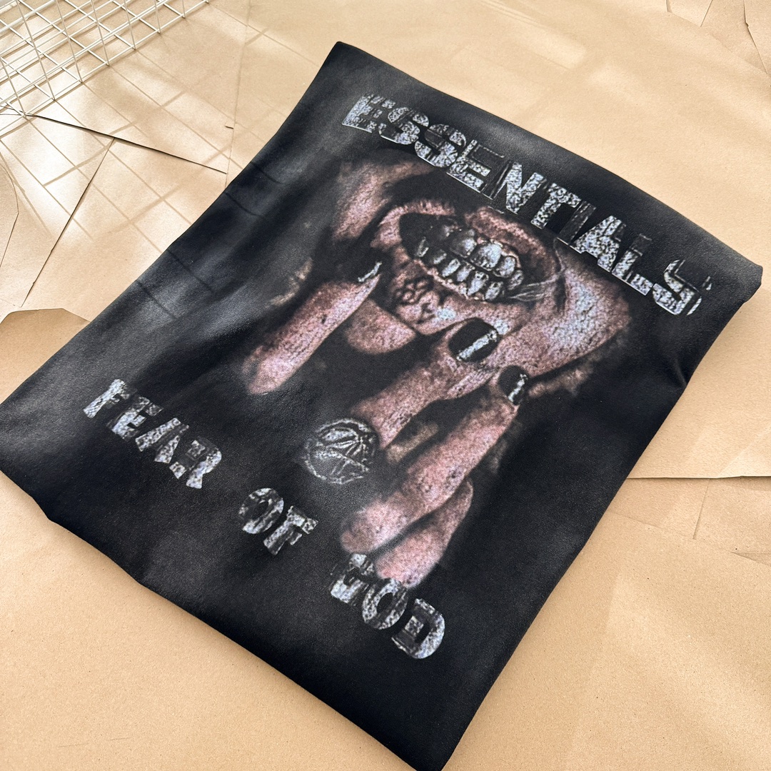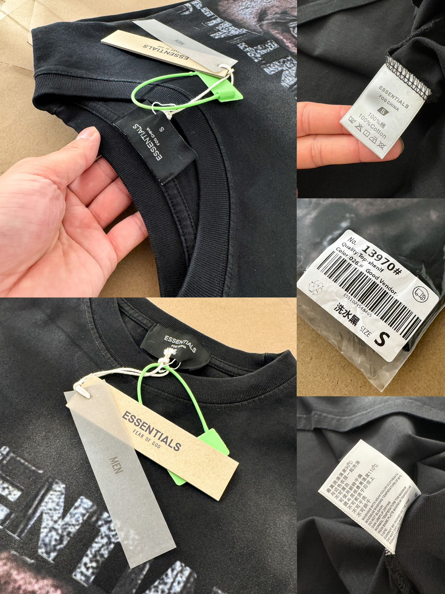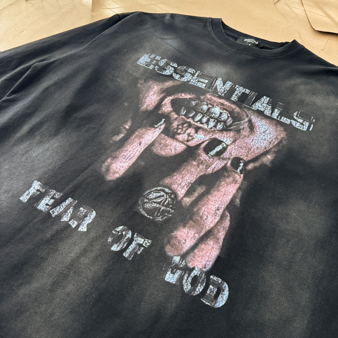 - Bold graphic print featuring 'ESSENTIALS' and 'FEAR OF GOD' branding.