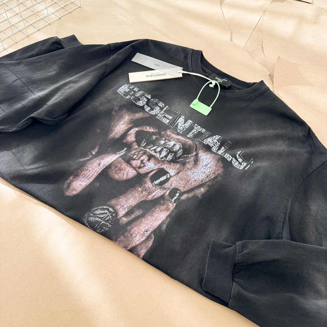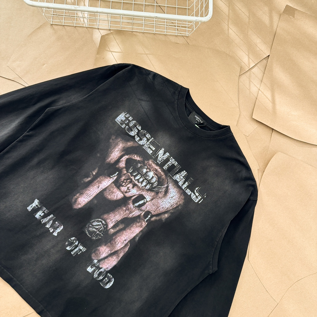 This Fear of God Essentials long sleeve t-shirt is a must-have for any streetwear enthusiast. It combines comfort, style, and a unique vintage aesthetic.