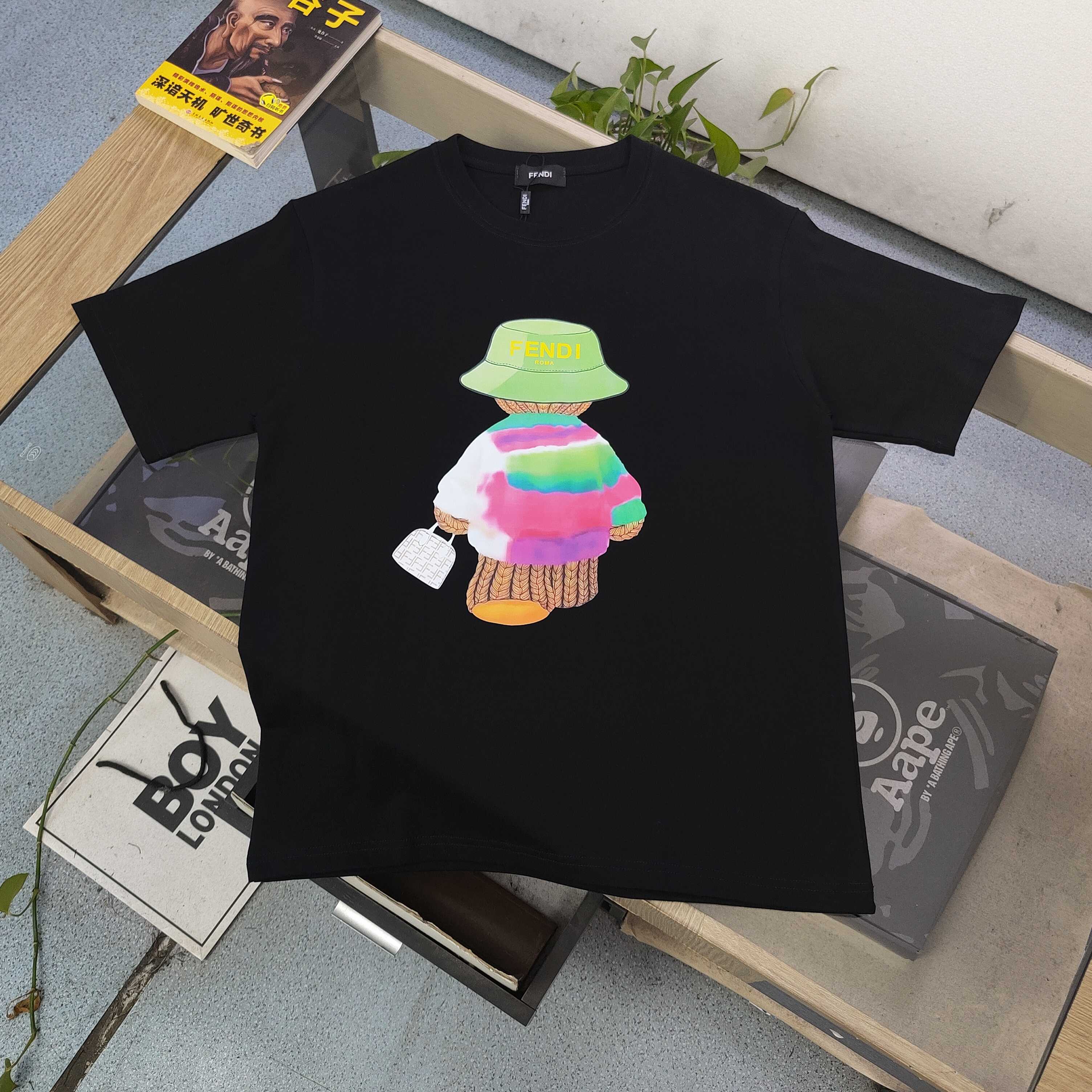Fendi 2025 New Crayon Boy Pattern Logo Print Crew Neck Short Sleeve T-Shirt