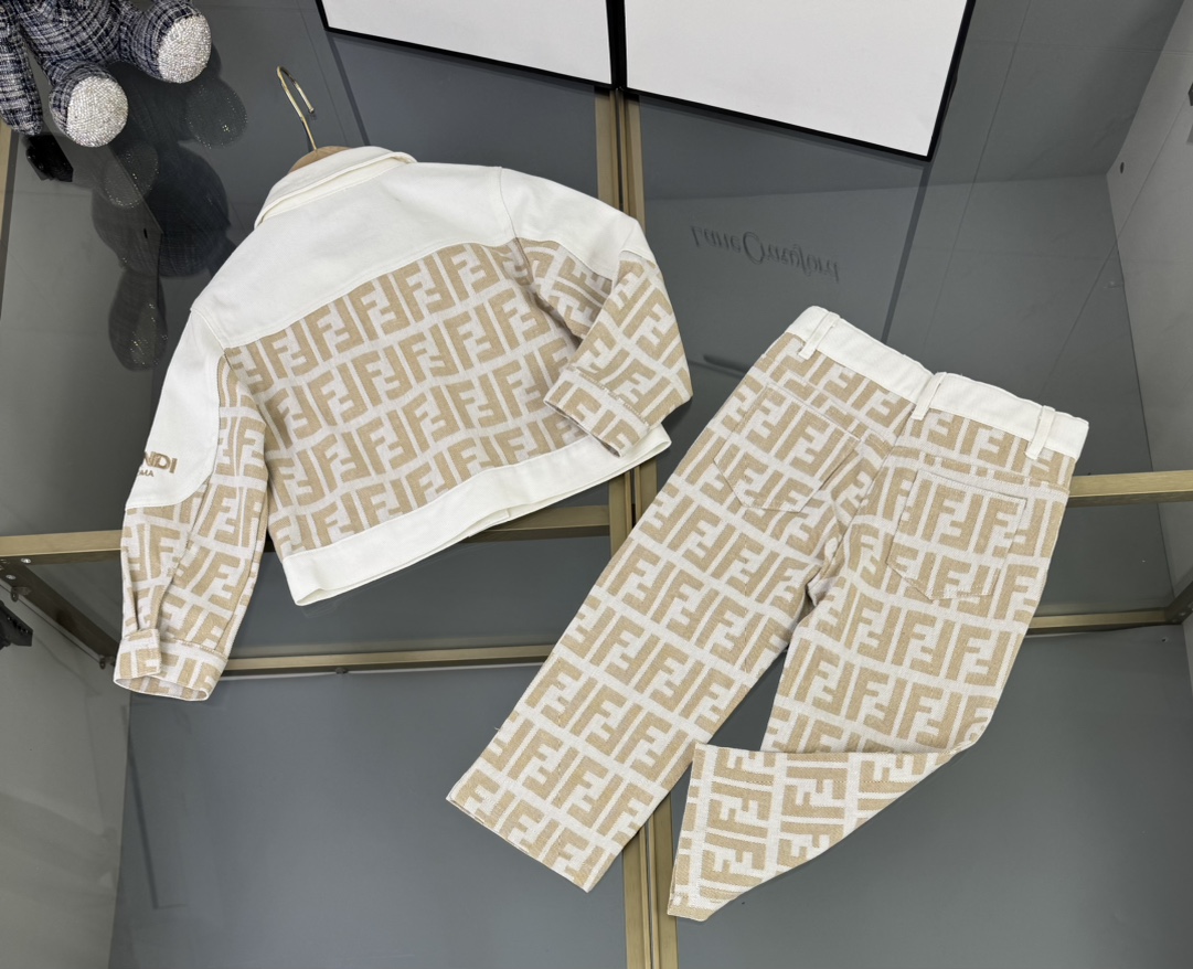 Fendi Kids' FF Jacquard Denim Jacket & Pants Set - Chic Designer Outfit
