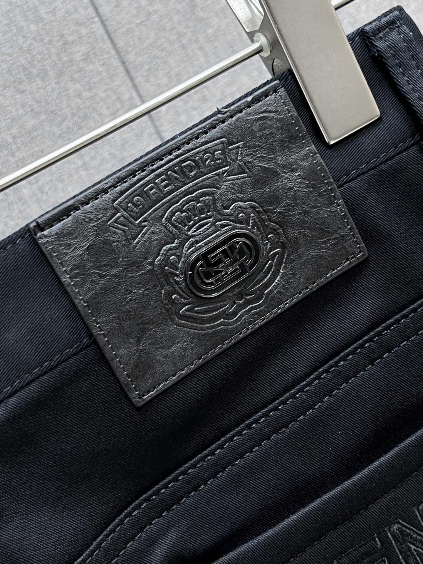 Fendi Men's Black Cotton Casual Pants with Embossed Logo - Slim Fit