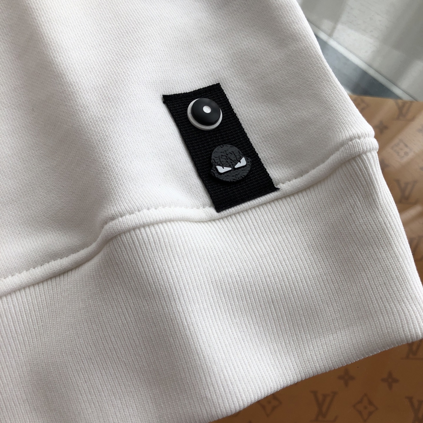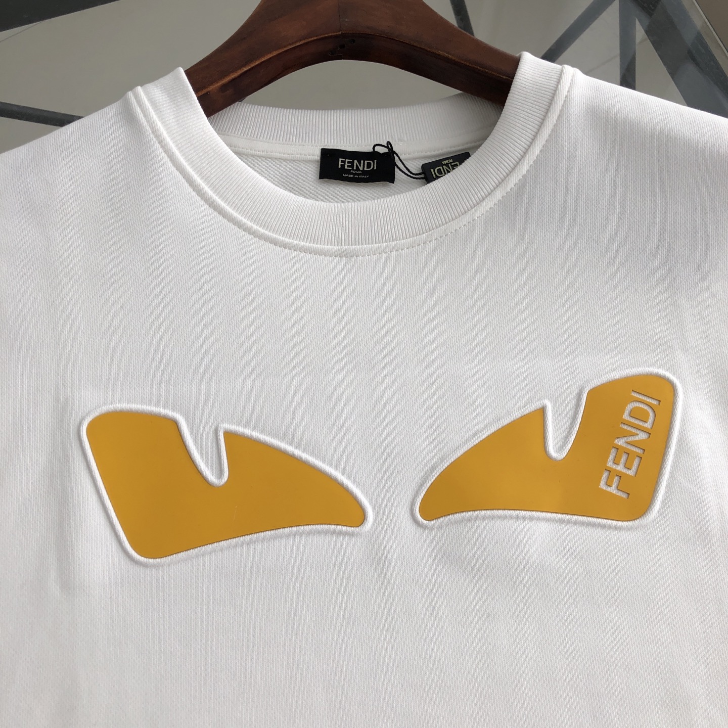 This Fendi sweatshirt is a statement piece that combines comfort with high-end fashion. Featuring the iconic Fendi monster eyes design, this sweatshirt is sure to turn heads.