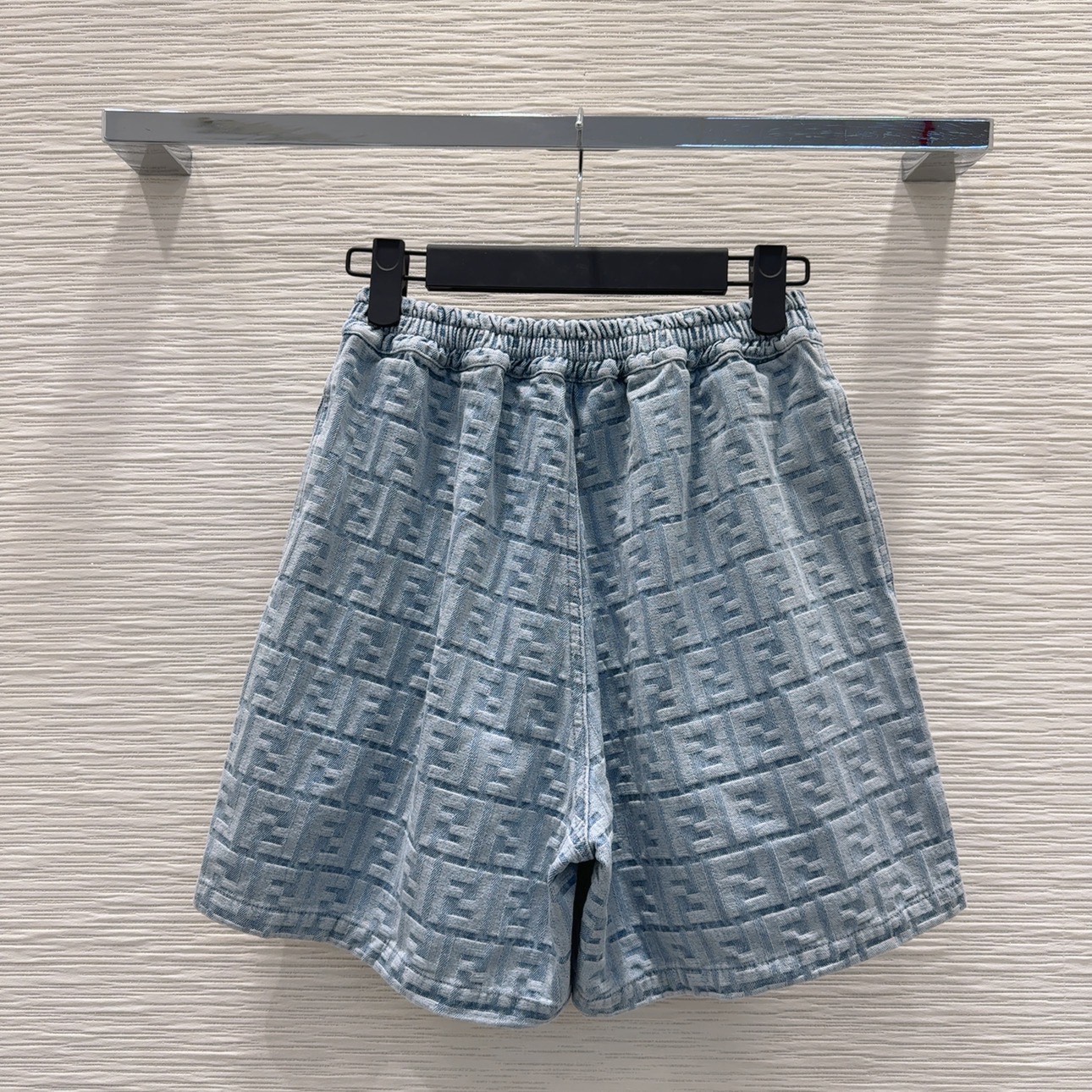 Elevate your casual style with these Fendi denim shorts. High-waisted fit, elastic waistband, and all-over FF jacquard design for a chic look.