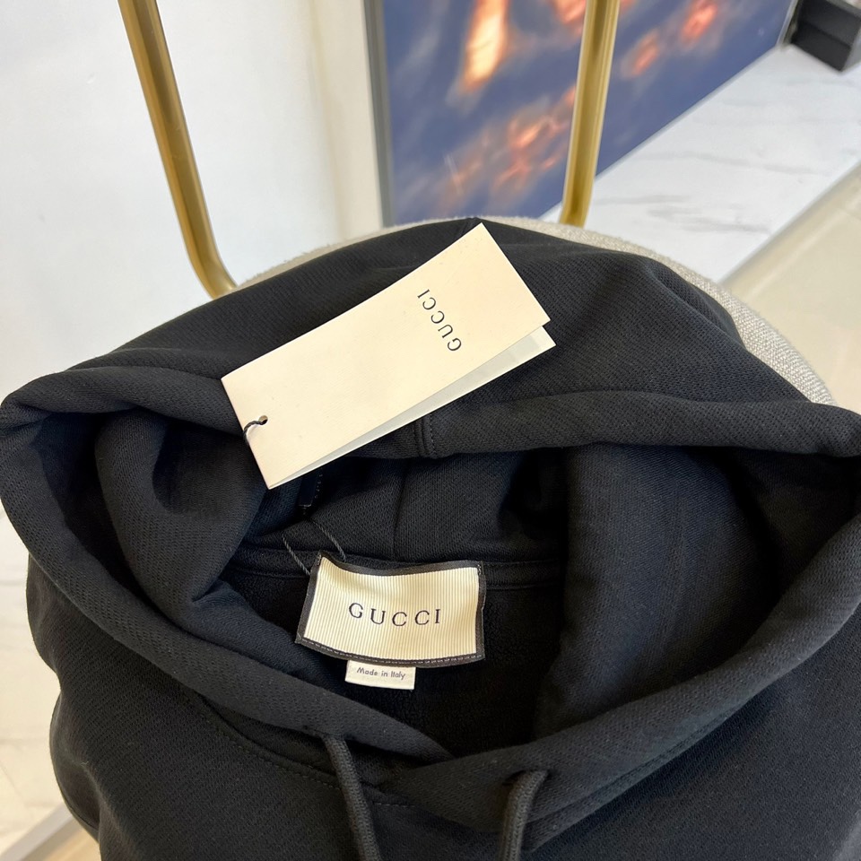 This Gucci hoodie is a versatile addition to any wardrobe, perfect for achieving a relaxed yet sophisticated look.